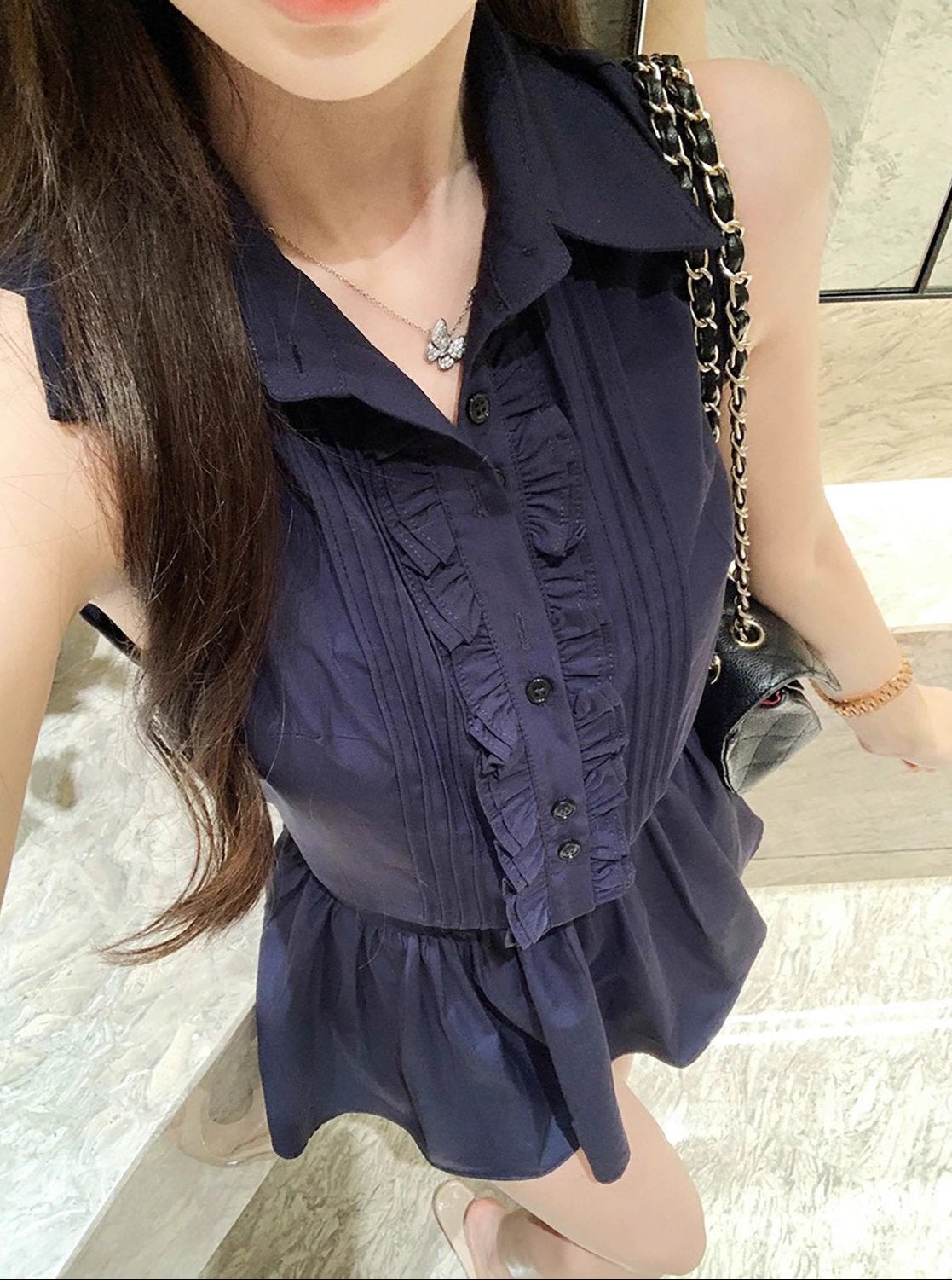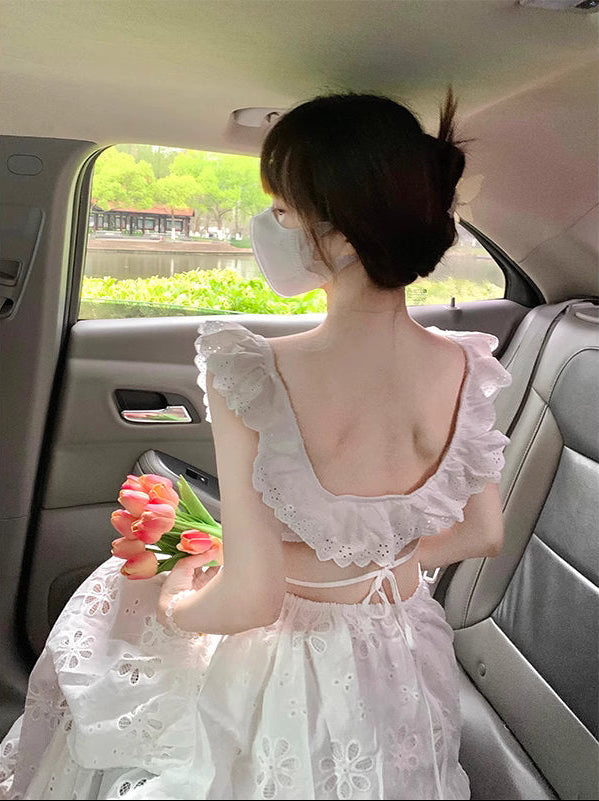 静かな約束の場所へ向かう大人のフリルワンピース_R0299