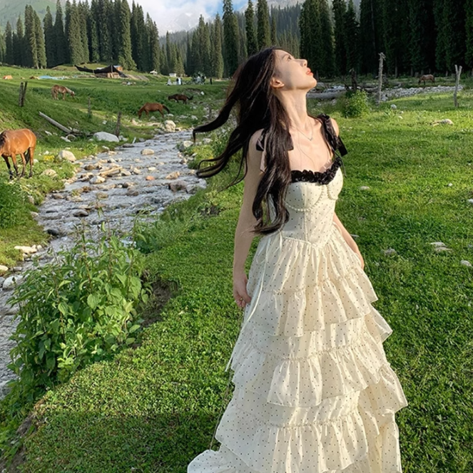 スイスの小さな村で恋をした日のティアードドットワンピース_R0207