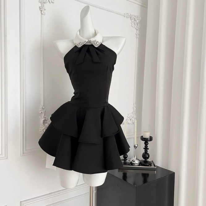 舞踏会で見つけたビジュー襟のラッフルワンピース_R0217