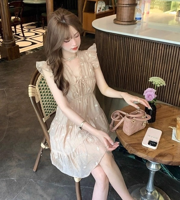 カフェで恋の予感がしたレースシアーワンピース_R0215