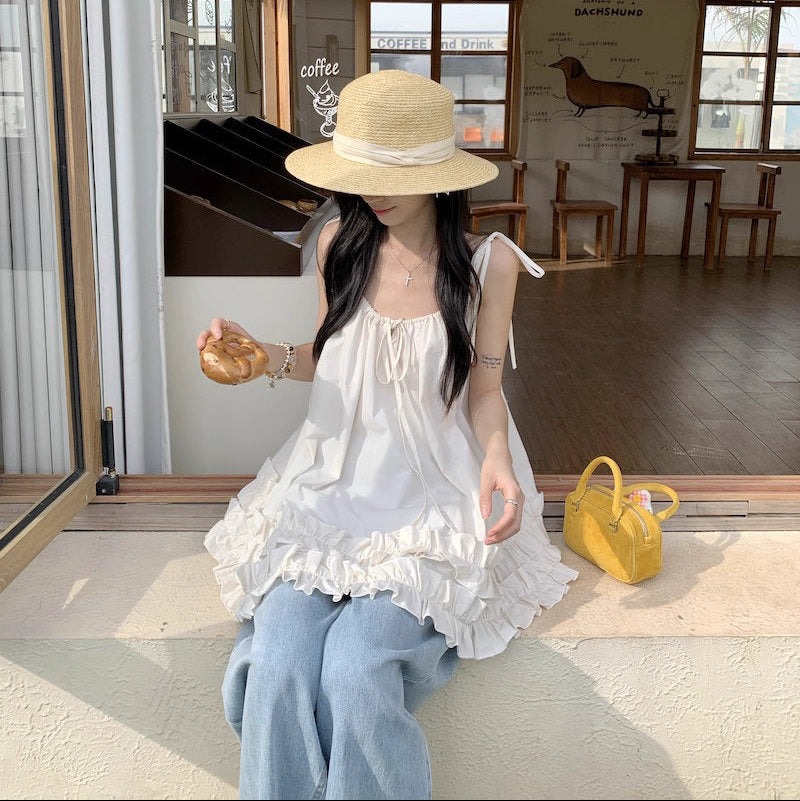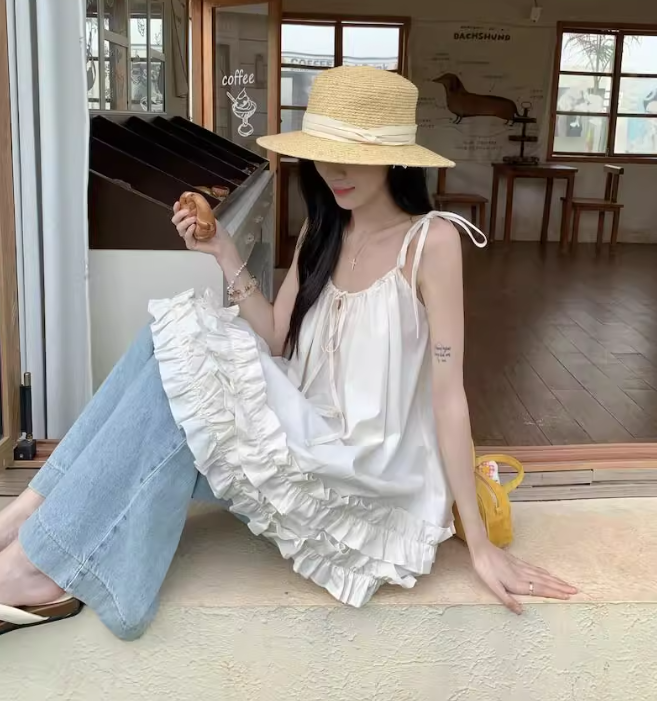 花びらフリルの風にそよぐベビードールキャミトップス_R0255