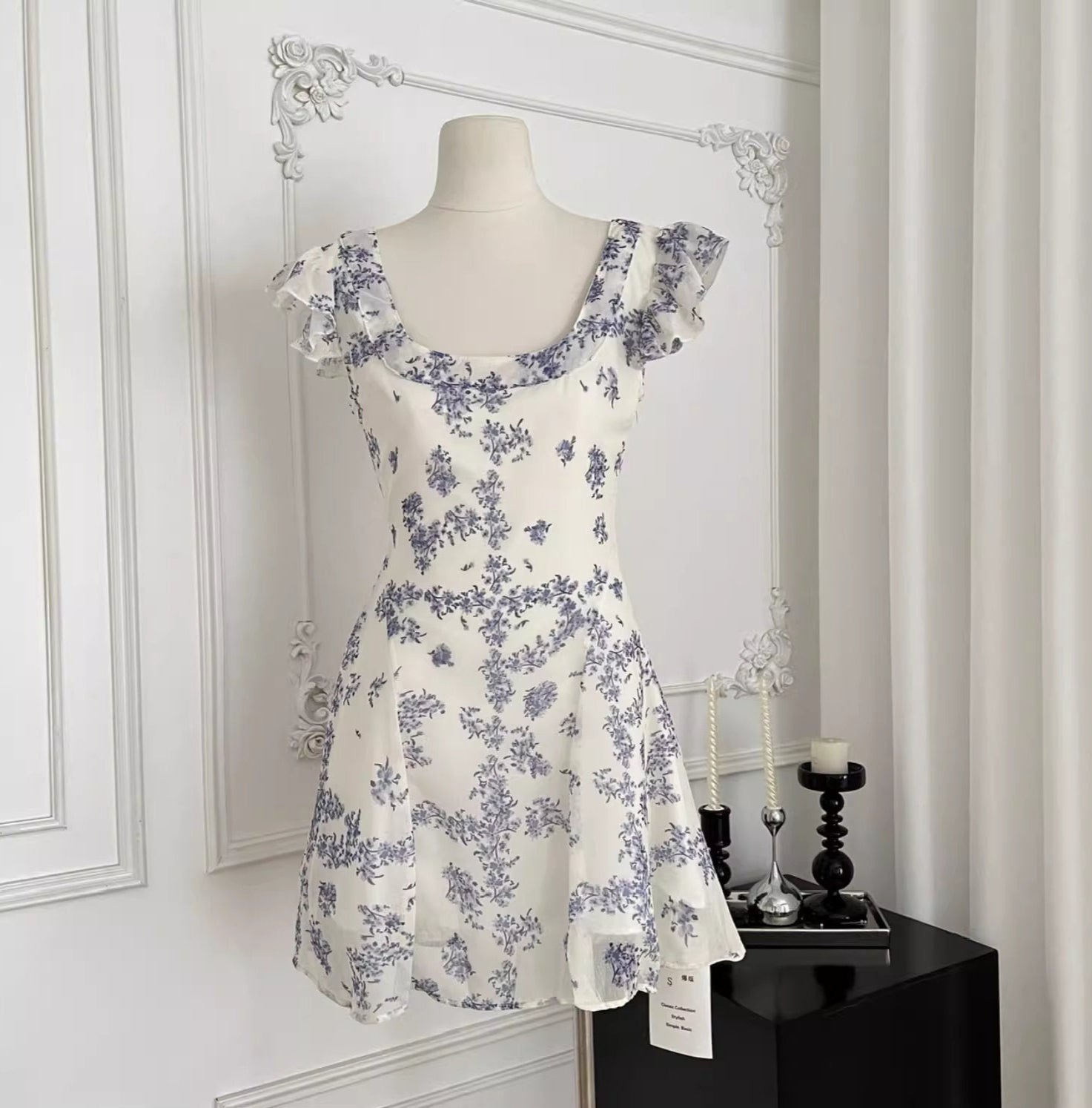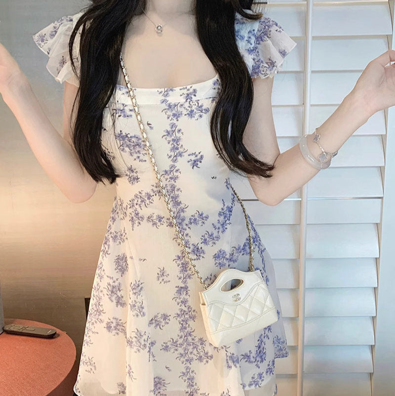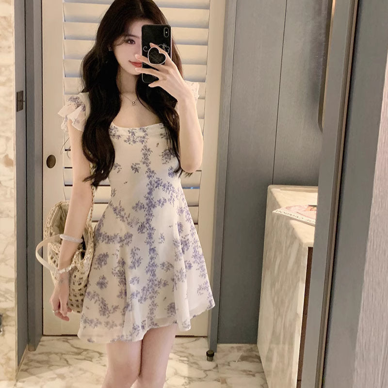 真夏の図書館で彼を待つ、小花柄ミニワンピース_R0205