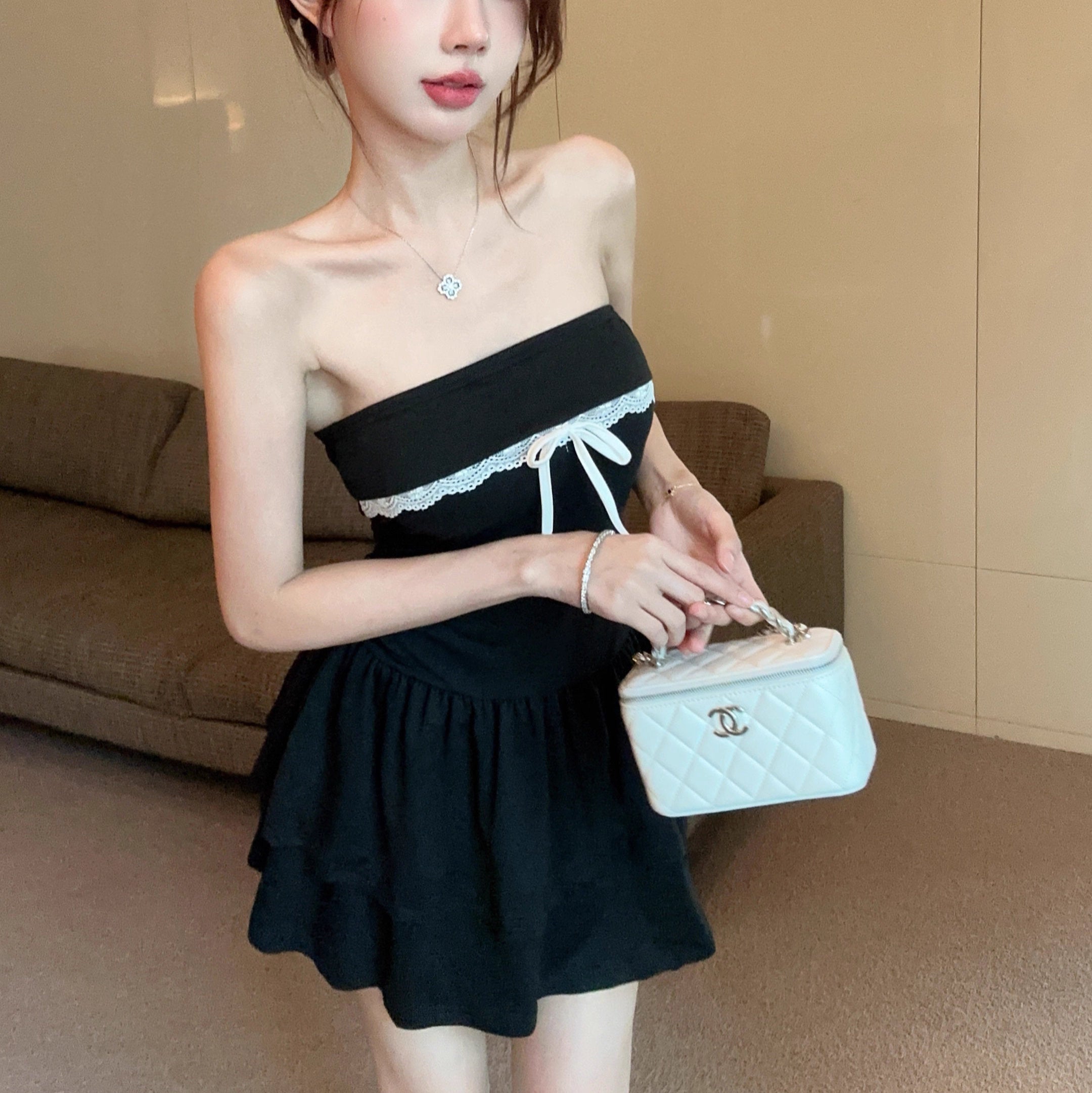 彼に見惚れられたパールショルダーリボンワンピース_R0229
