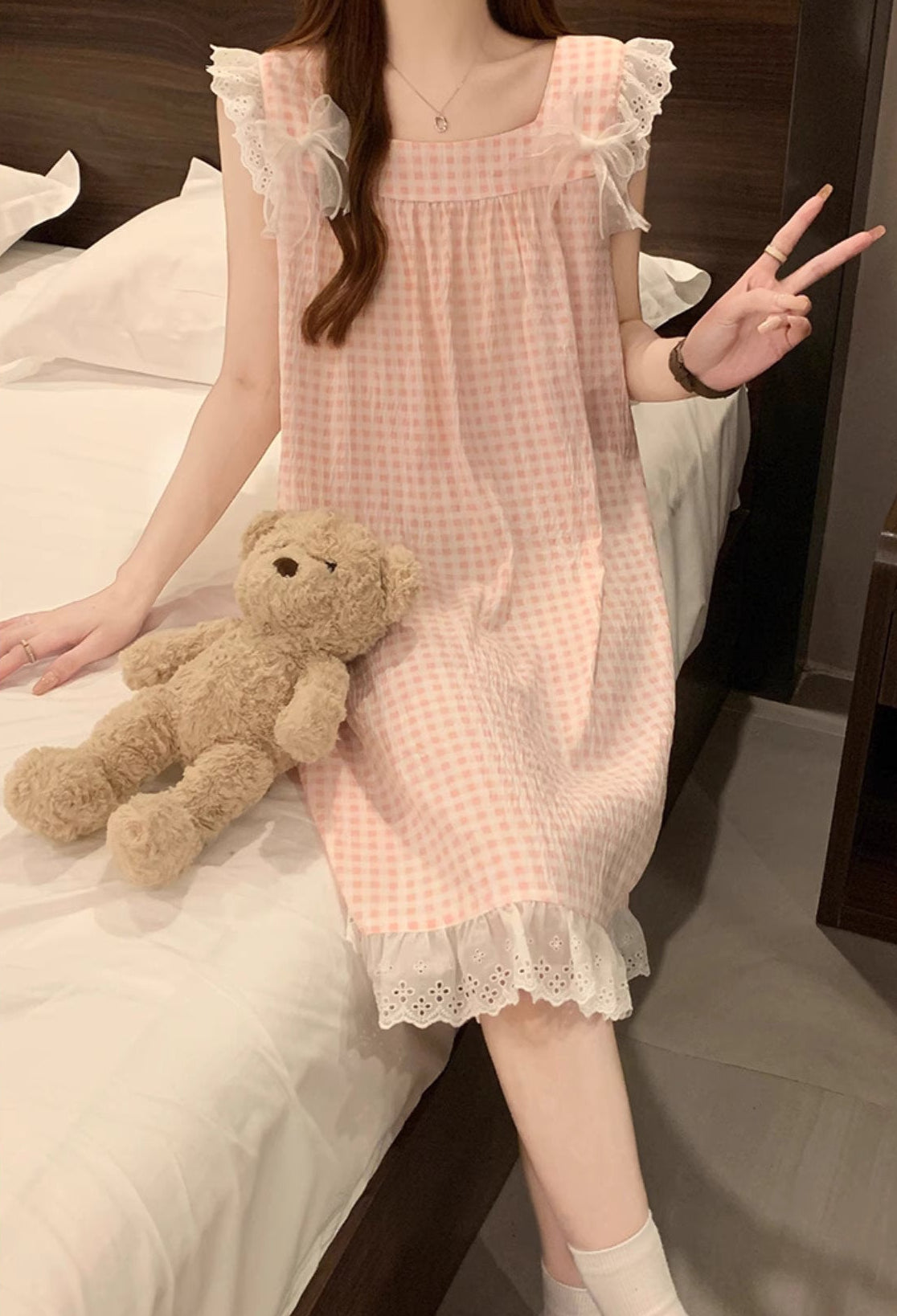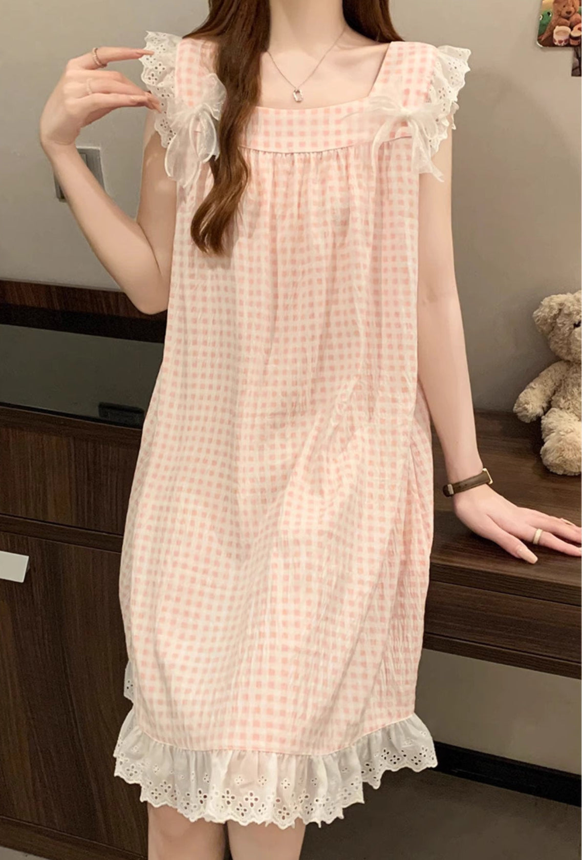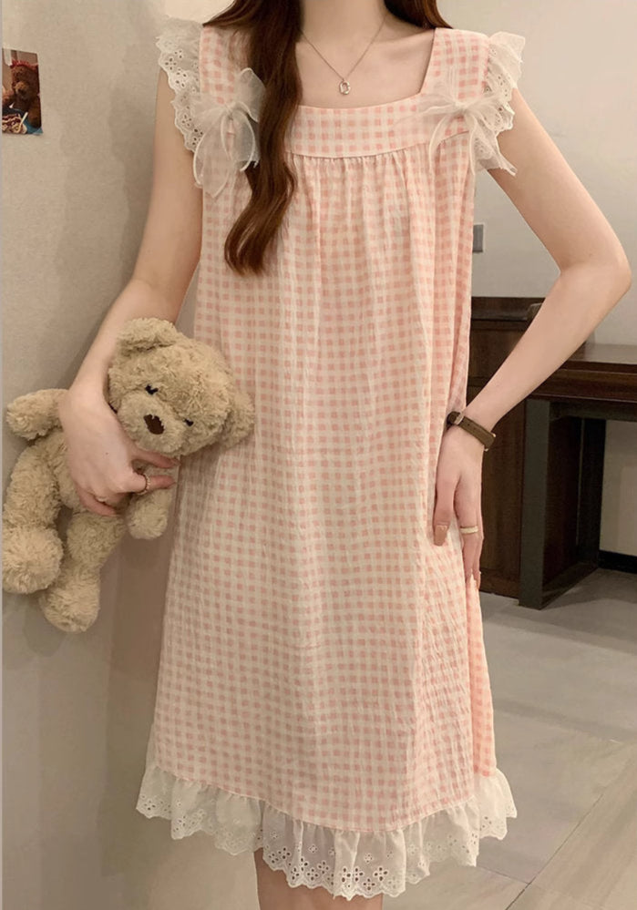 眠れない日のレースフリルギンガムルームウェア_R0094