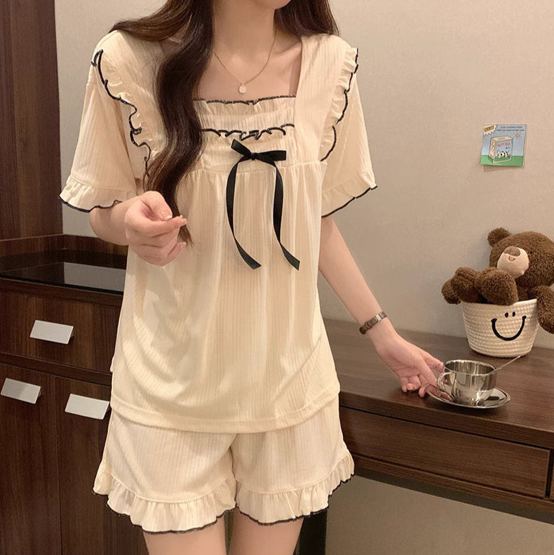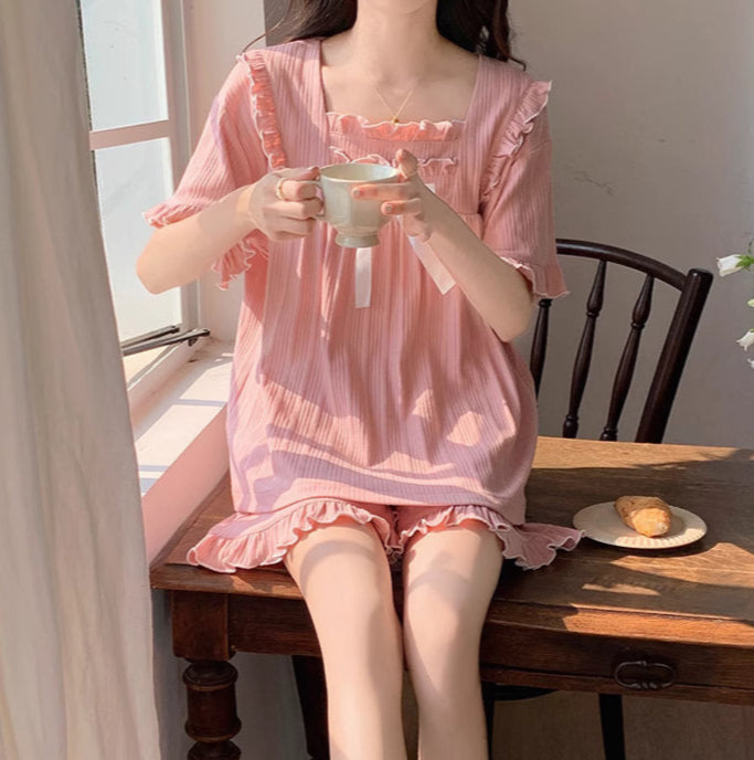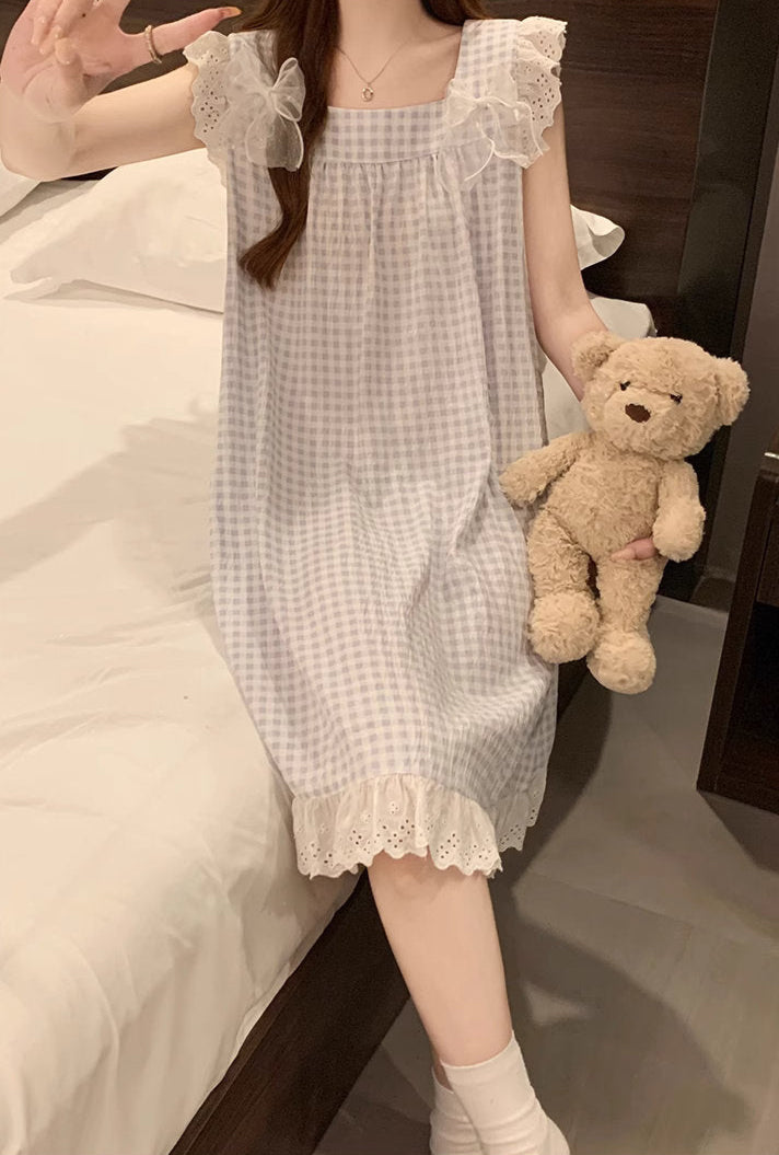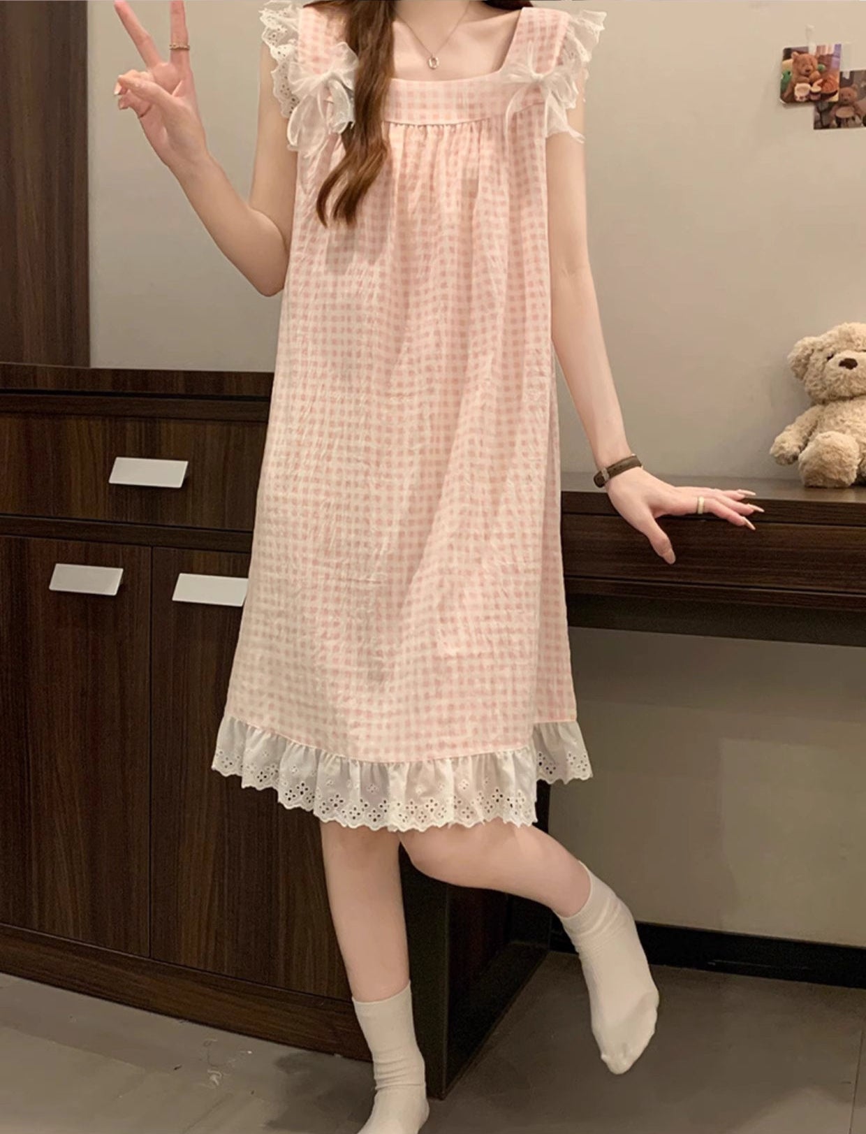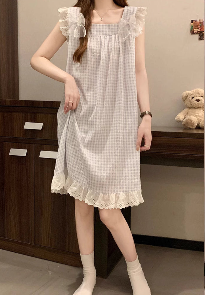 眠れない日のレースフリルギンガムルームウェア_R0094