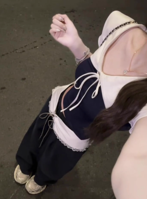 マカオの夜をふたりで歩くレースアップセットアップ_R0272