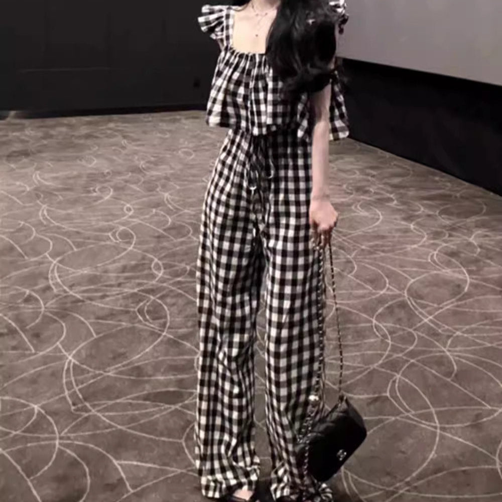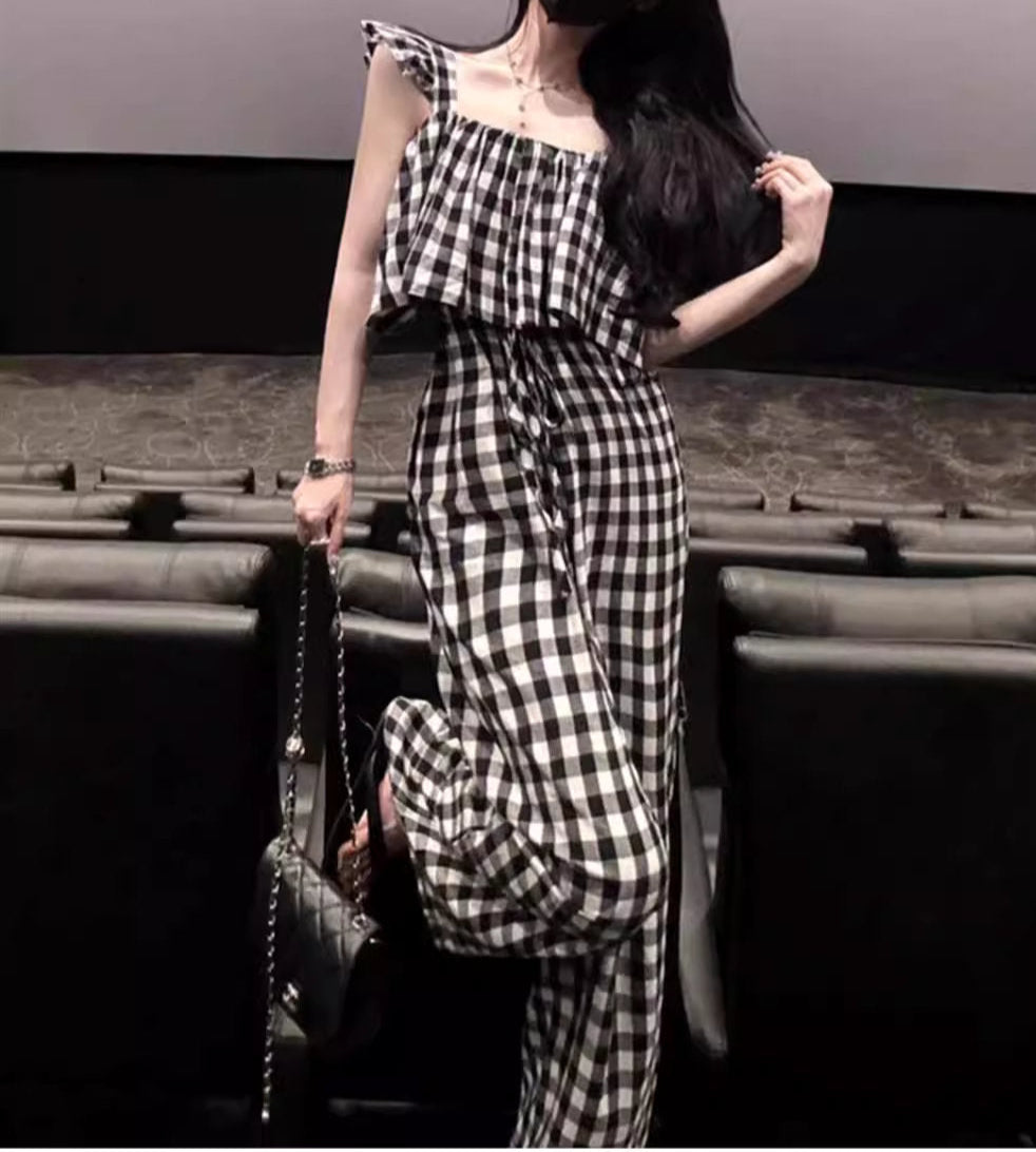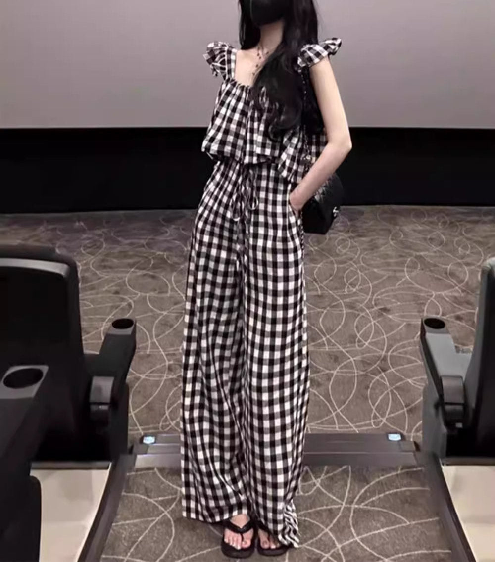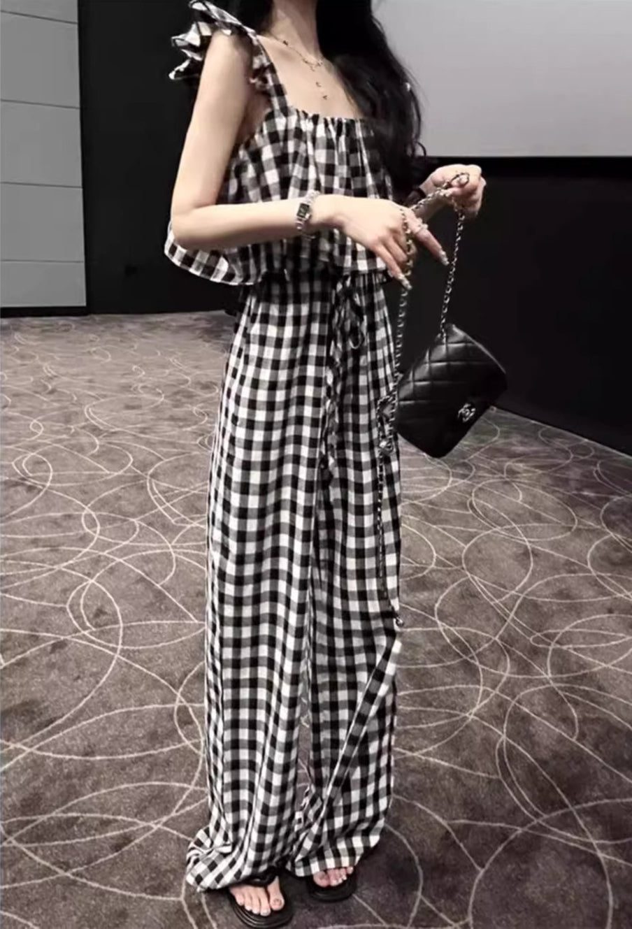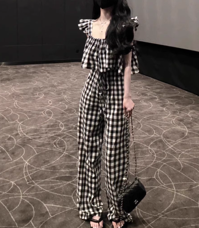 都会の夜に浮かぶギンガムチェックセットアップ_R0285