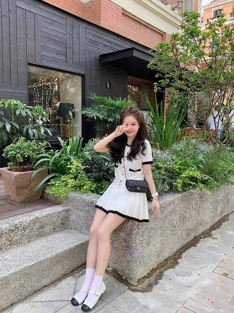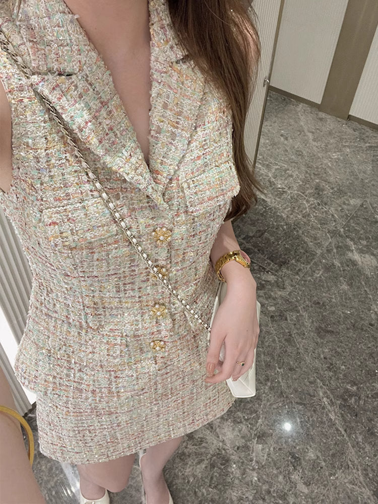 アイシングケーキとおそろいの色で着こなすツイードセットアップ_R0283