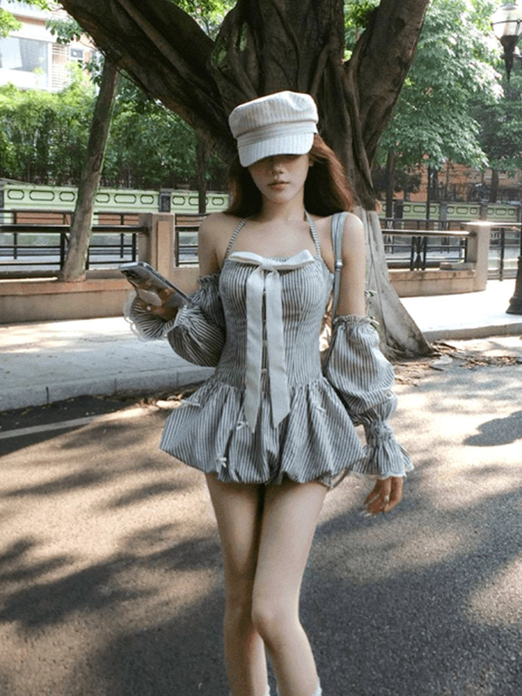 サテンの光に包まれて踊る夏のリボンフリルセットアップ_R0173
