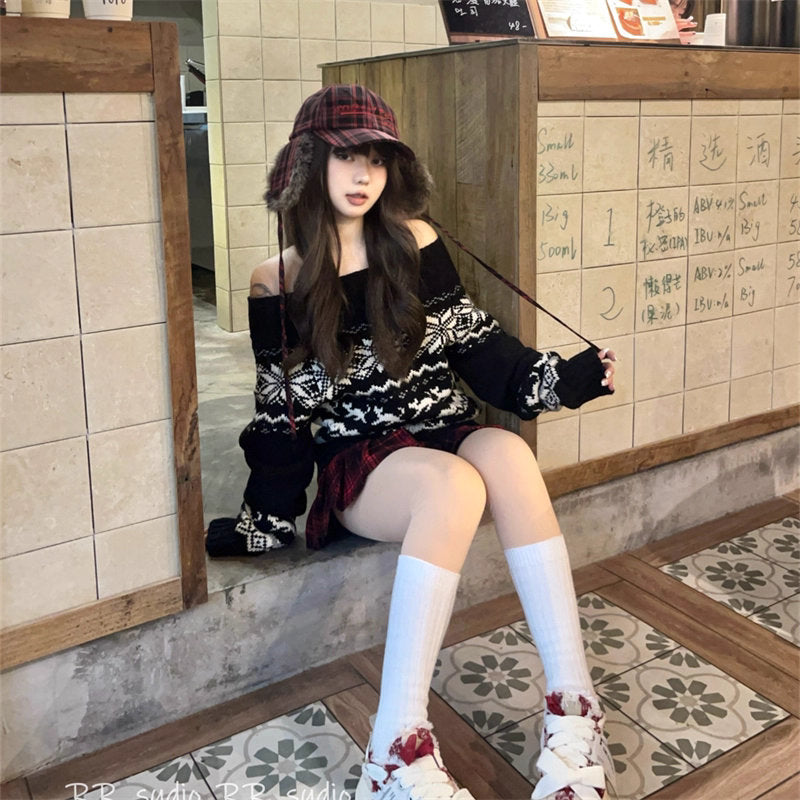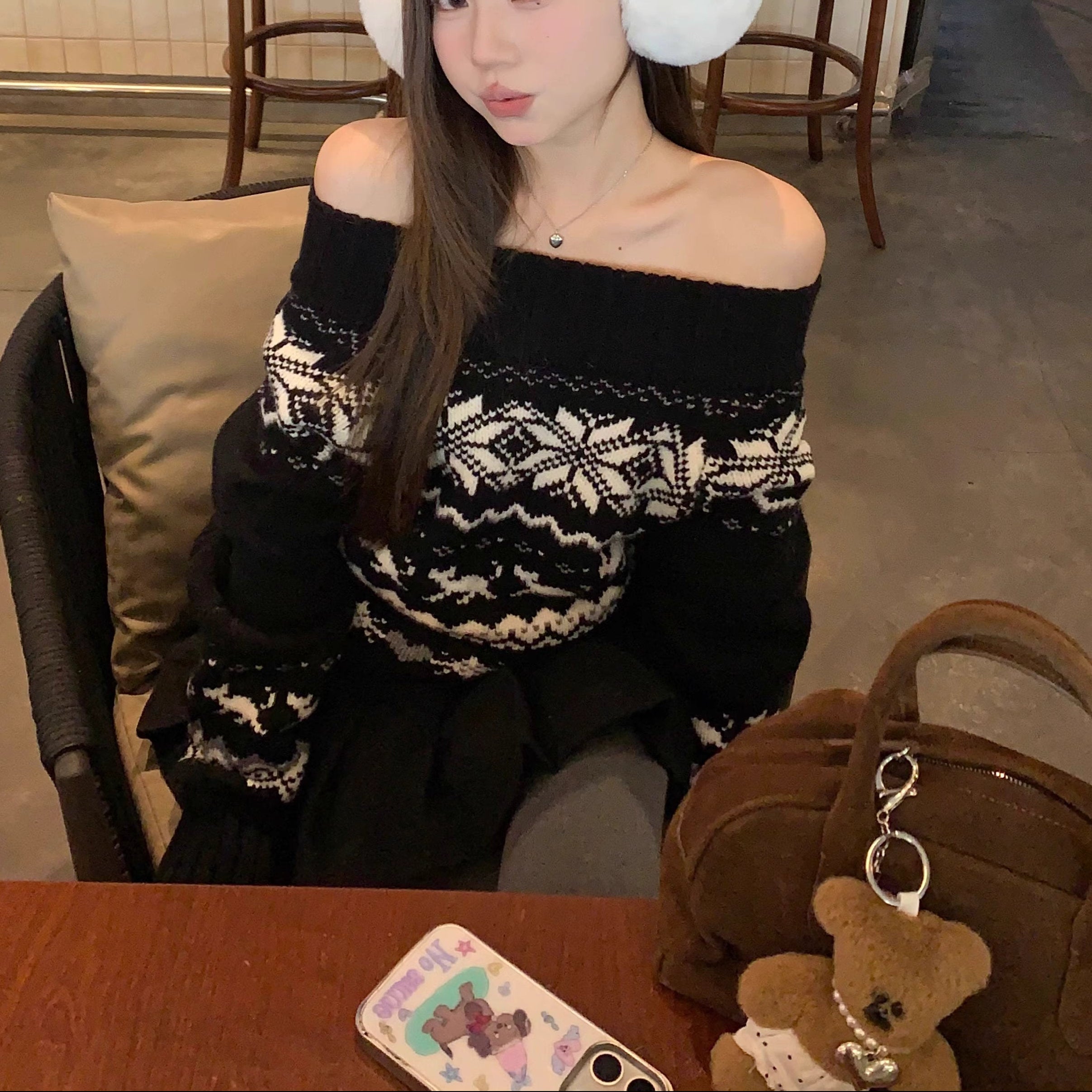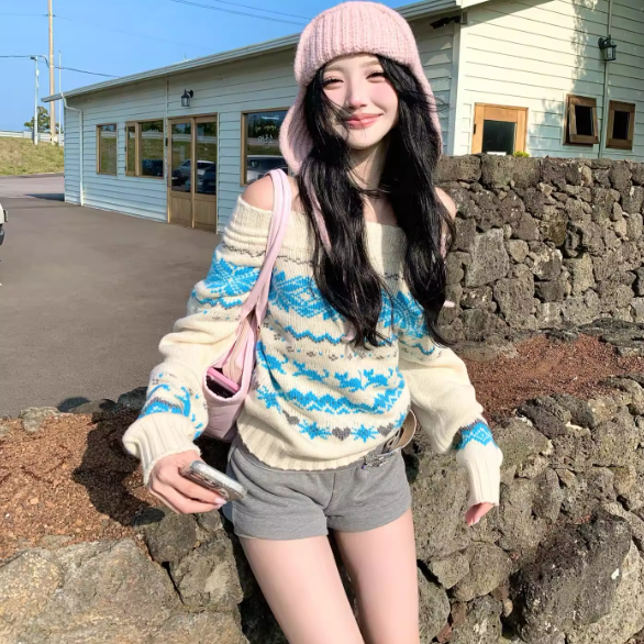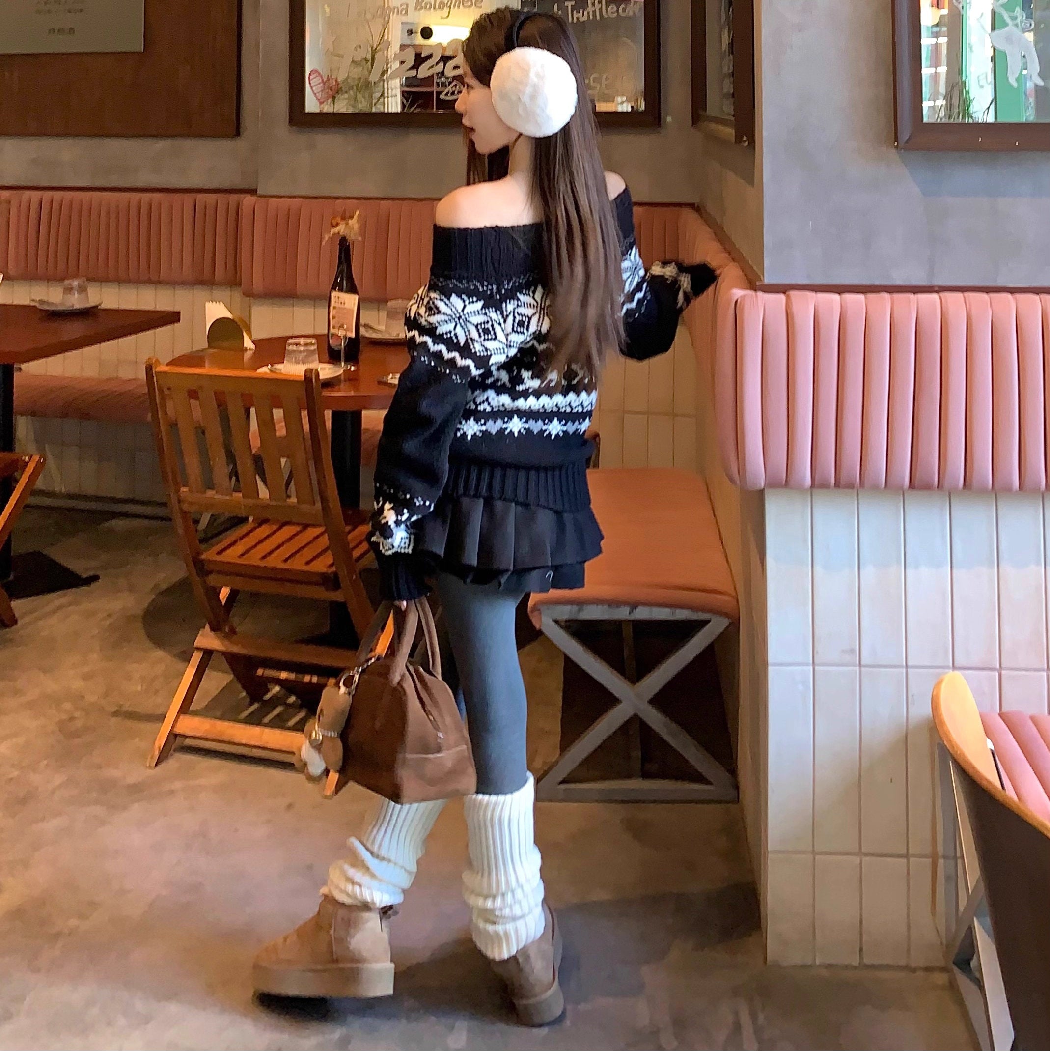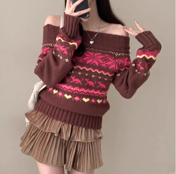 彼のマフラーを借りた夜のノルディックオフショルニット_R0426