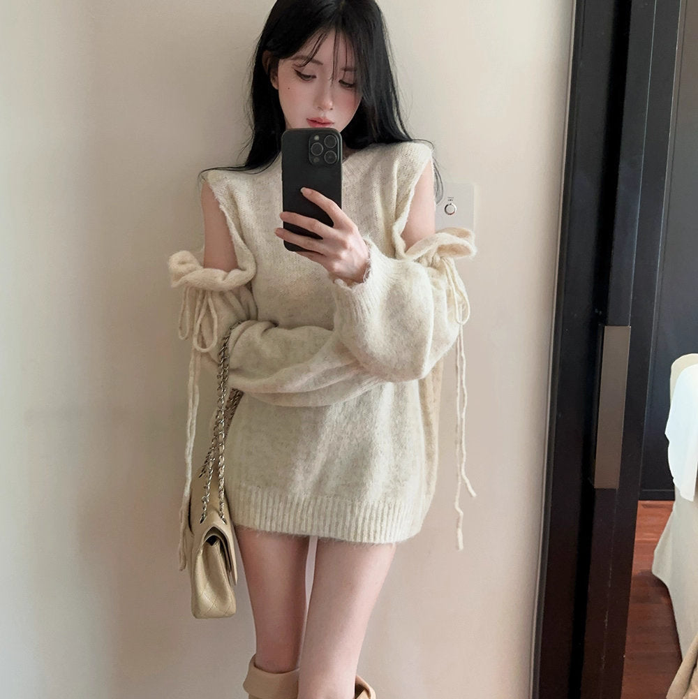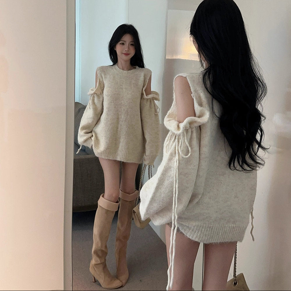甘い秘密を胸にしまう真夜中のリボンニットコーデ_R0437