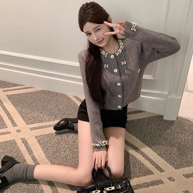 星空をまとった夜のバルコニーで恋を語るビジューニットカーディガン_R0392