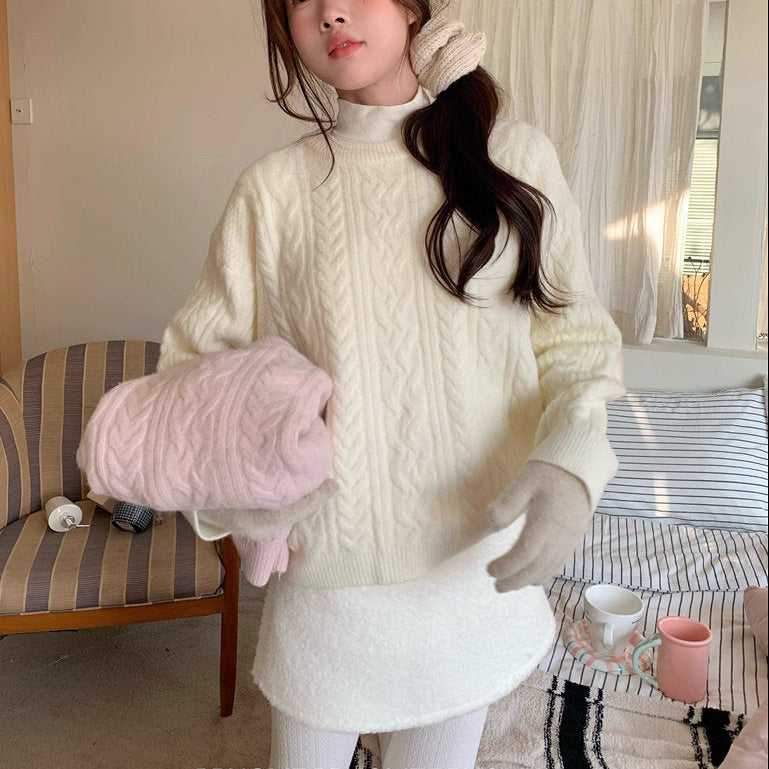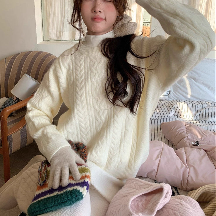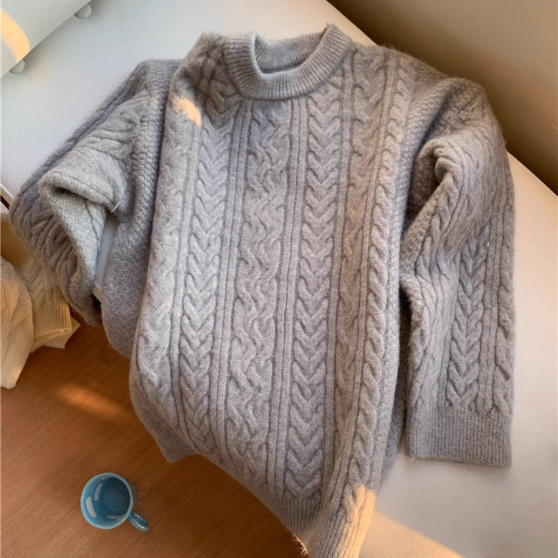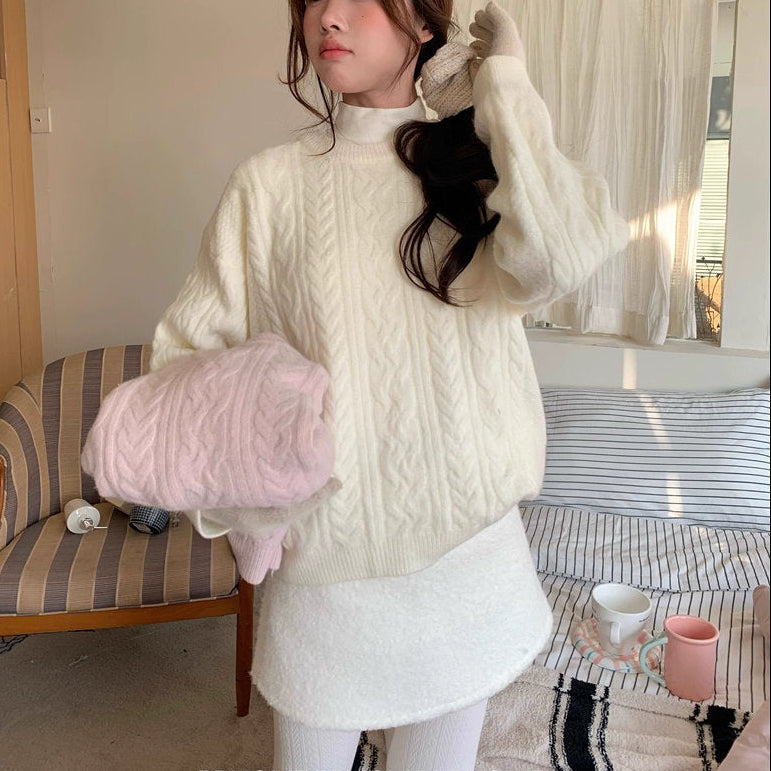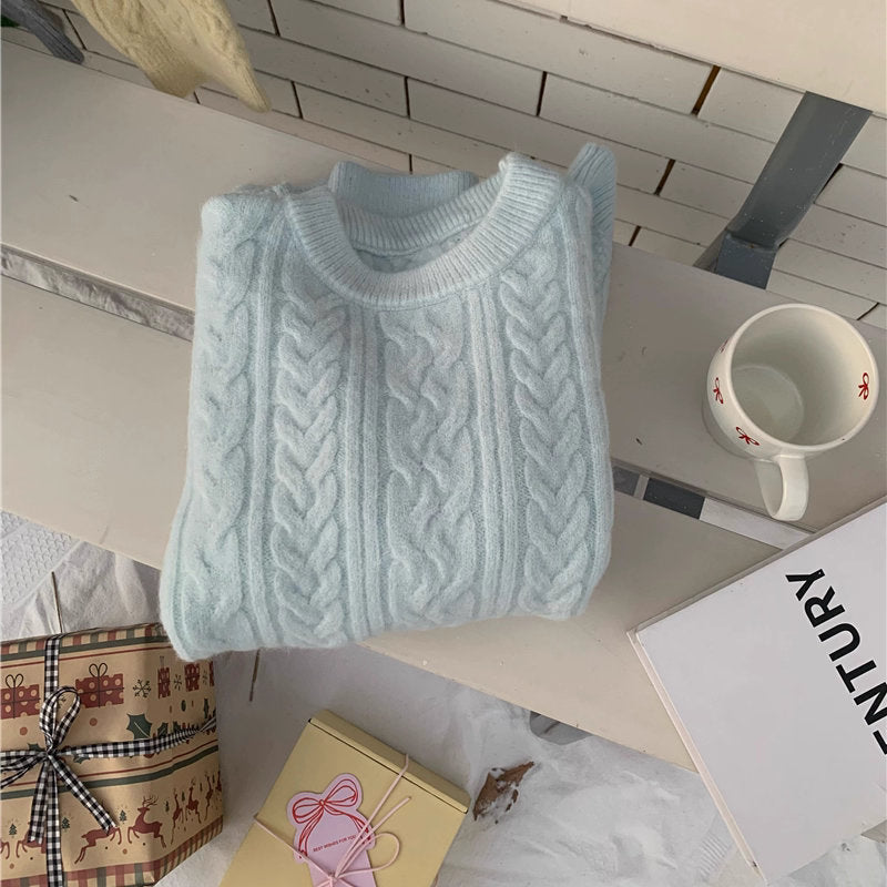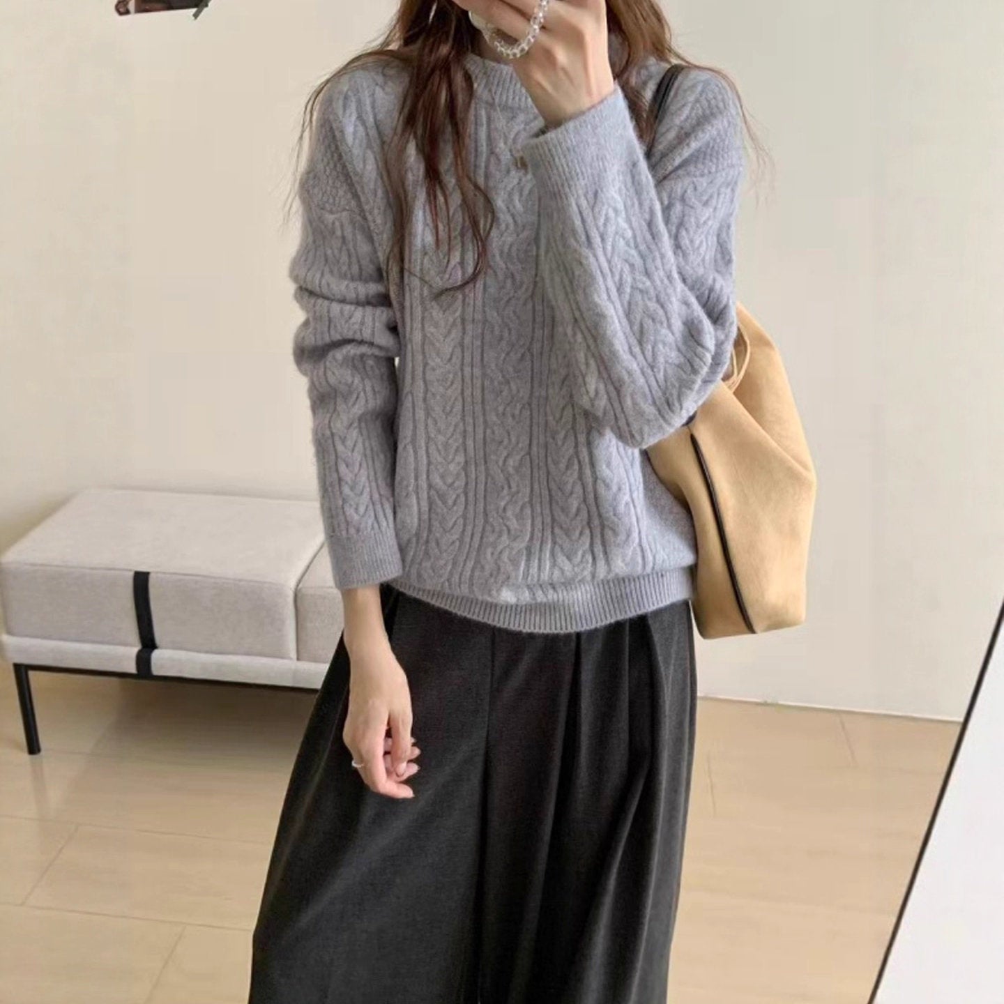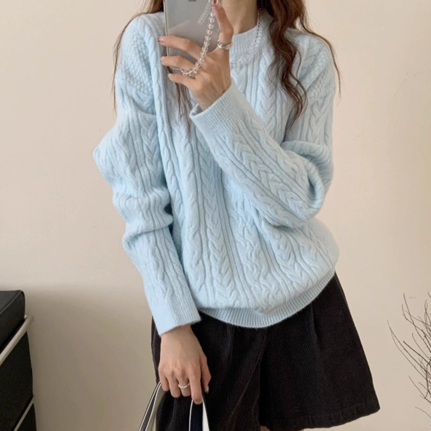 ホットチョコレートの甘さに似合う冬のオフショルダーケーブルニット_R0367