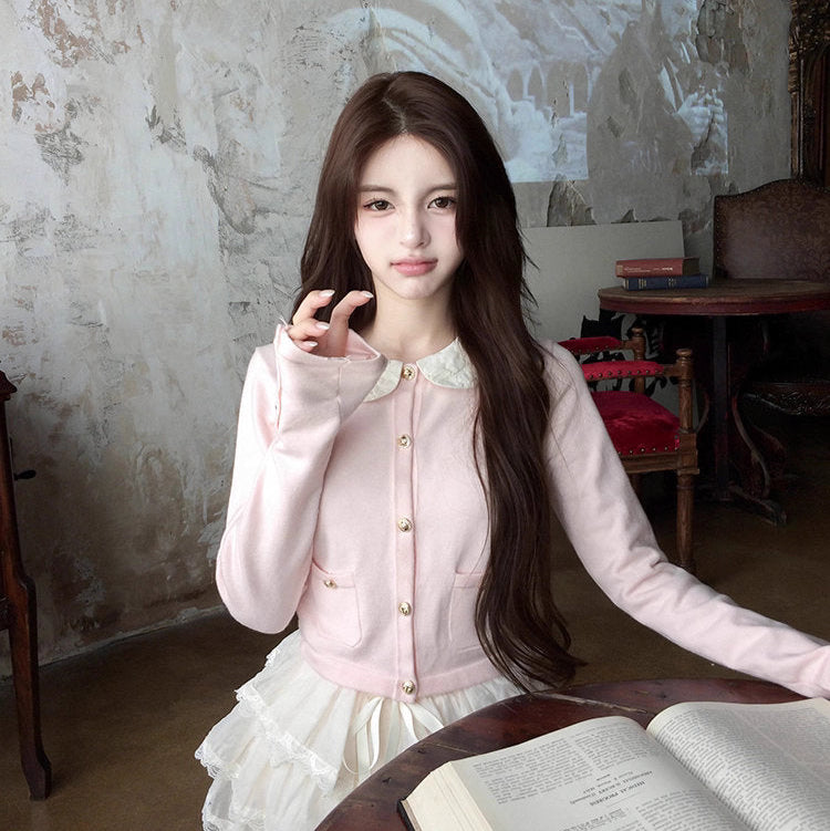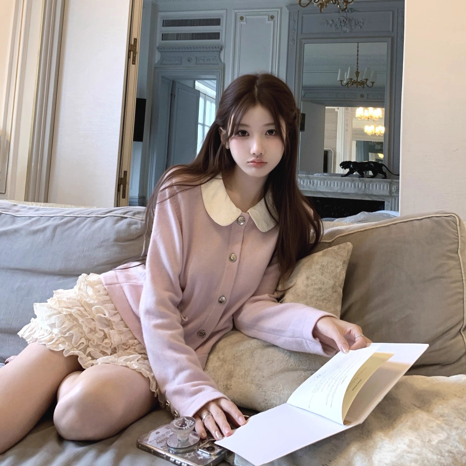 静かな午後に寄り添うフリル襟カーディガン_R0434