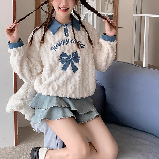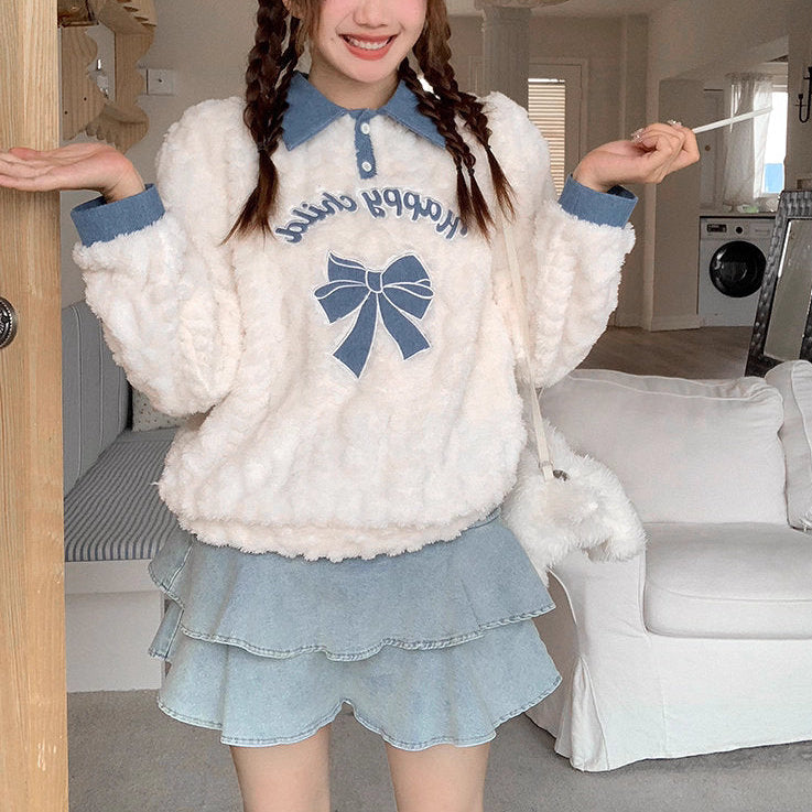 ブルーリボンに恋をした日のふわもこガーリーボアトップス_R0431
