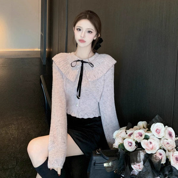 ふわ恋セーラーのリボンニットカーディガン_R0449