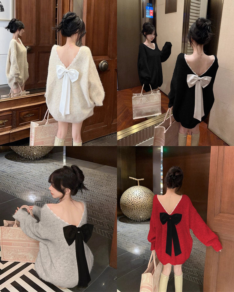 振り返った瞬間に恋が始まる、バックリボンふわもこニット_R0378