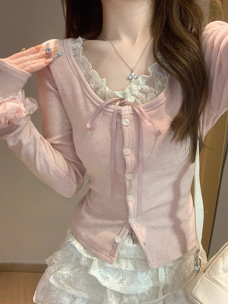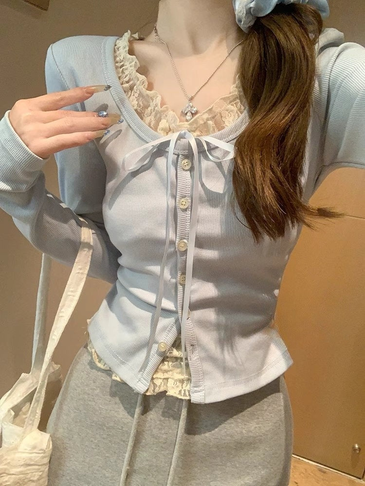 放課後のカフェできるガーリーリボンカーディガン_R0337