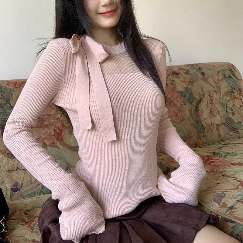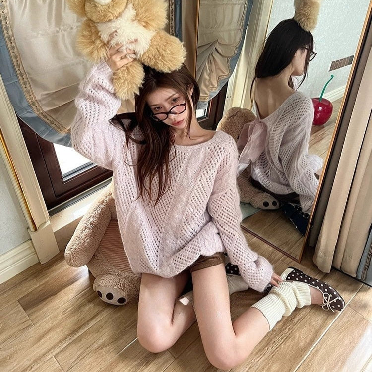 背中に結ぶ甘い約束のバックリボンニット_R0342