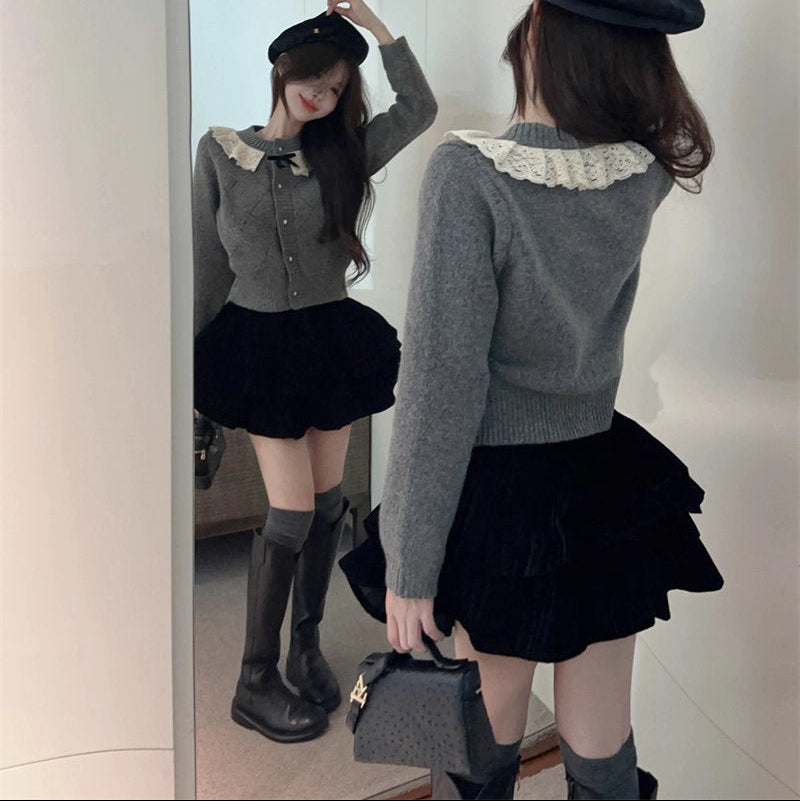 小さな映画館で待ち合わせした日のレースカラーカーディガン_R0346