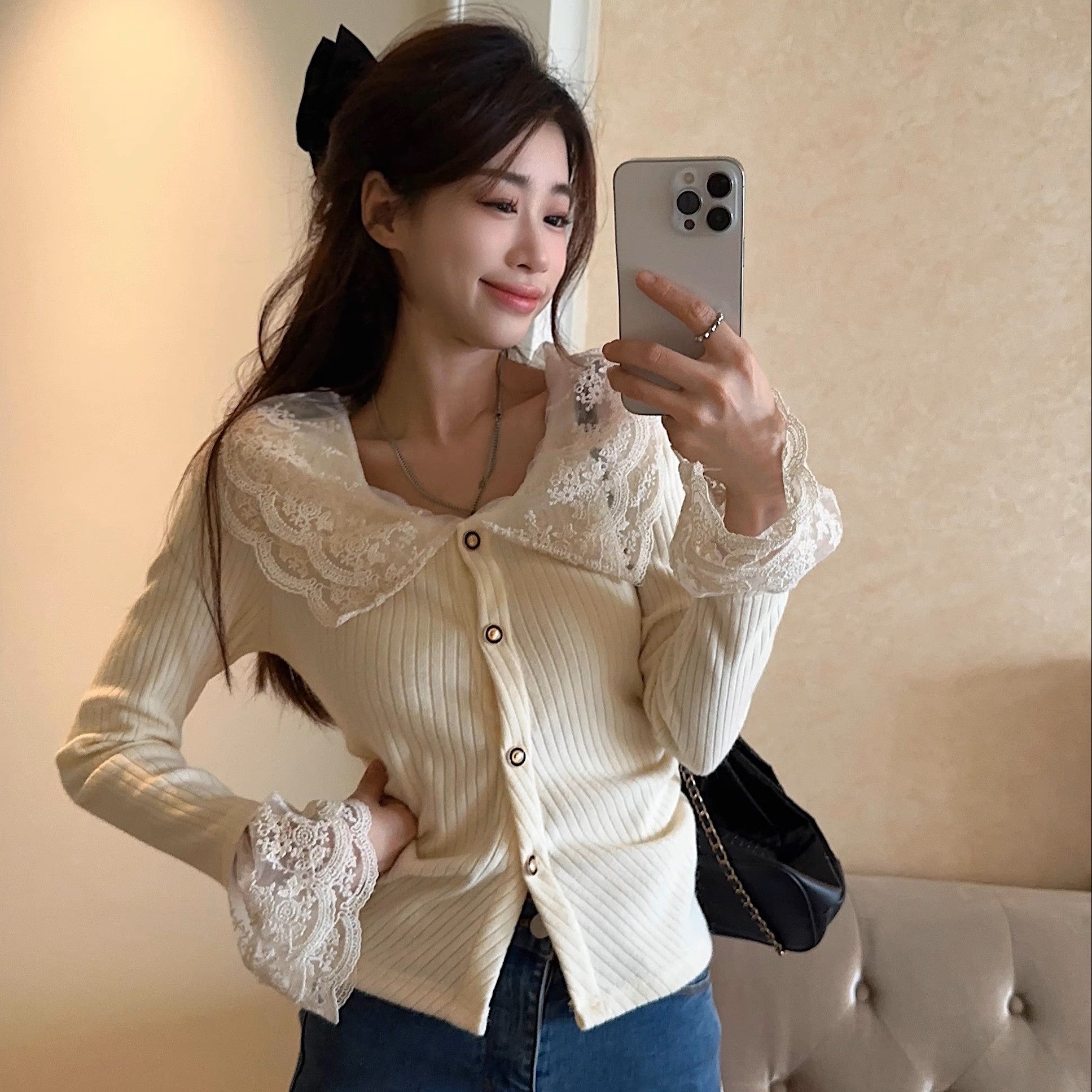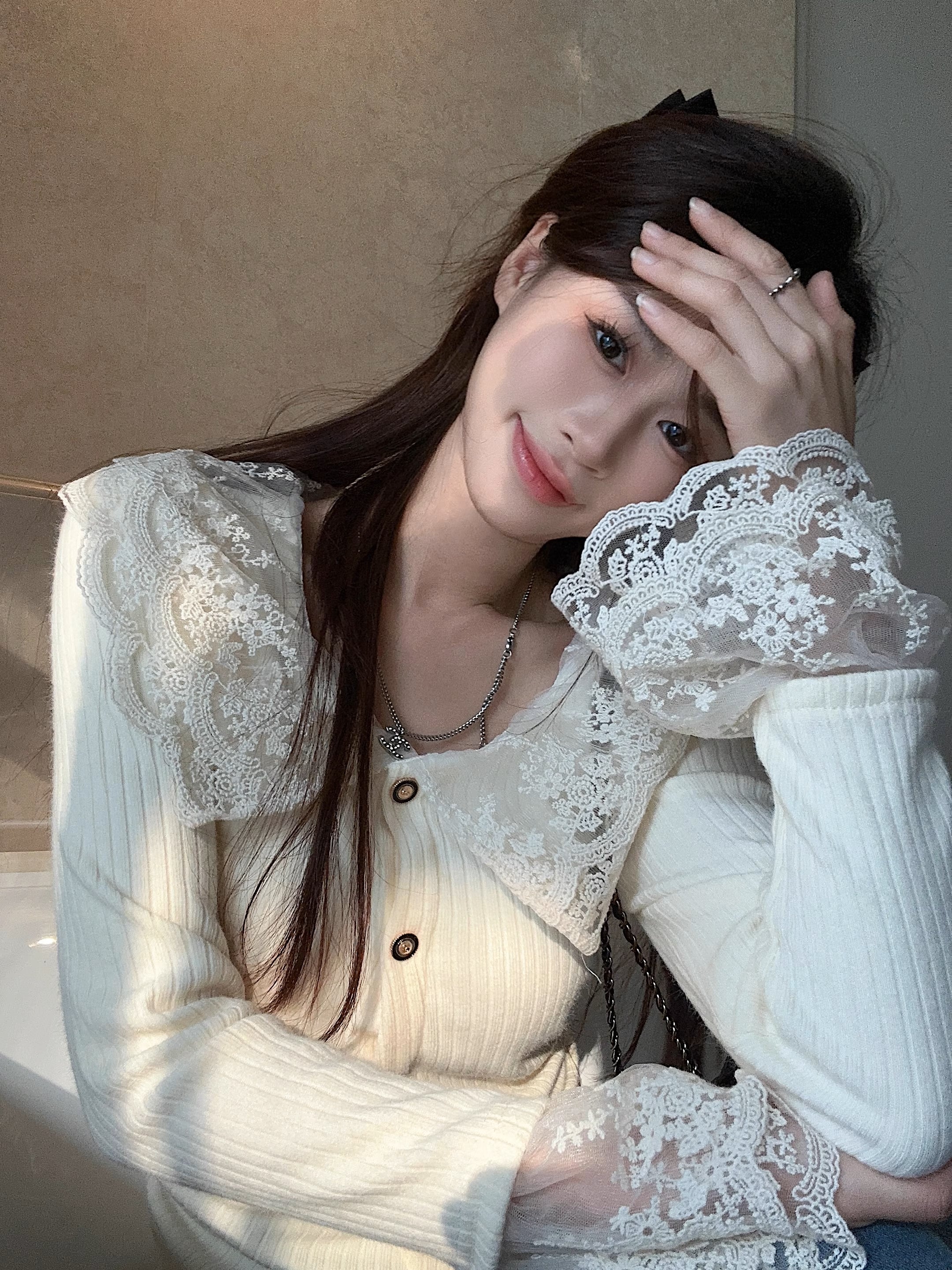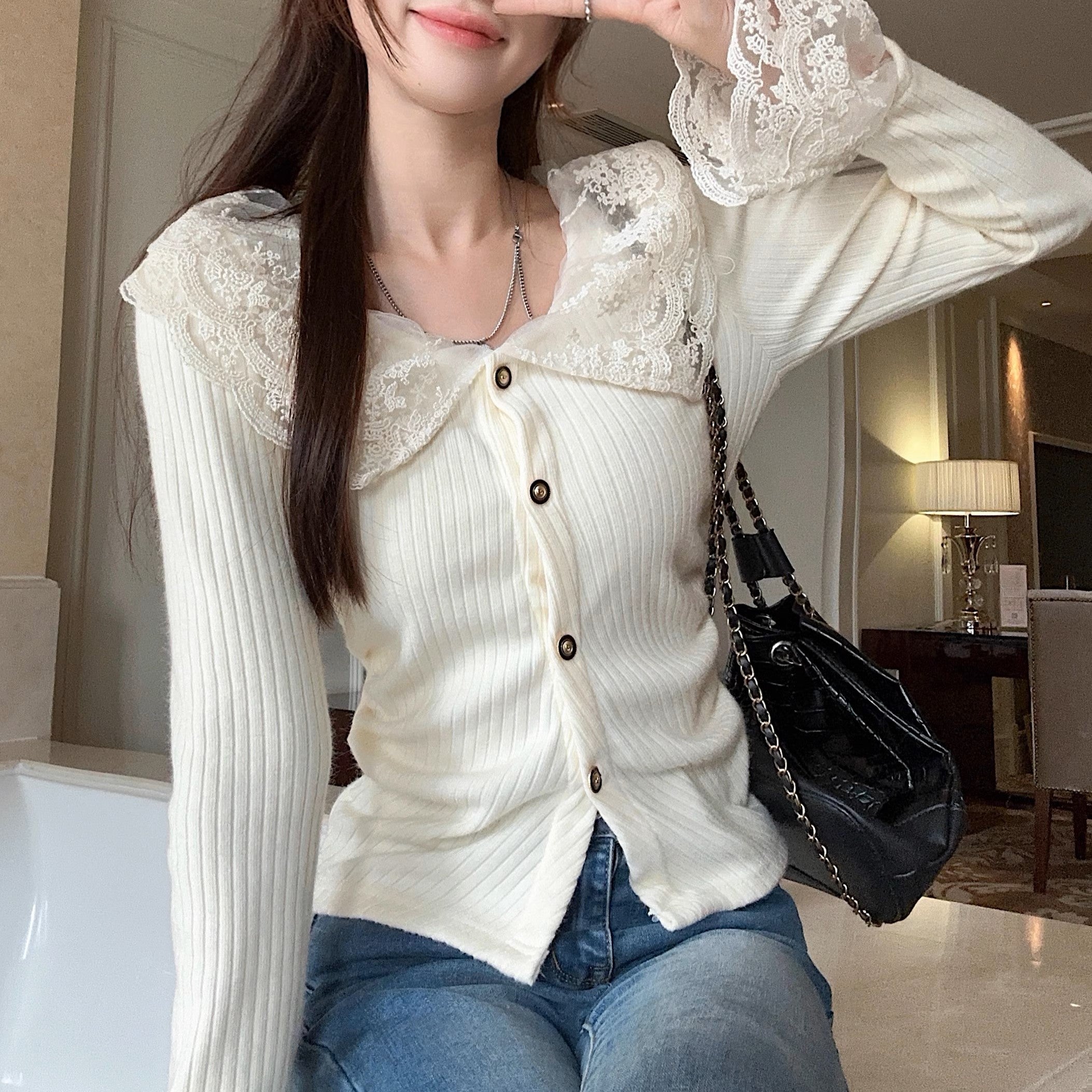 恋の始まりレースカラーニット_N1760