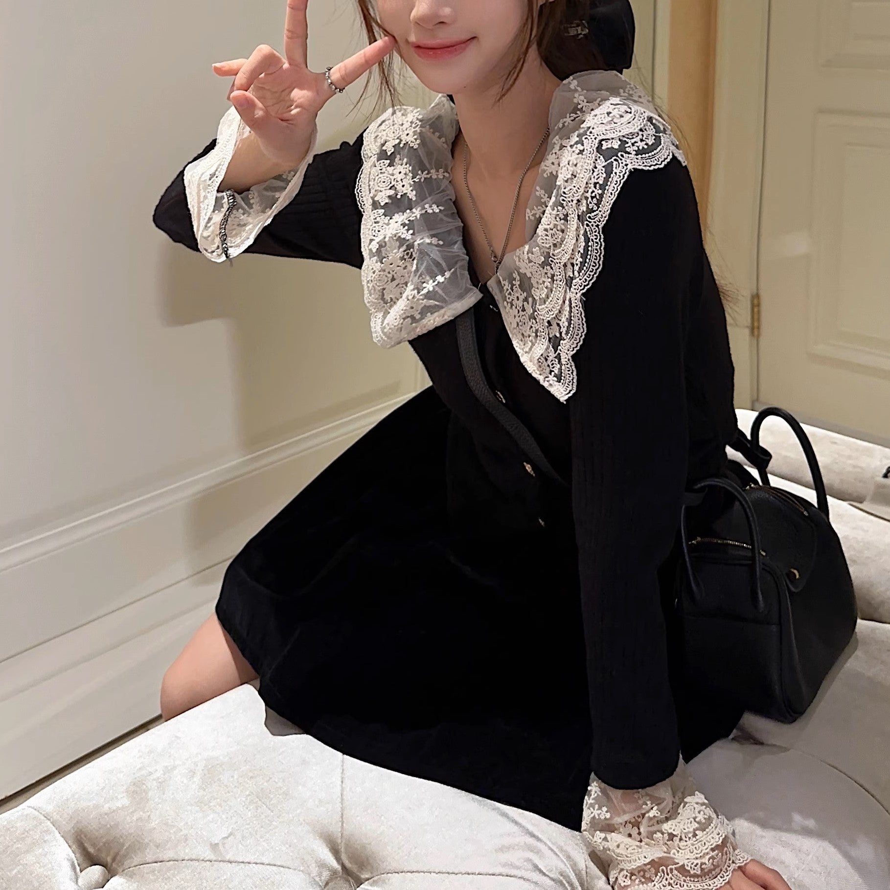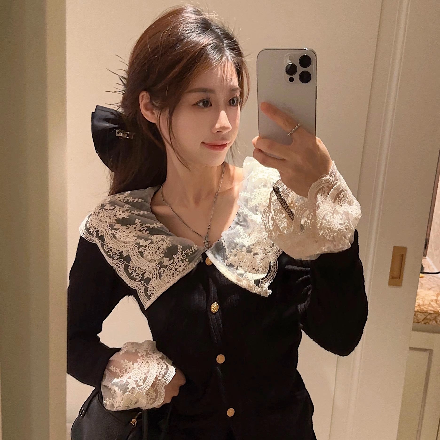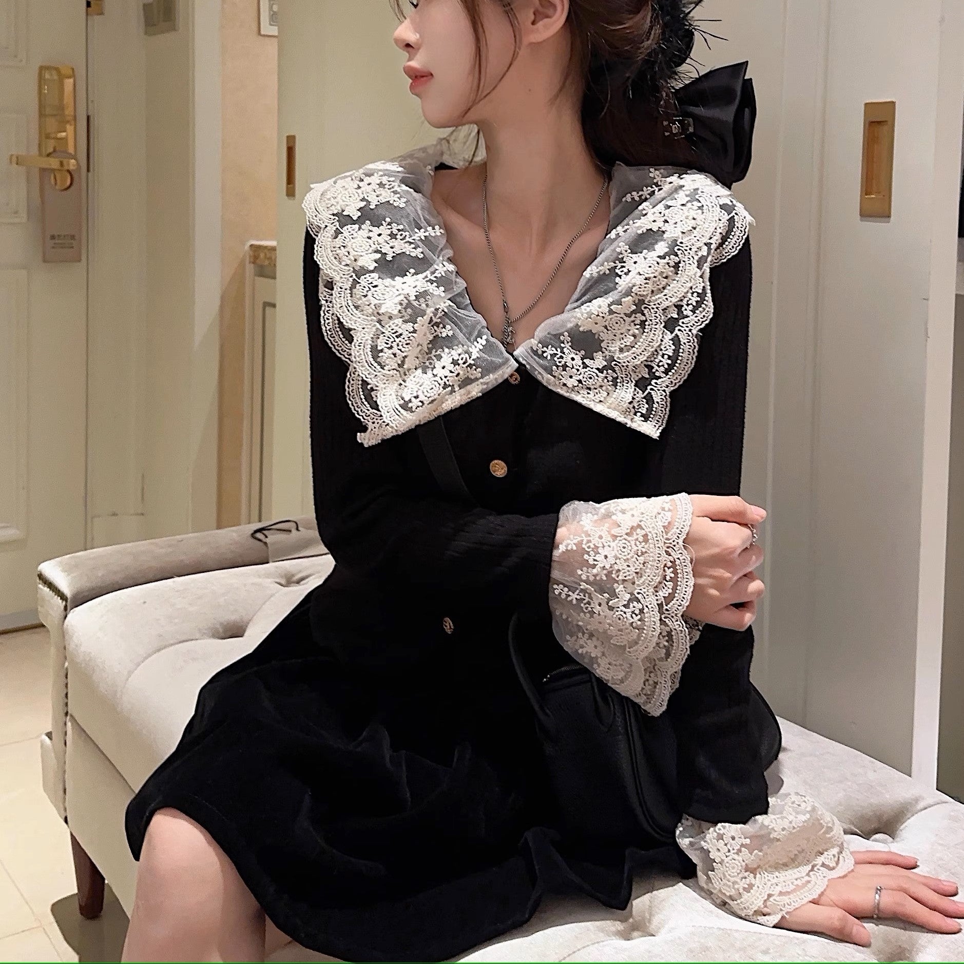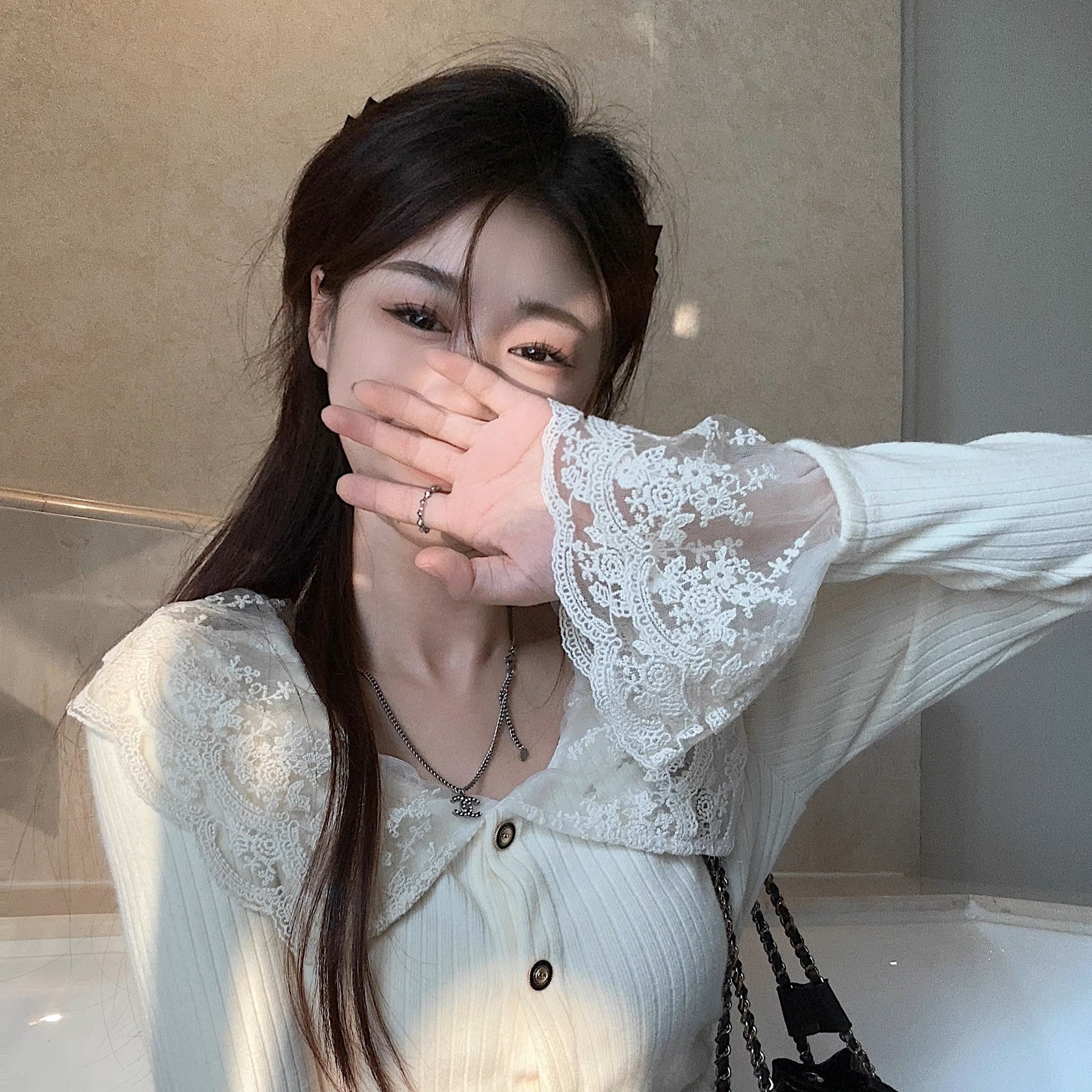恋の始まりレースカラーニット_N1760