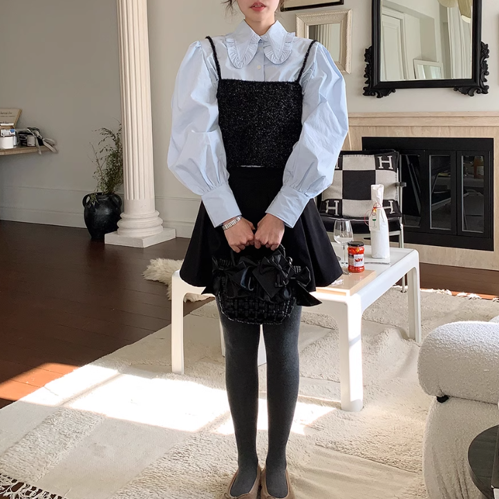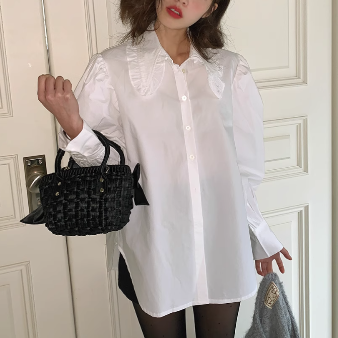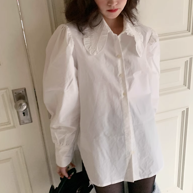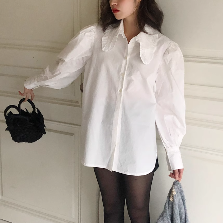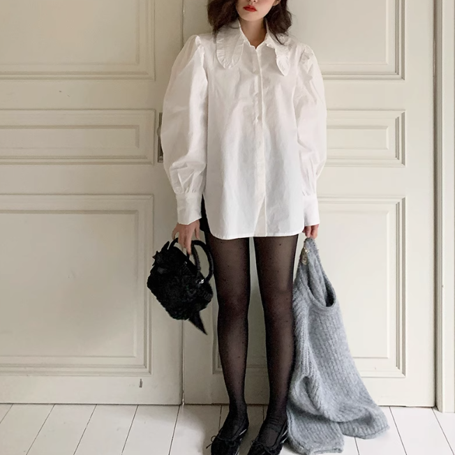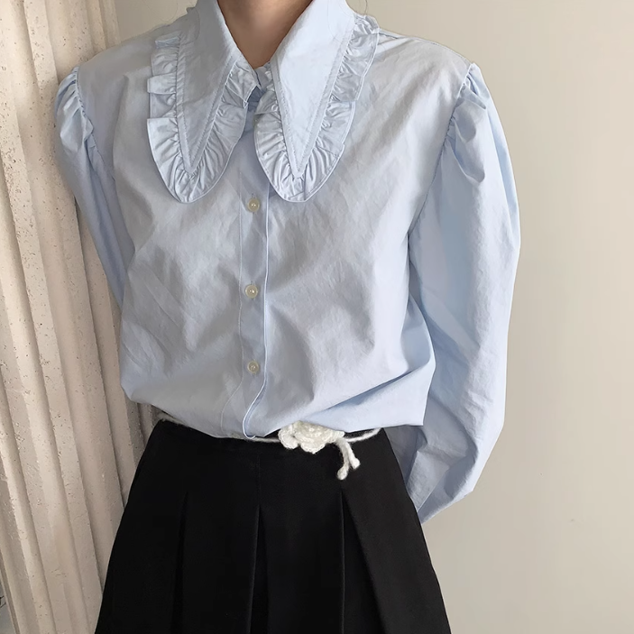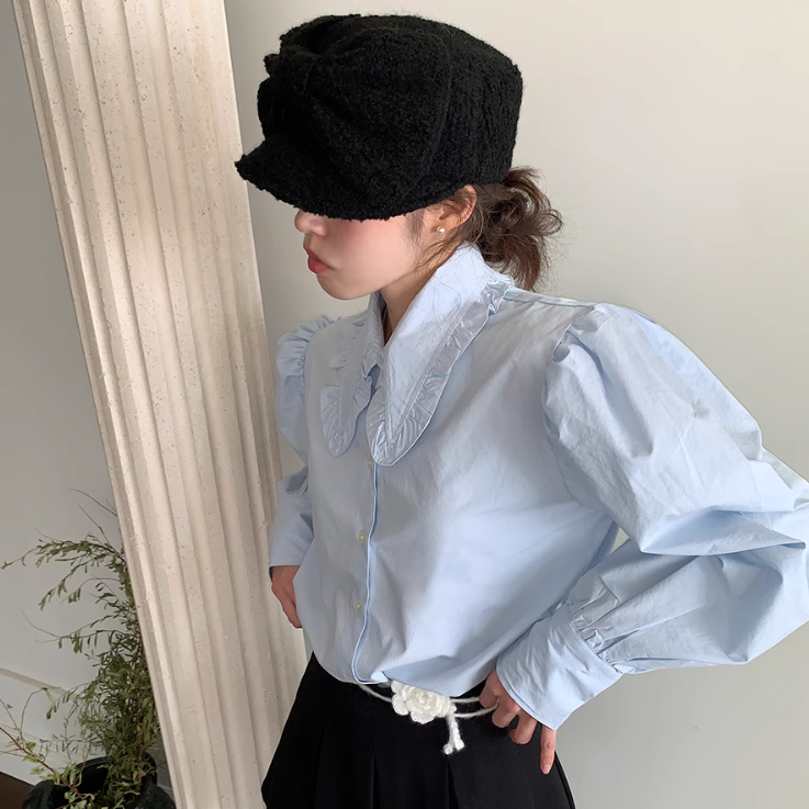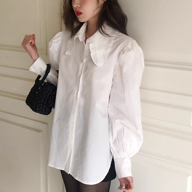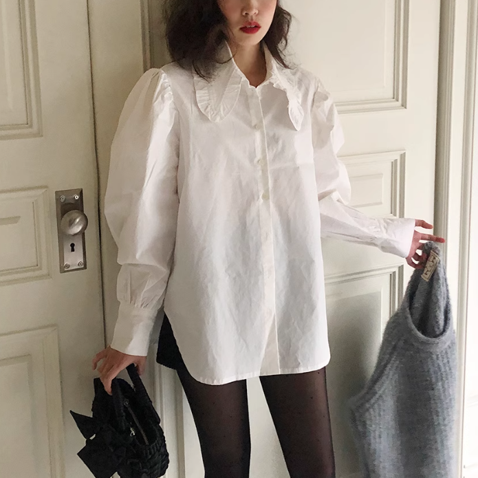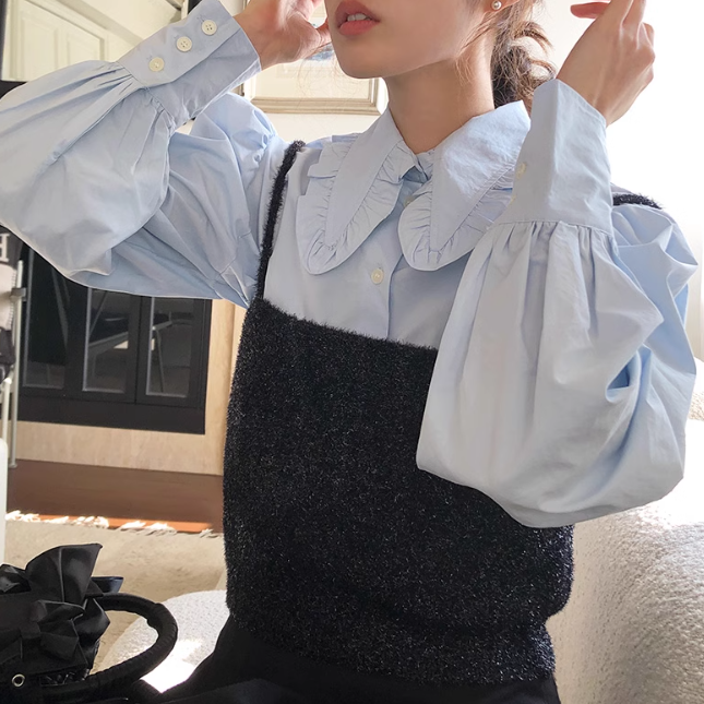 フリル襟とパワーショルダーが可愛いブラウス♡