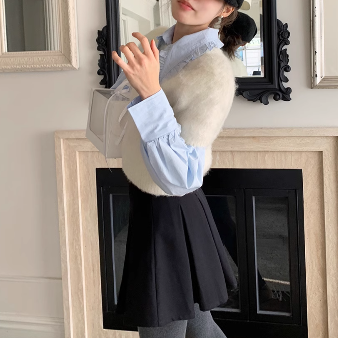 ニットとのレイヤードコーデにも合わせやすいです!