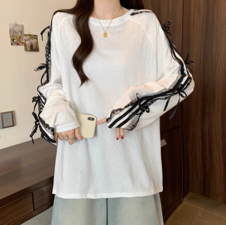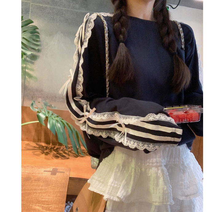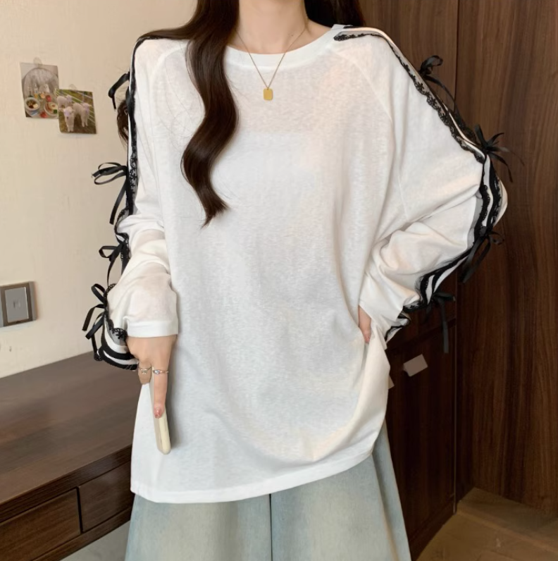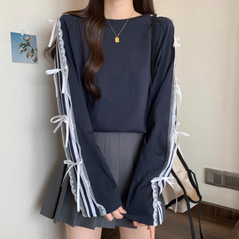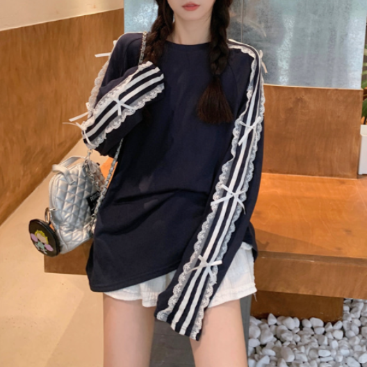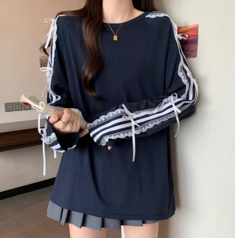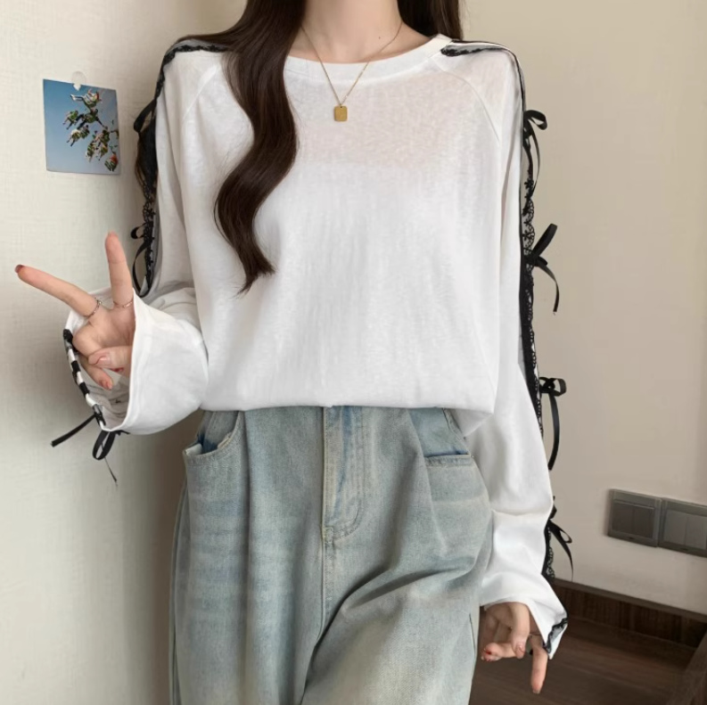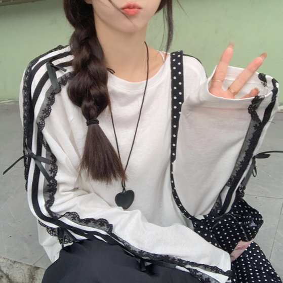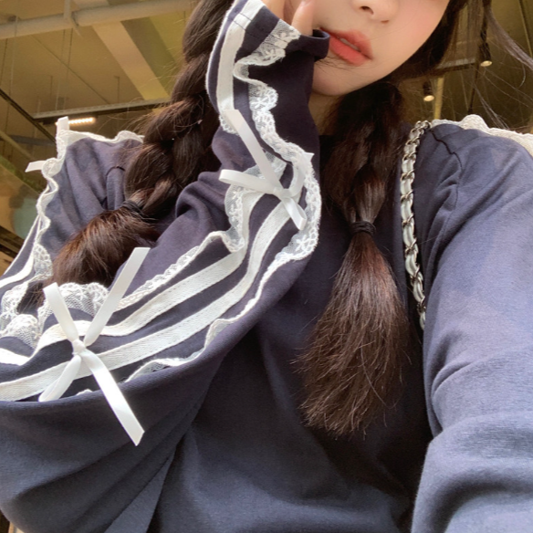 好きな街を歩く彼女のリボンレーストップス_N1449