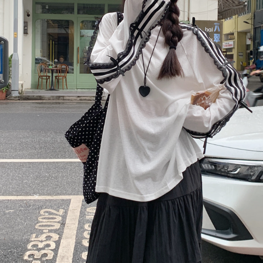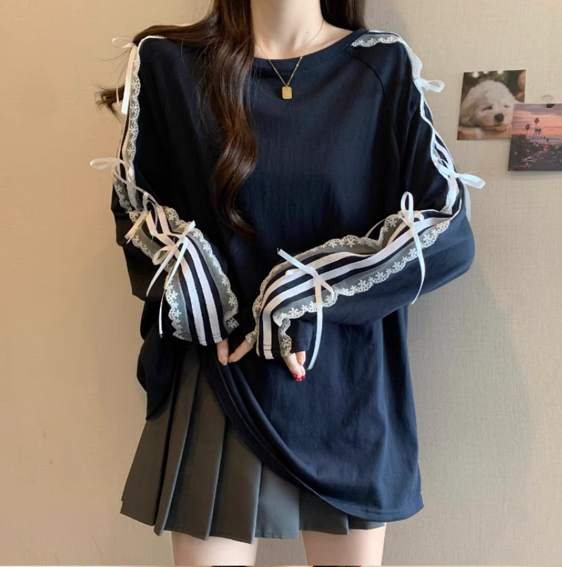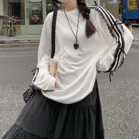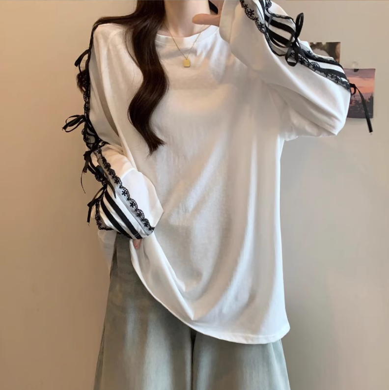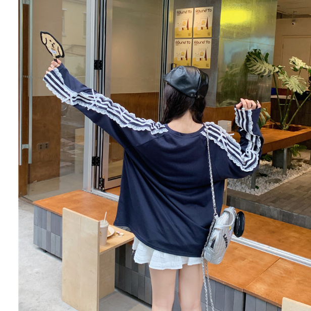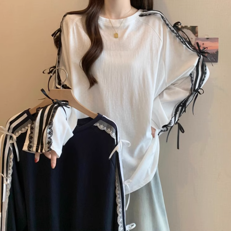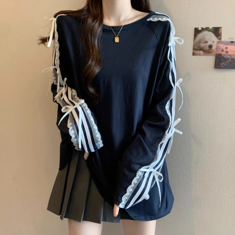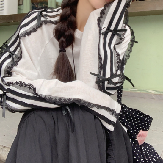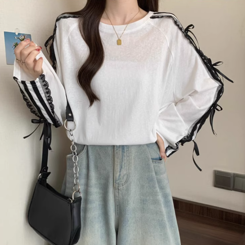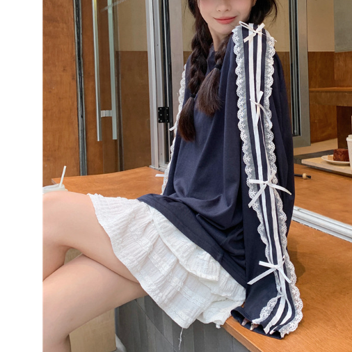 好きな街を歩く彼女のリボンレーストップス_N1449