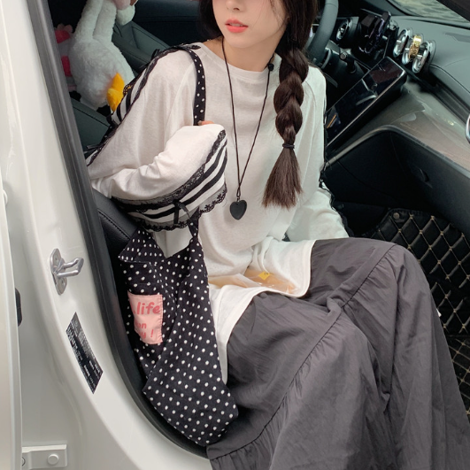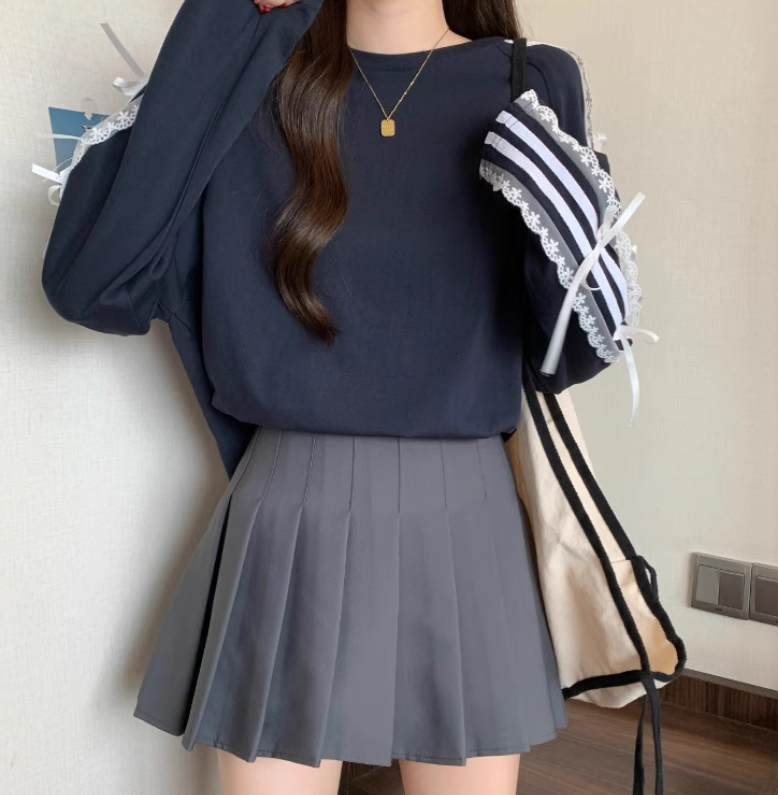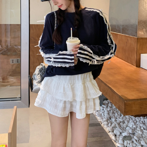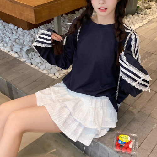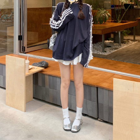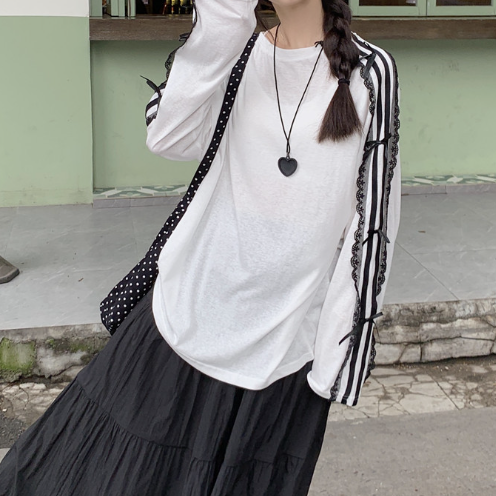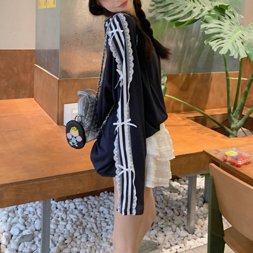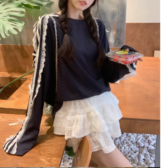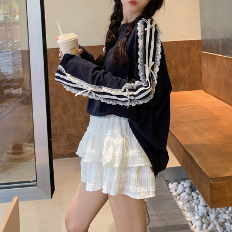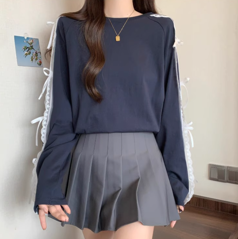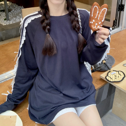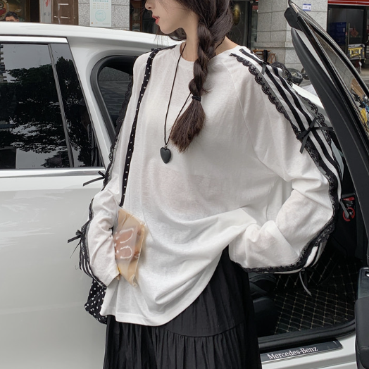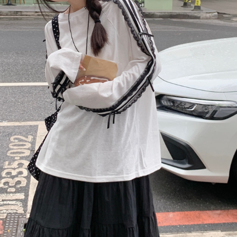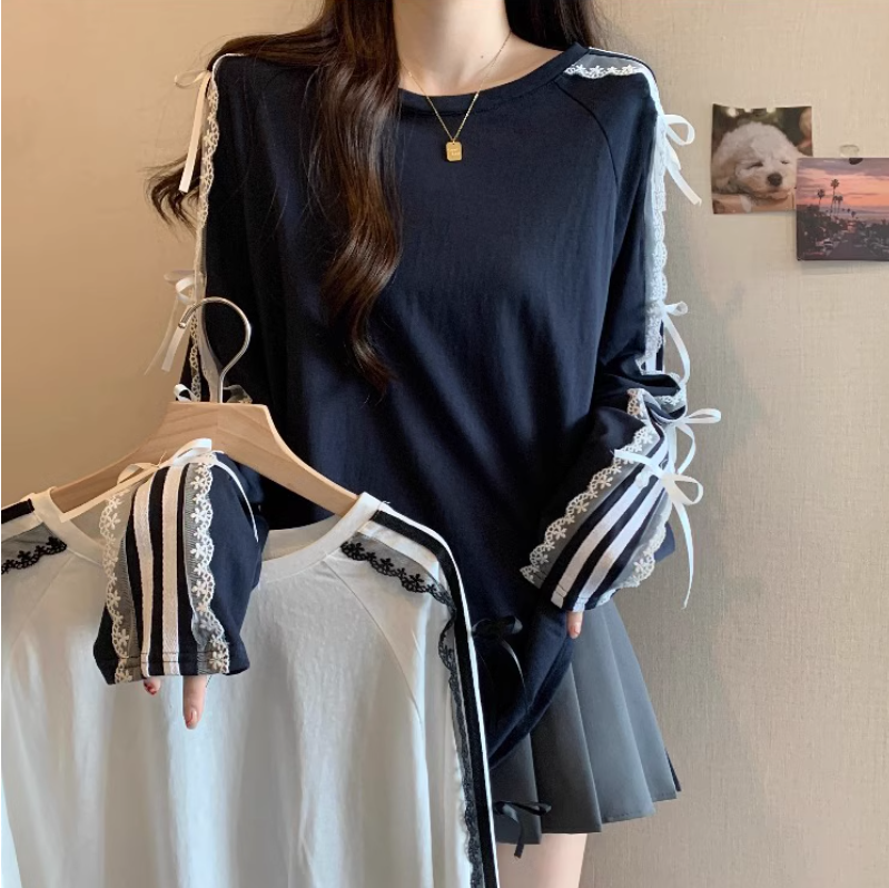 好きな街を歩く彼女のリボンレーストップス_N1449