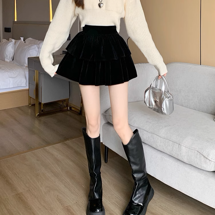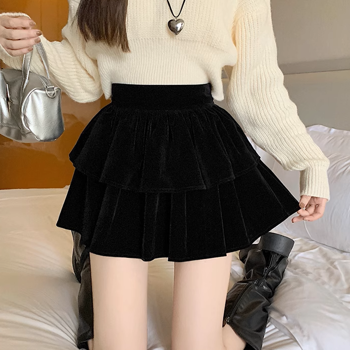 【1/17新発売】秘密の約束をした日のベロアティアードスカート_N1814
