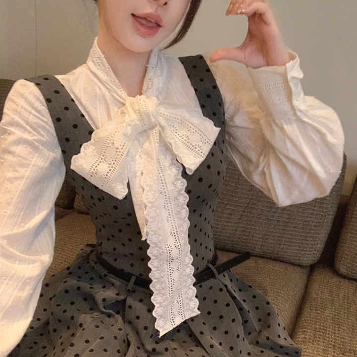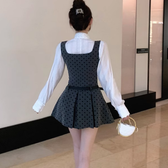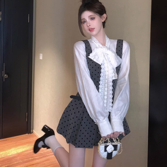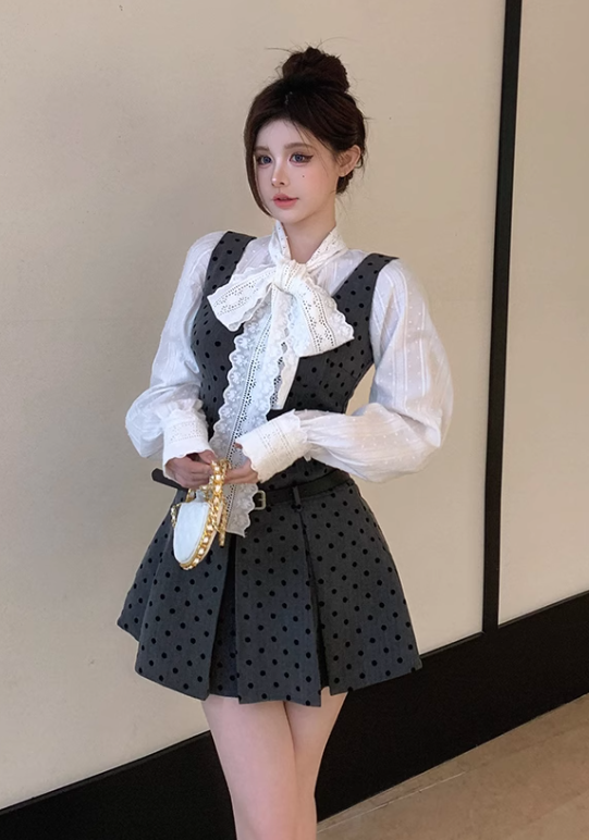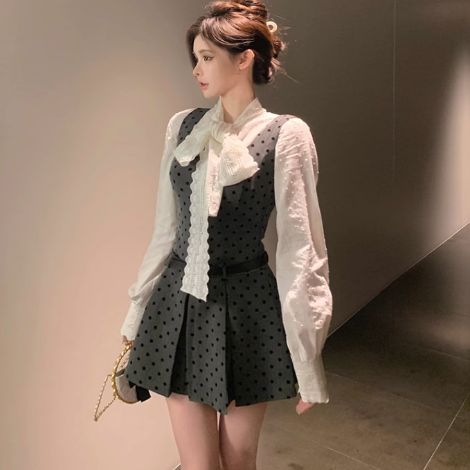 ドット柄ワンピースとリボン、秘密の待ち合わせ_N1856
