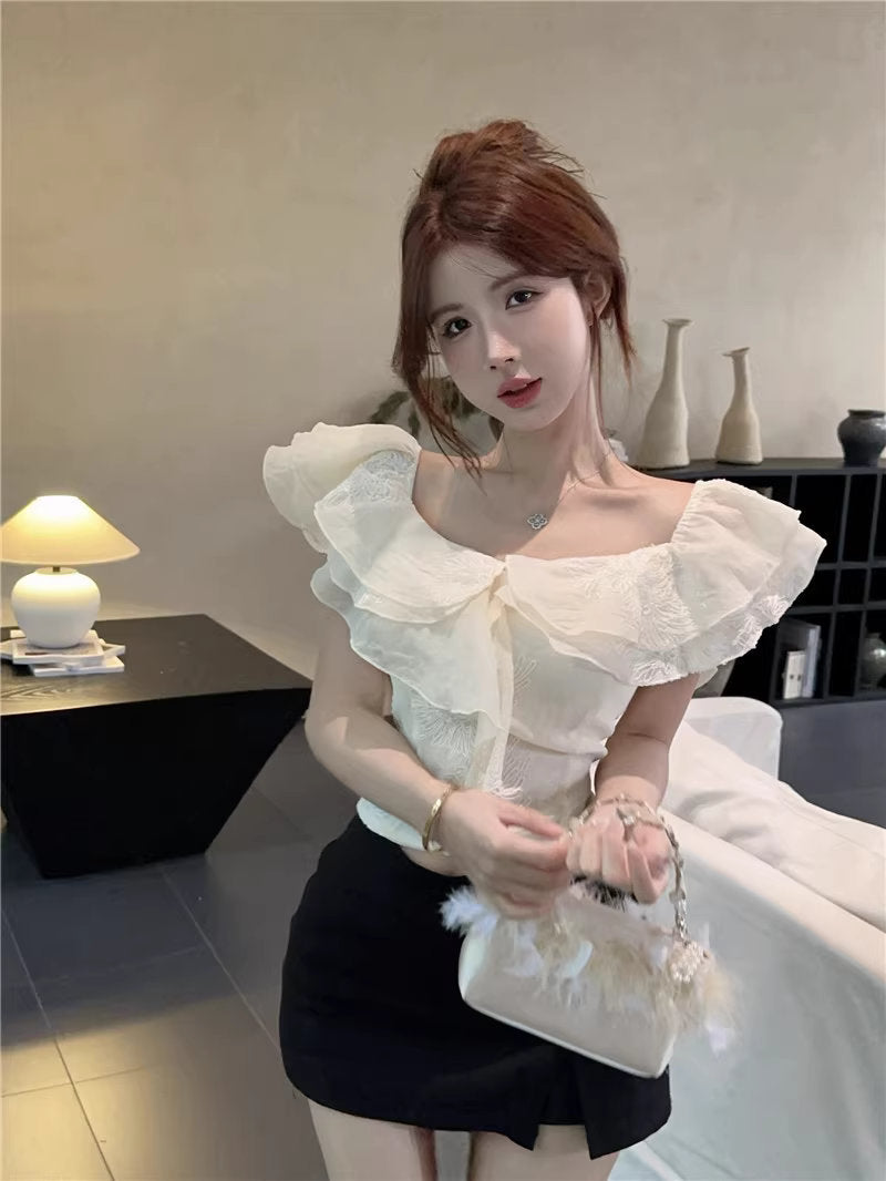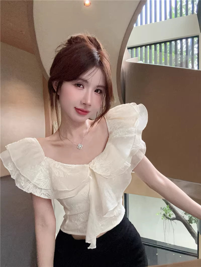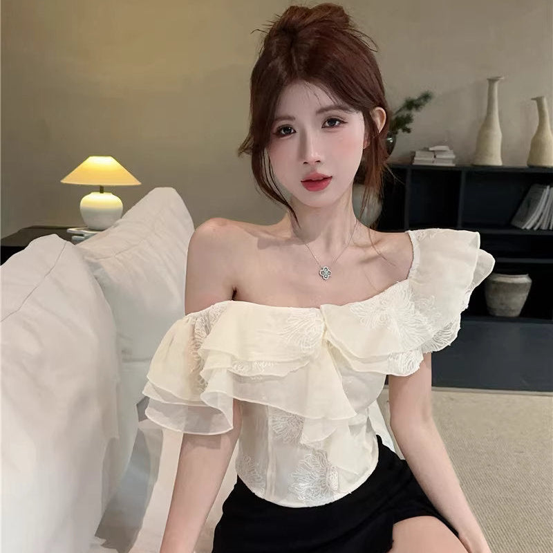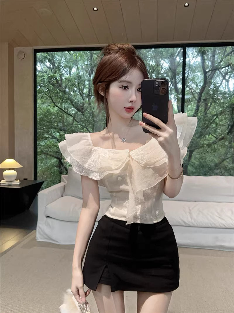 ひと口のマカロンと、ときめきを重ねたフリルトップス_R0002