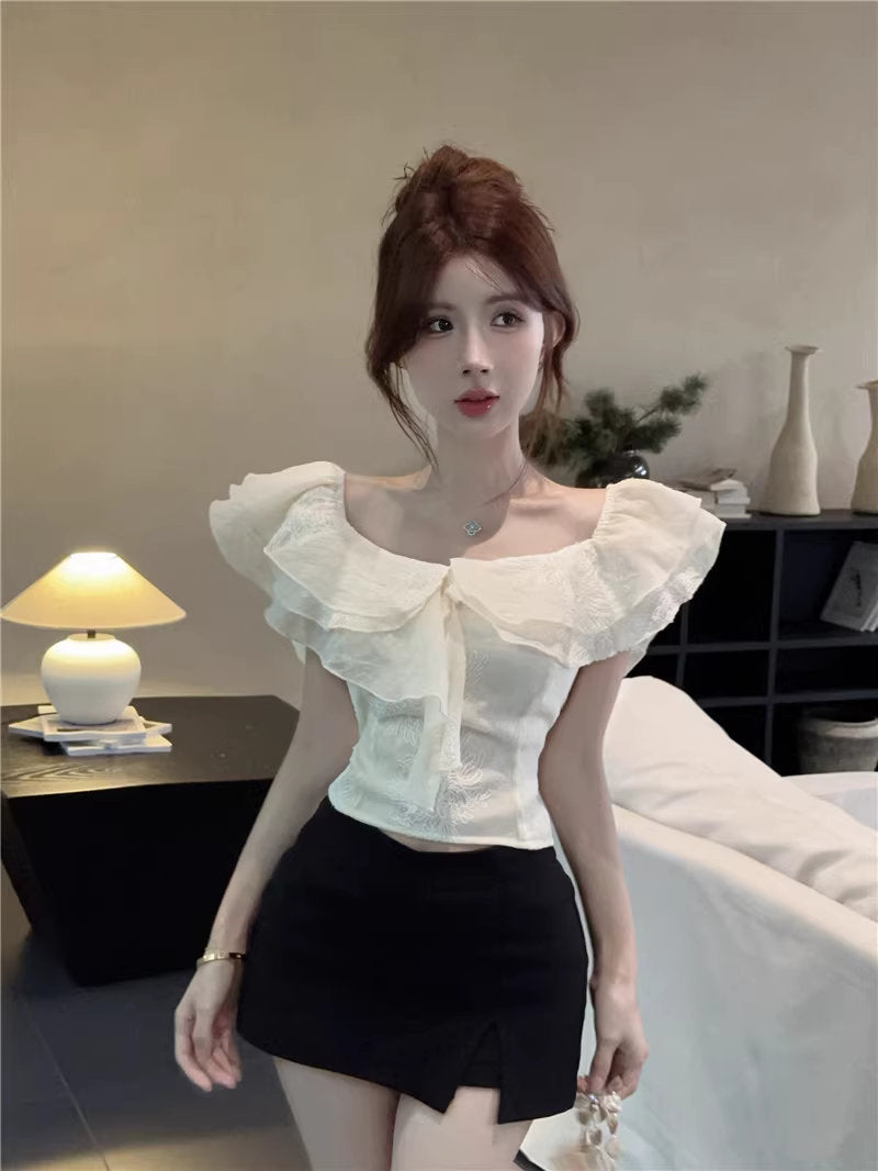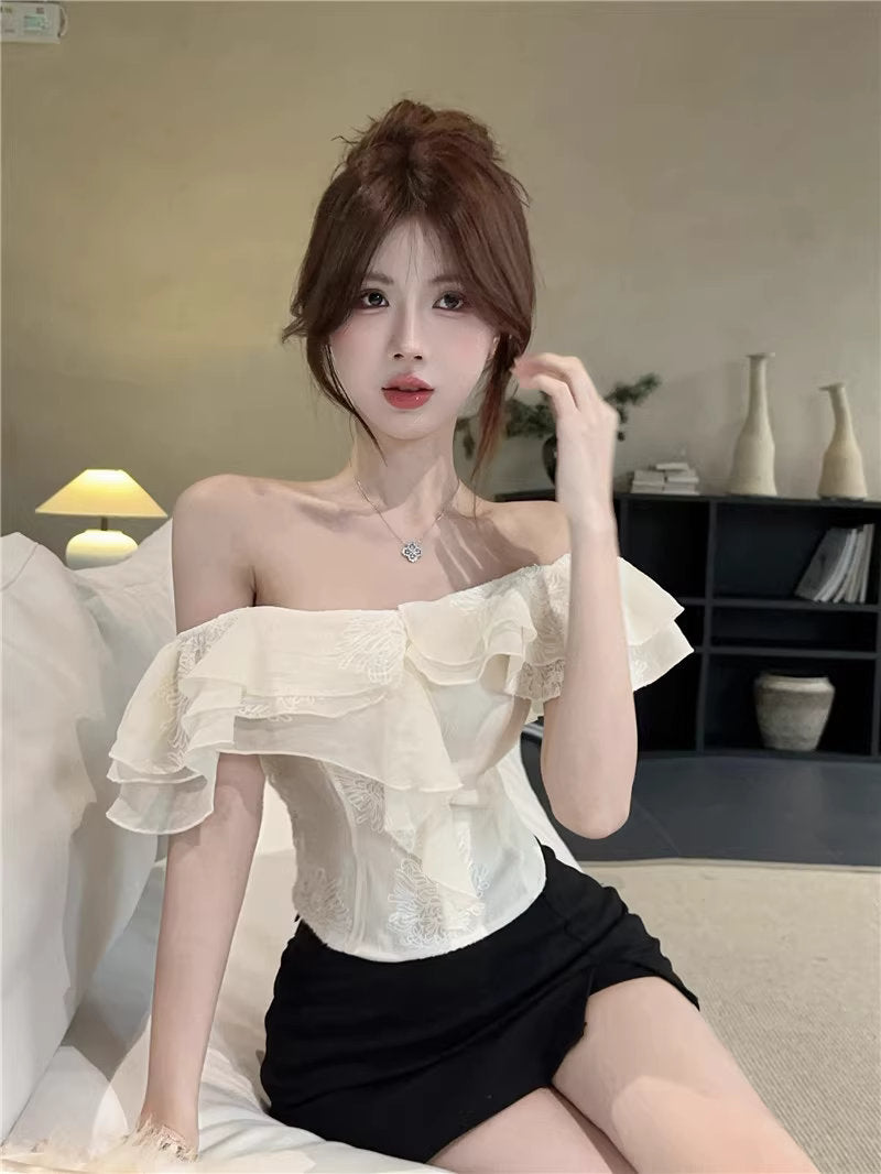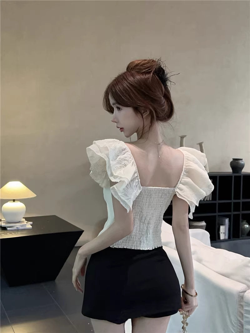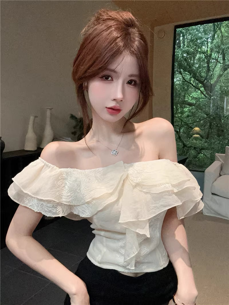 ひと口のマカロンと、ときめきを重ねたフリルトップス_R0002