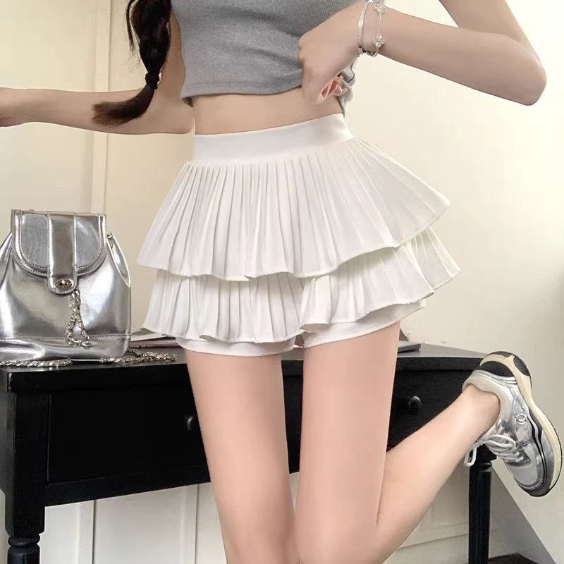 こちらはプリーツ×フリルの2段デザインが可愛いスカートショートパンツ♡