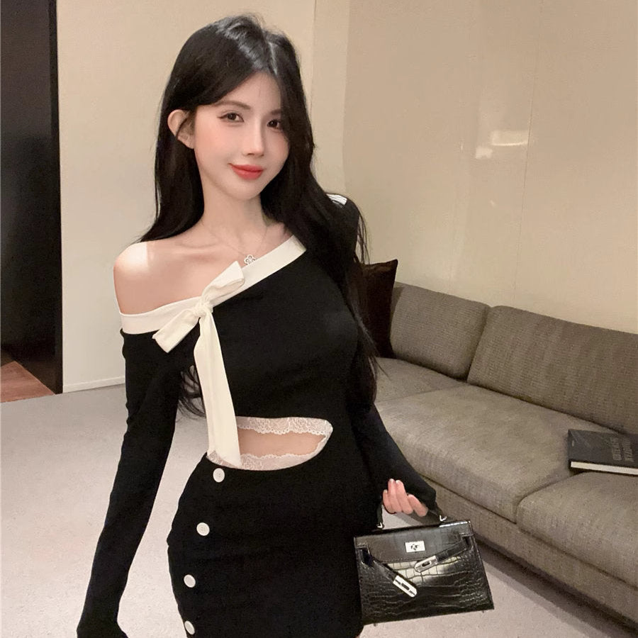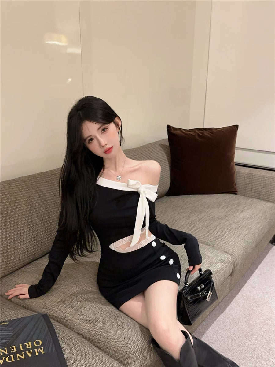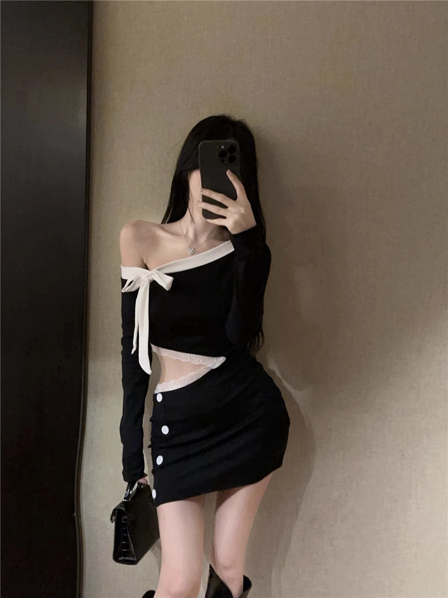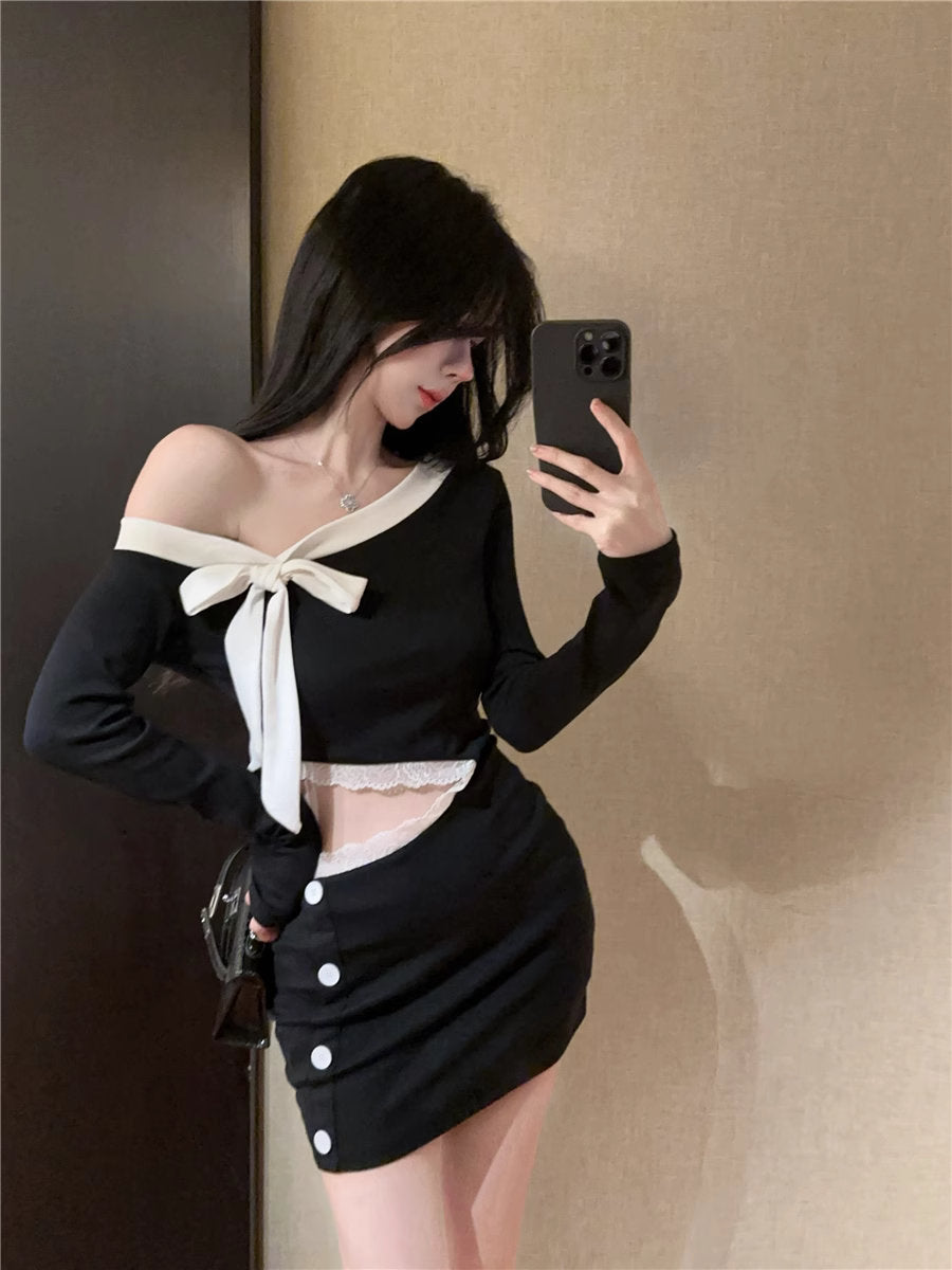 ガーリーさとセクシーな雰囲気を絶妙に両立した、大人かわいいモノトーンセットアップです🖤🎀