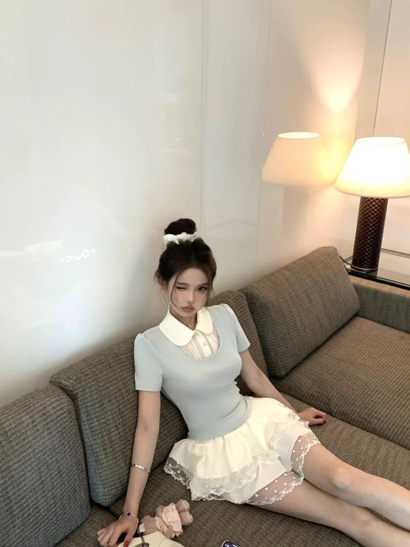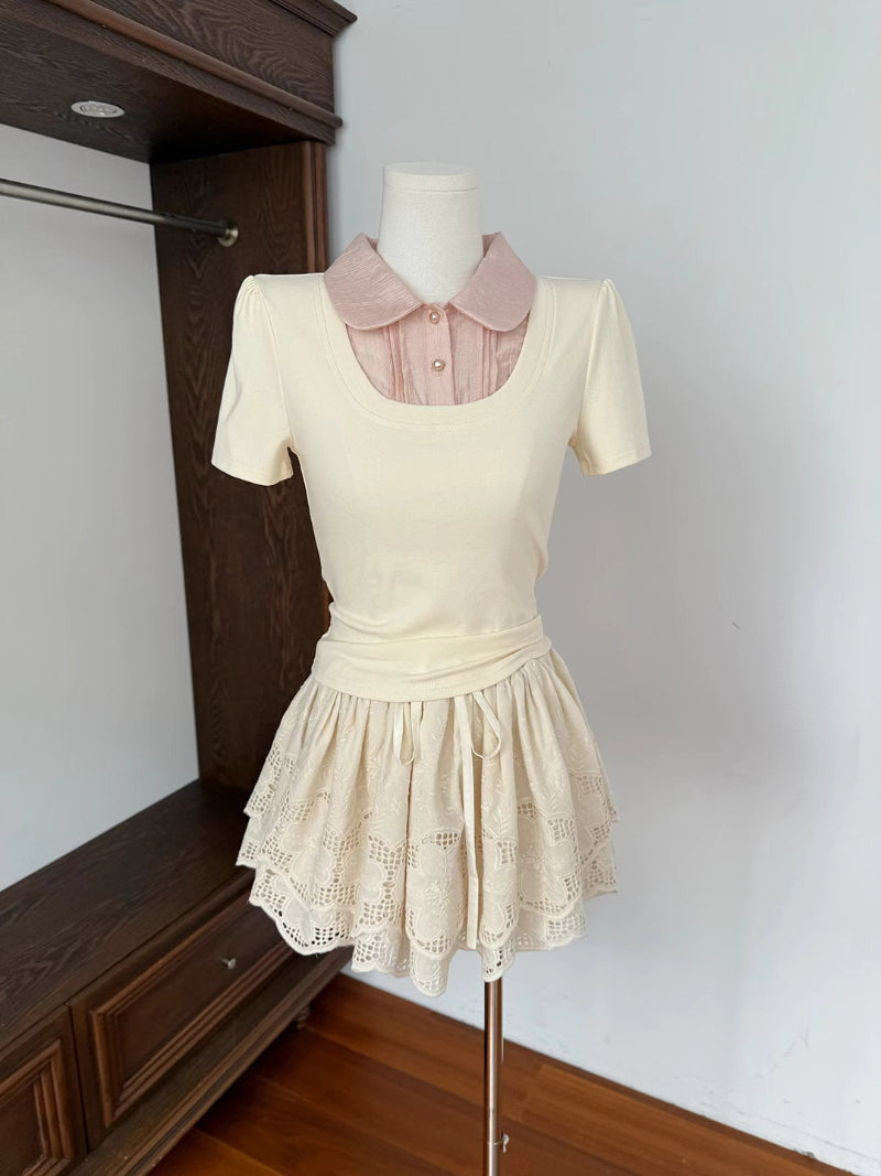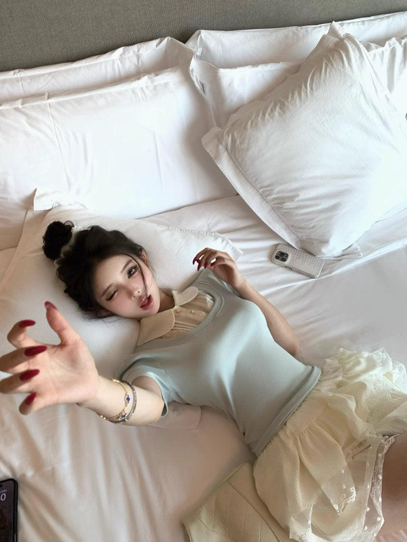 やわらかなカラーと程よいフィット感で、大人ガーリーな装いに。