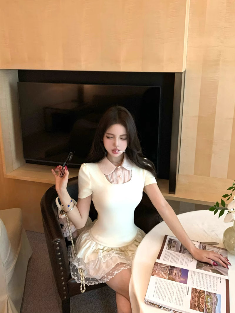 クラシカルなセーラーカラーと、胸元のリボンが印象的な上品トップス🎀