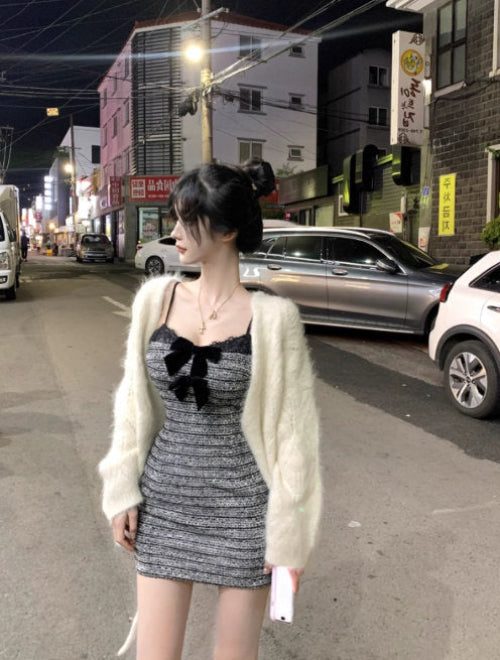 バスト部分にふたつのリボンが、クラシカルな可愛さと大人の色気を両立🎀