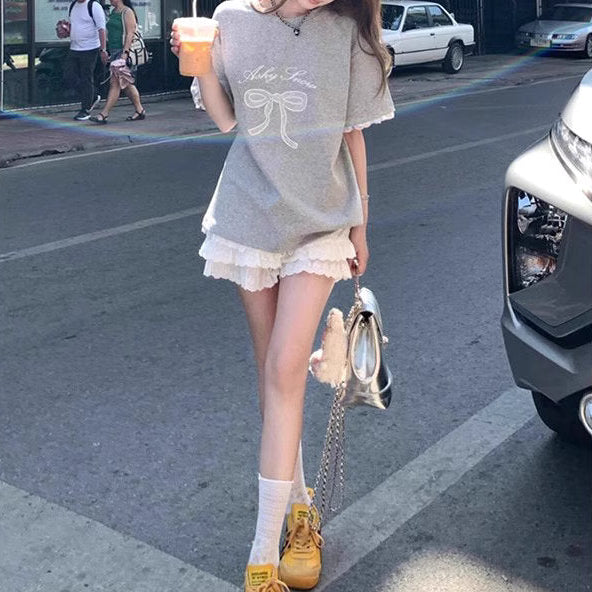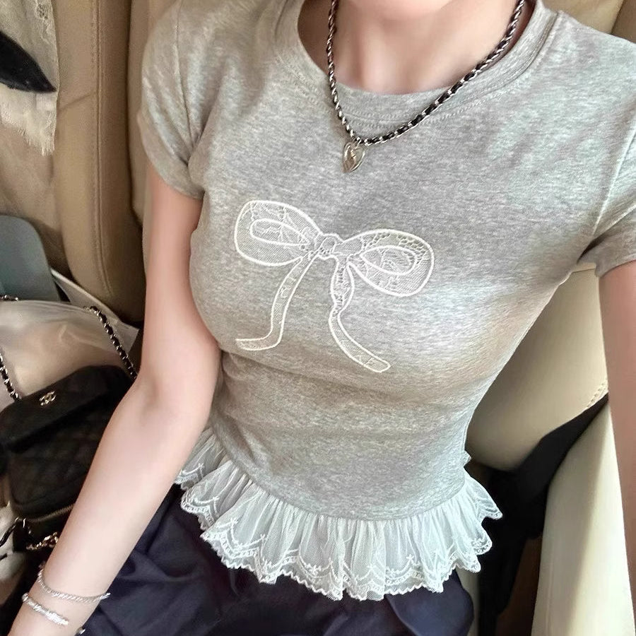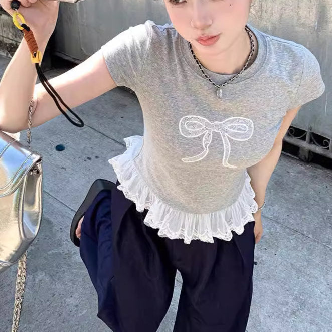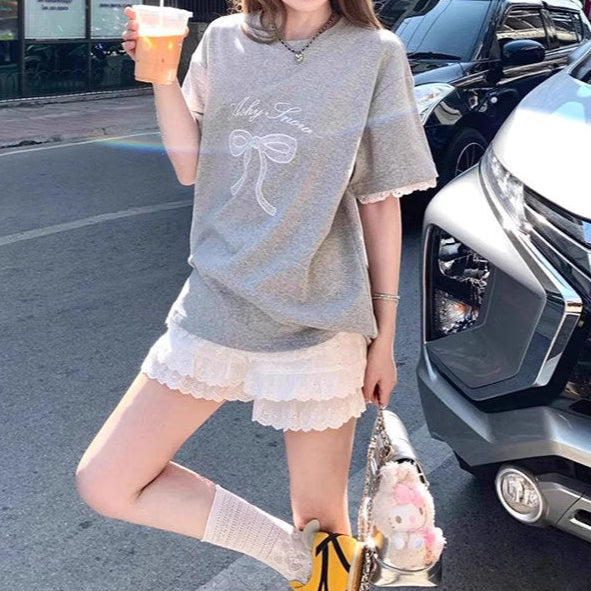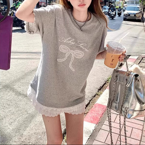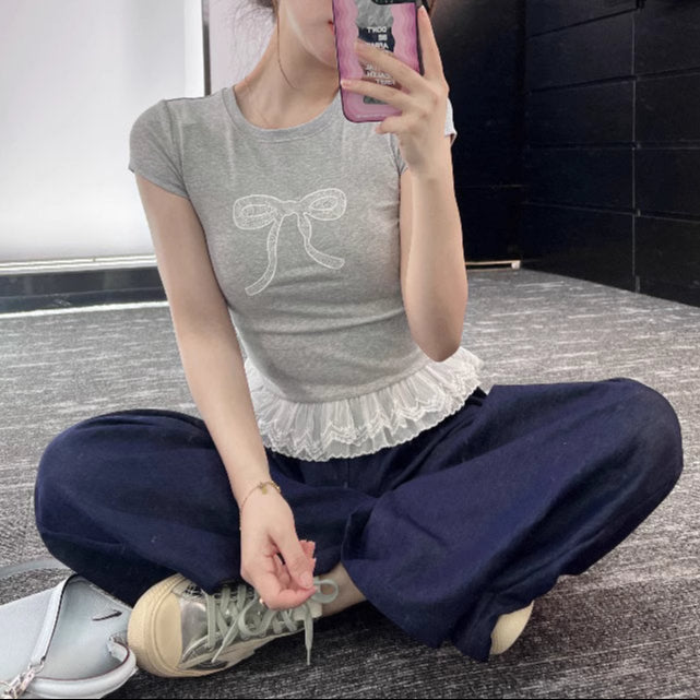 胸元のリボンロゴ刺繍が印象的なTシャツに♡