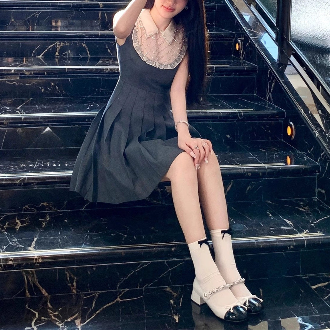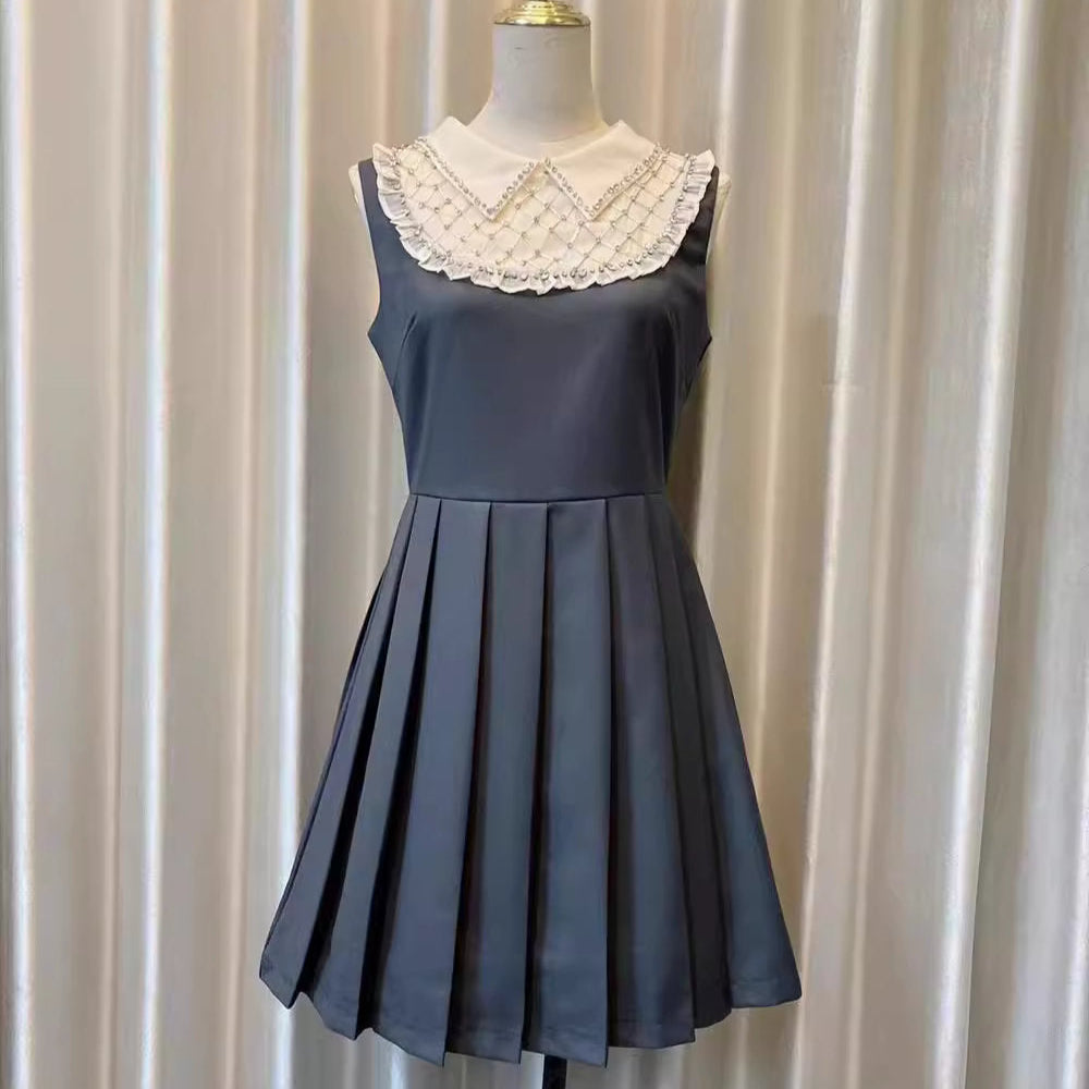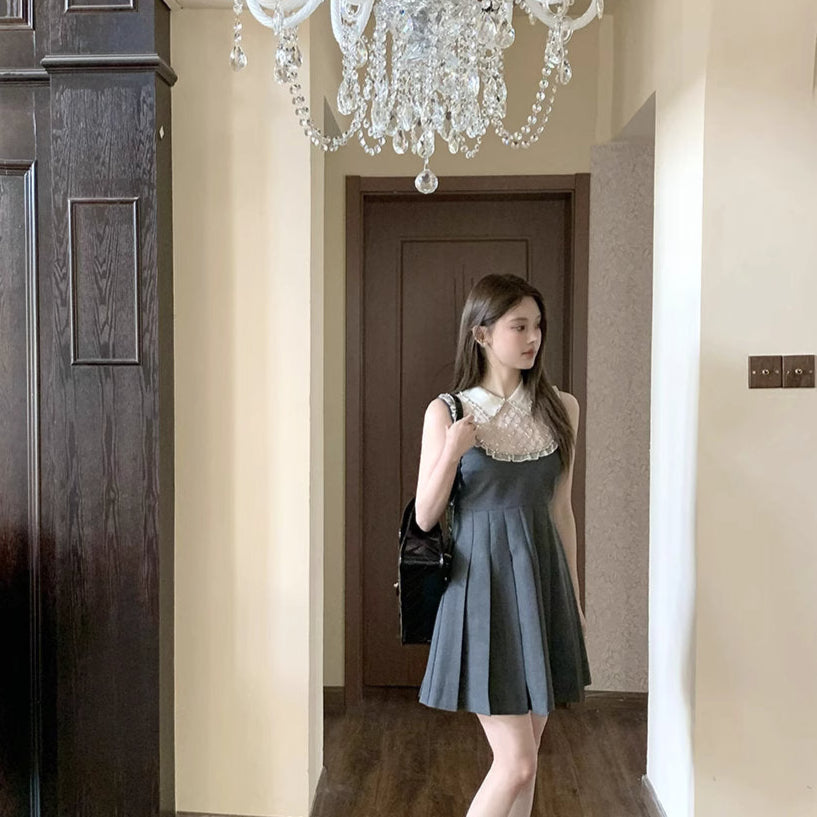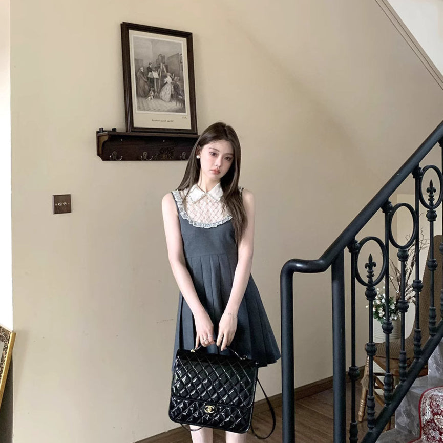 繊細なレース襟と上品グレーカラーのワンピース♡