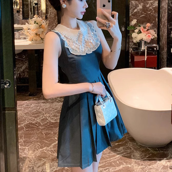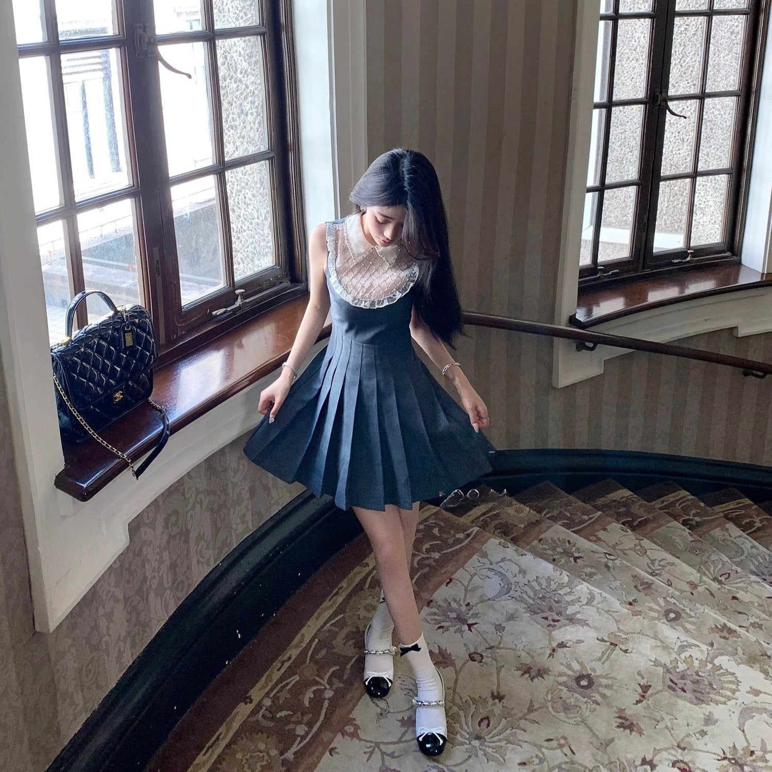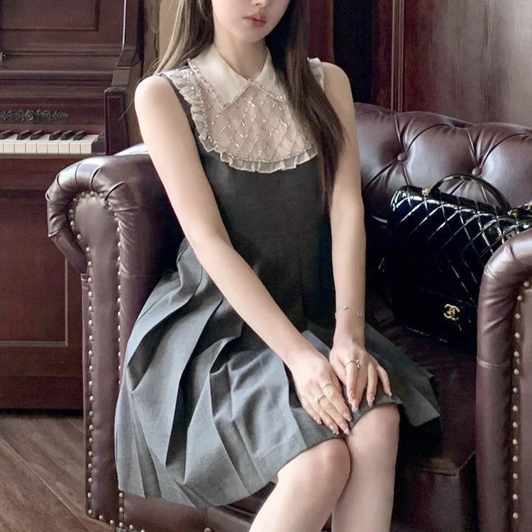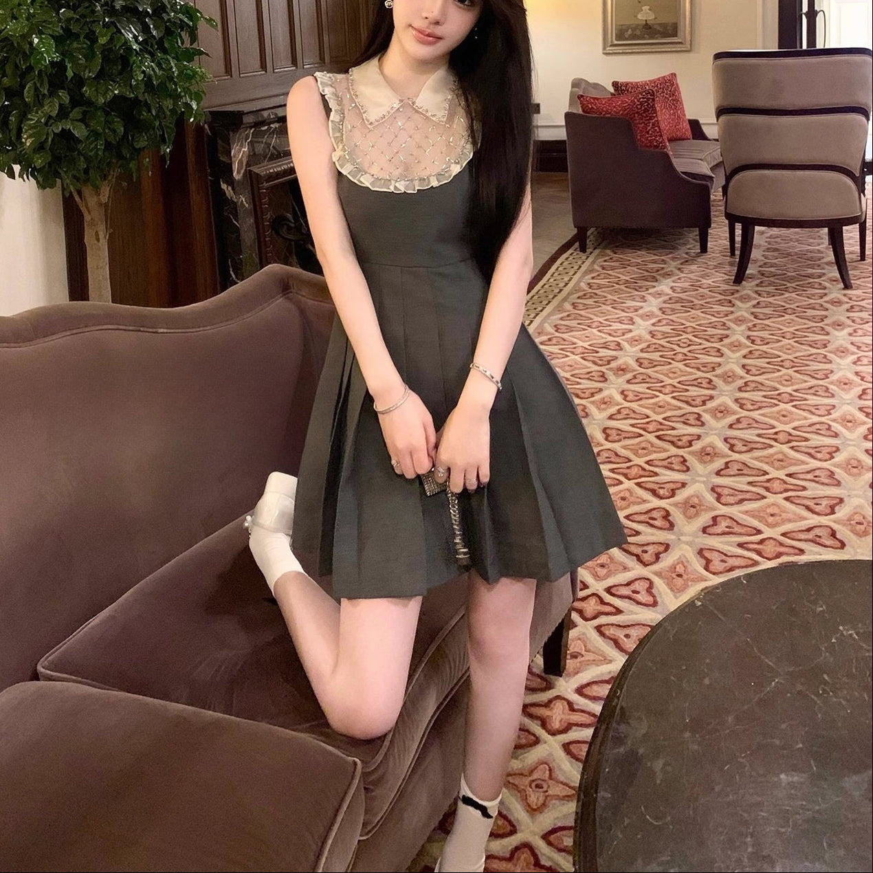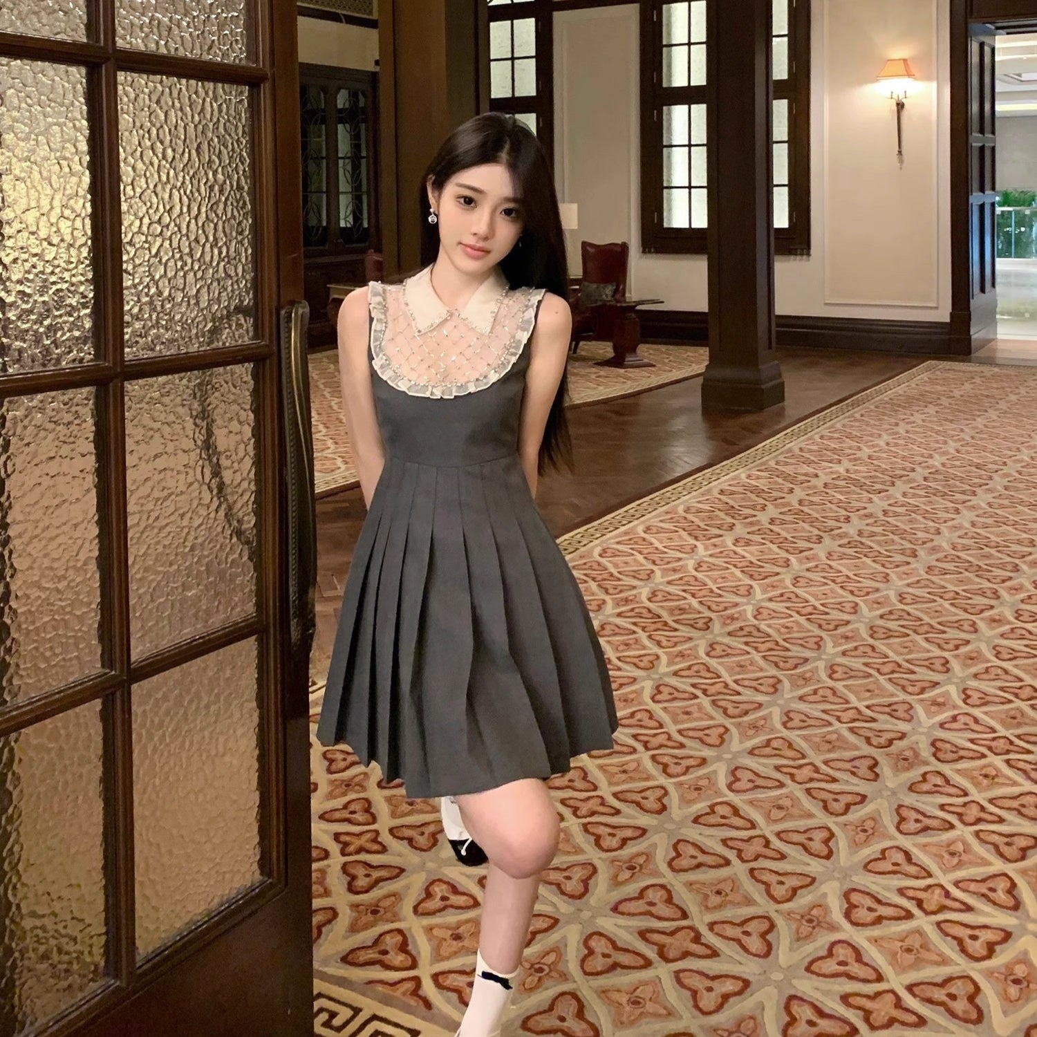 繊細なレース襟と上品グレーカラーのワンピース♡