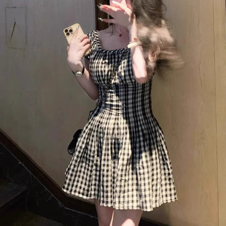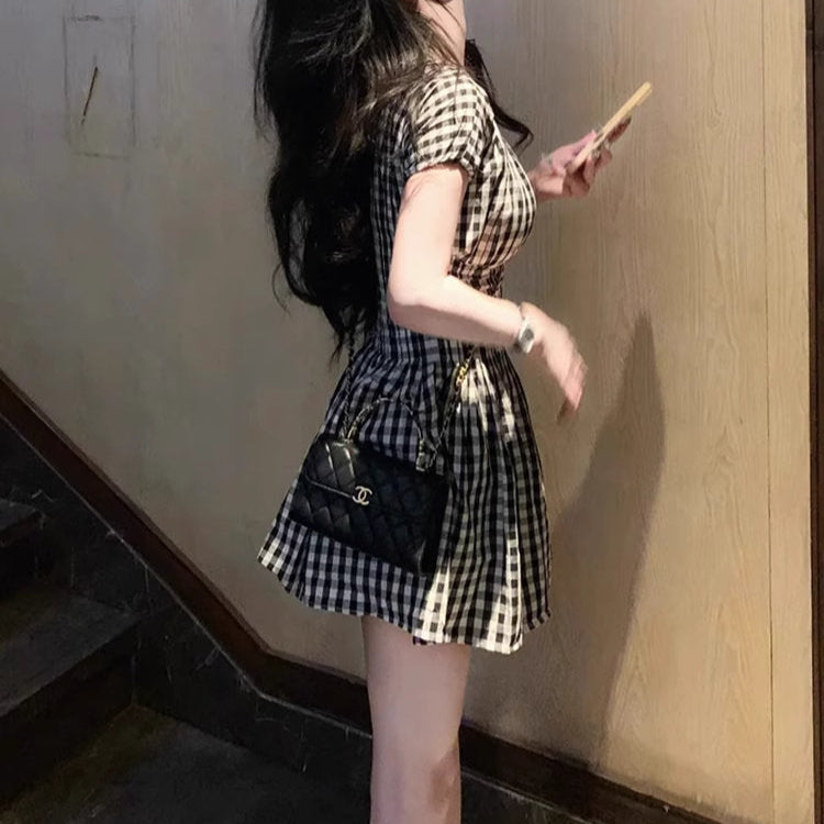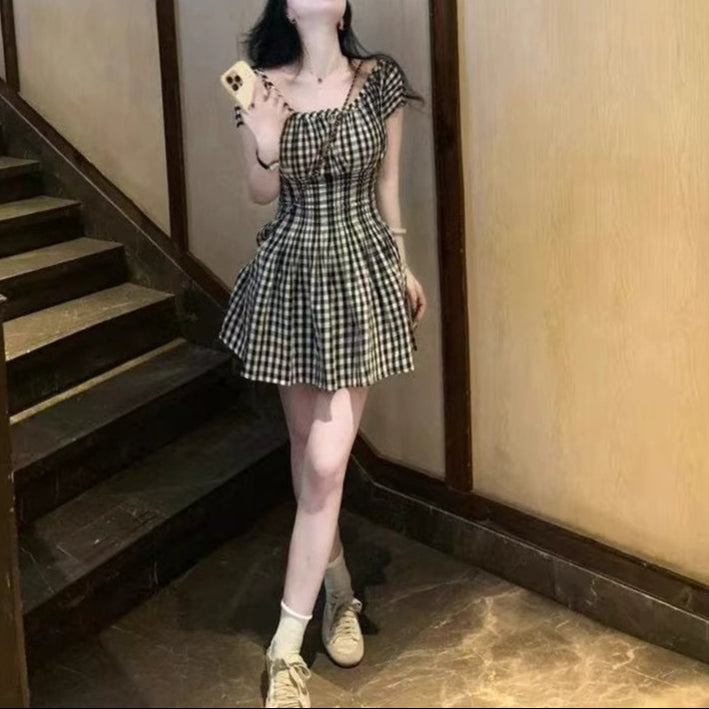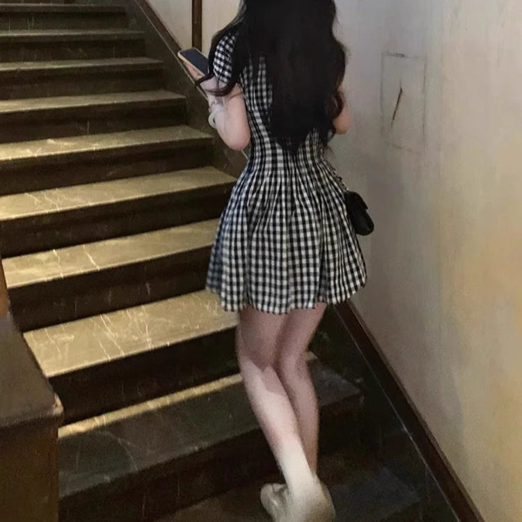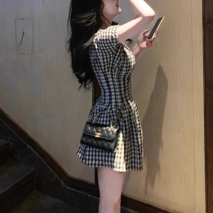 ピアノの音に誘われた夜のチェックワンピース_R0084