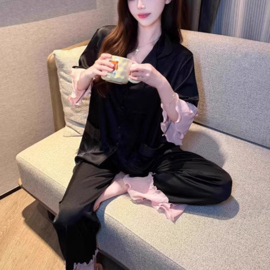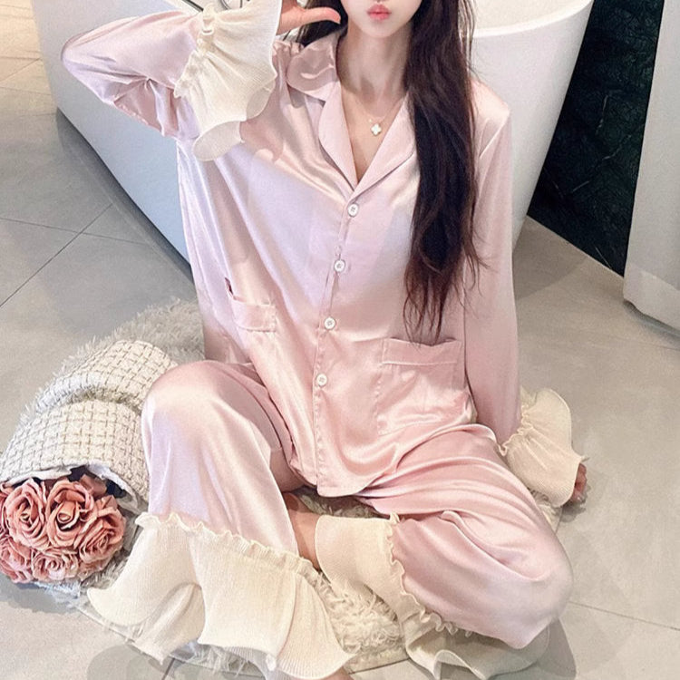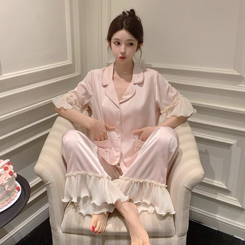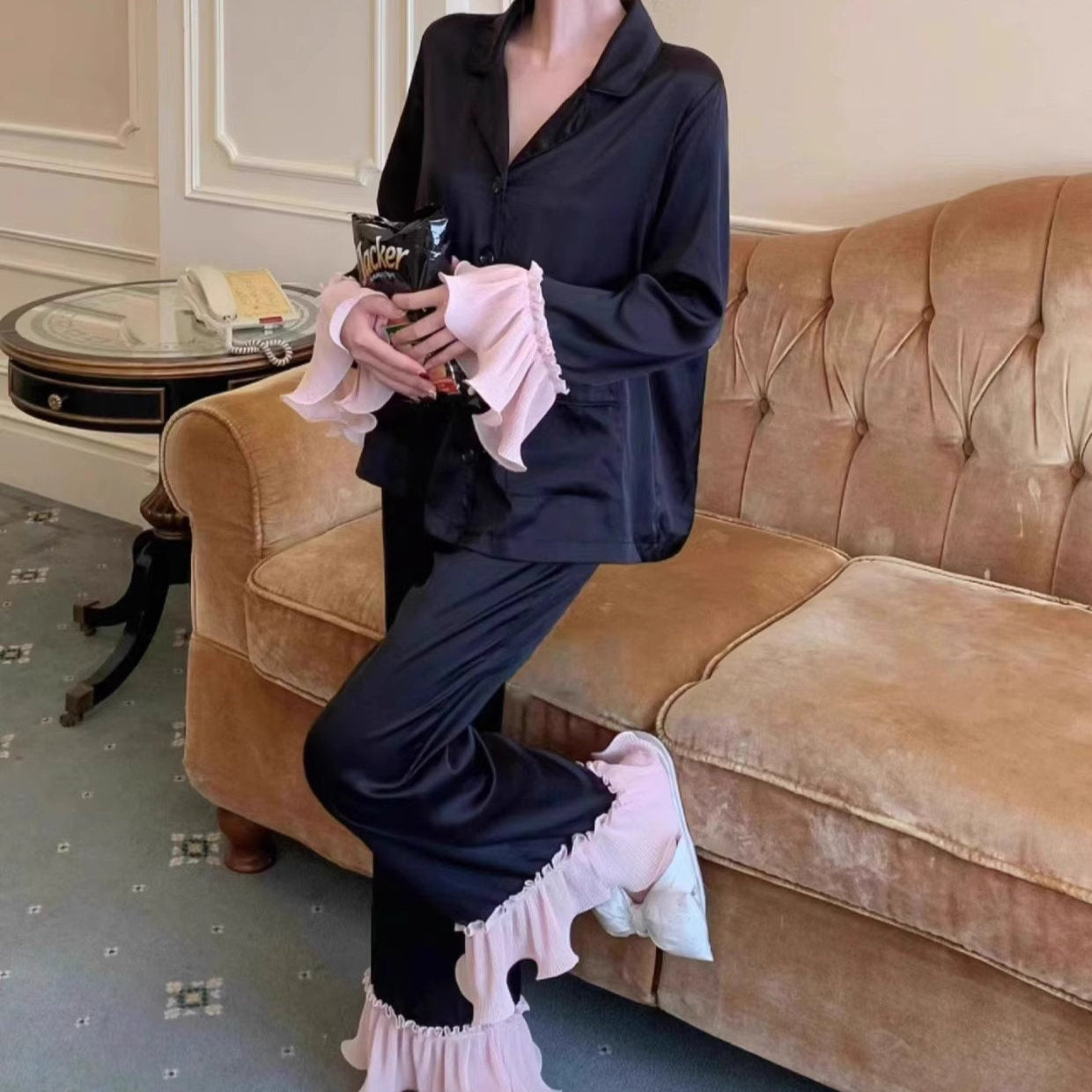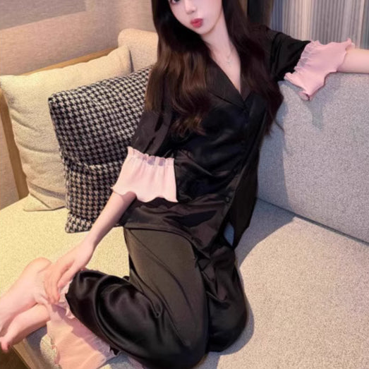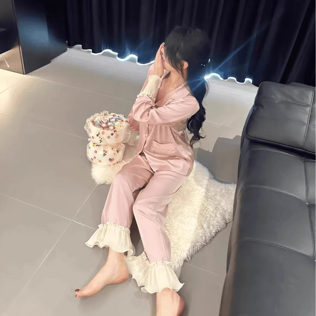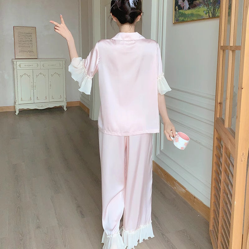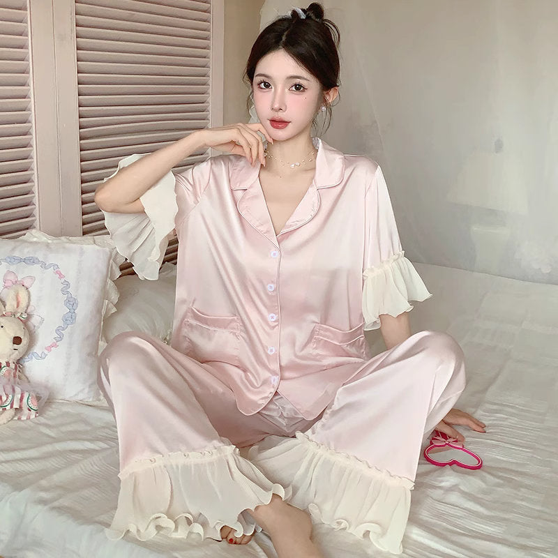 肌にとろけるように心地よい、サテン調のパジャマセット♡
