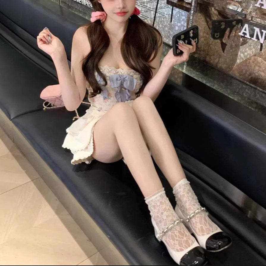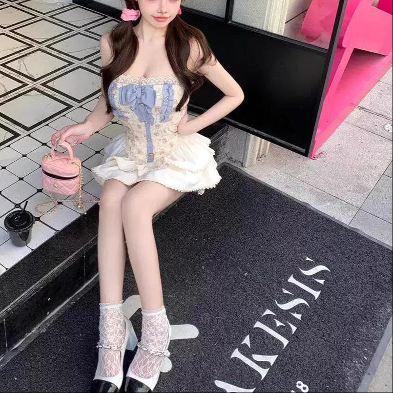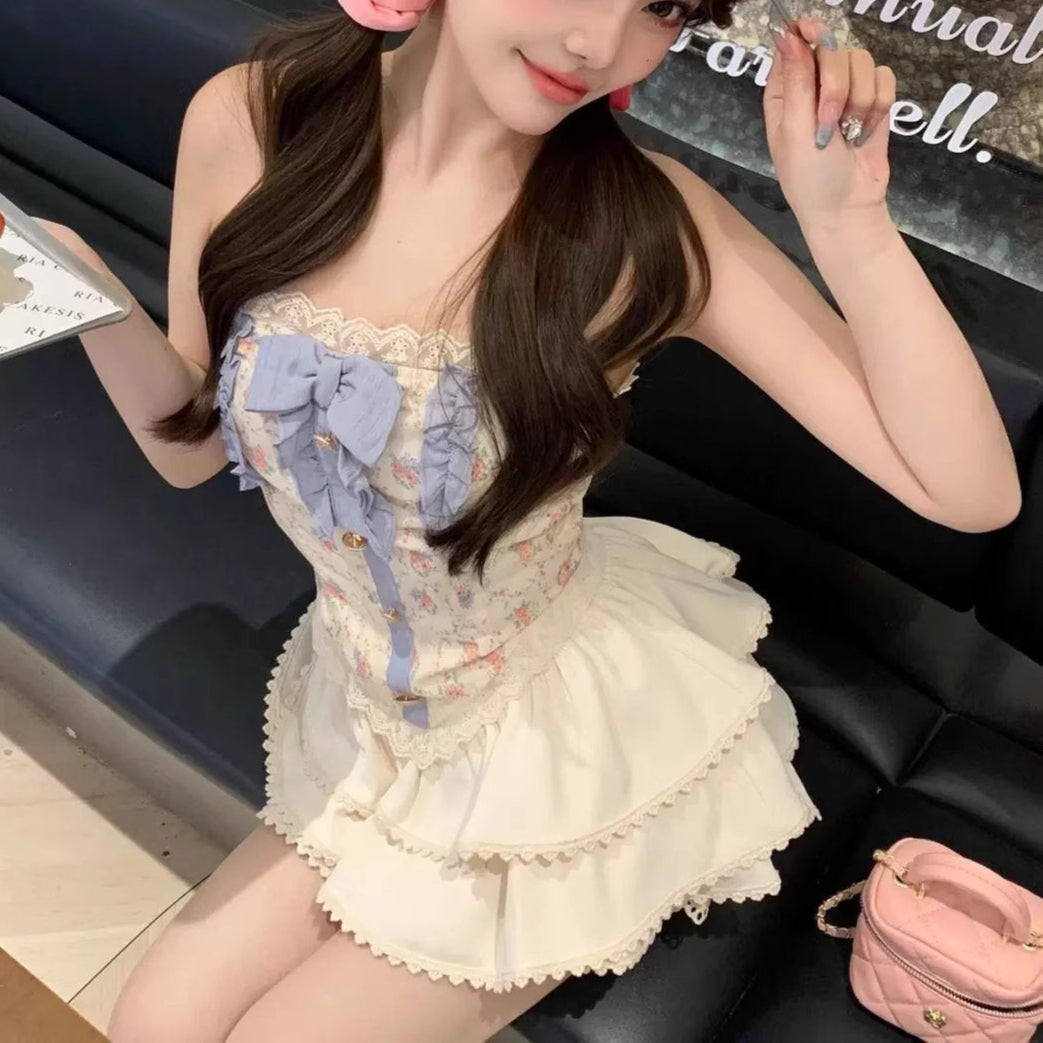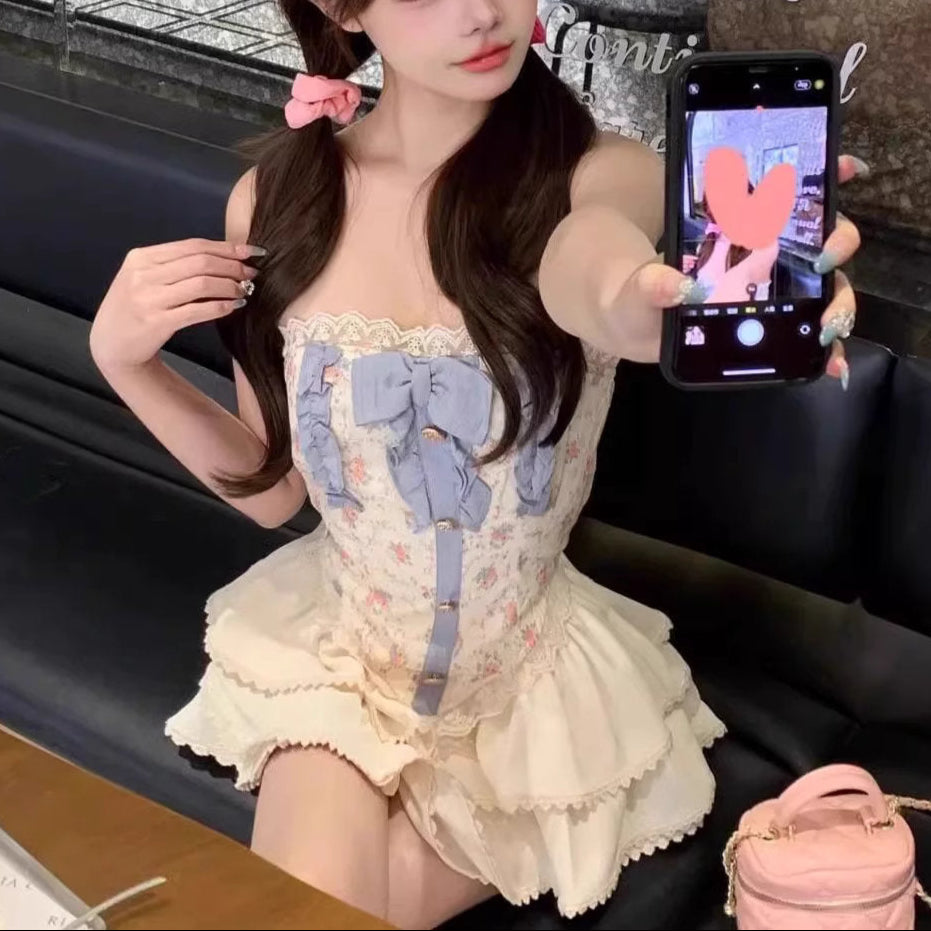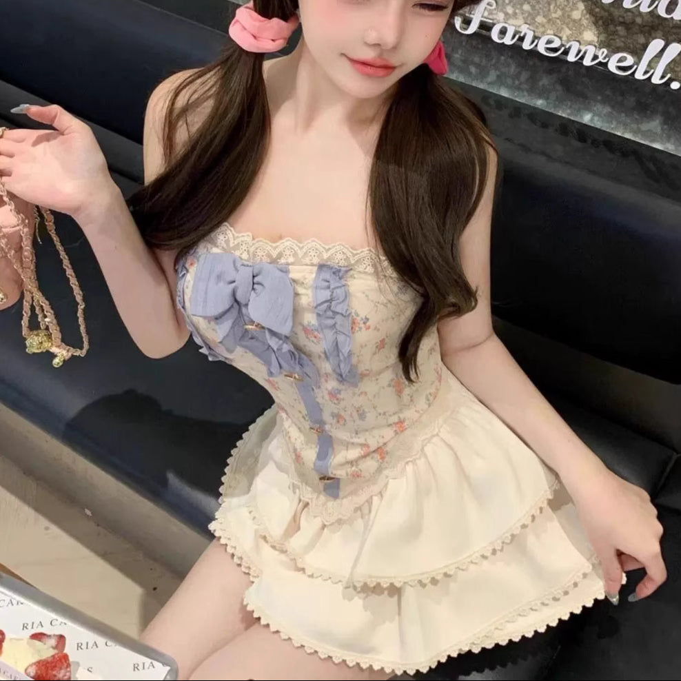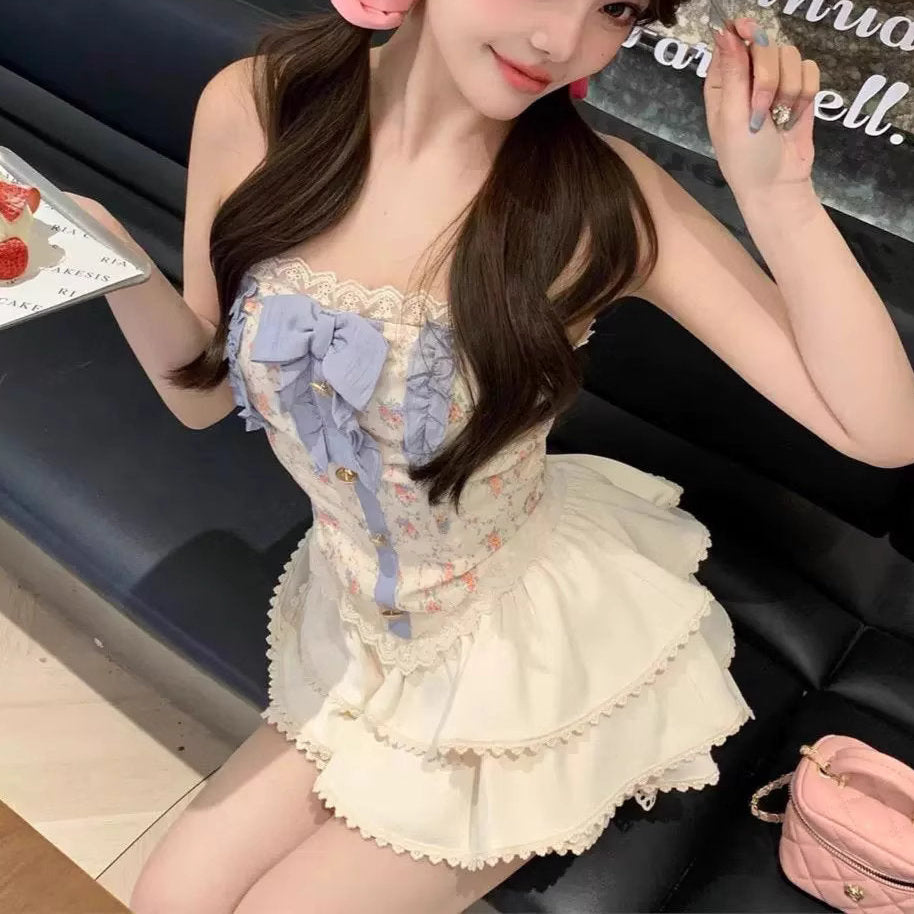 淡い小花柄とたっぷりのフリルが可愛さを引き立てるビスチェ風♡