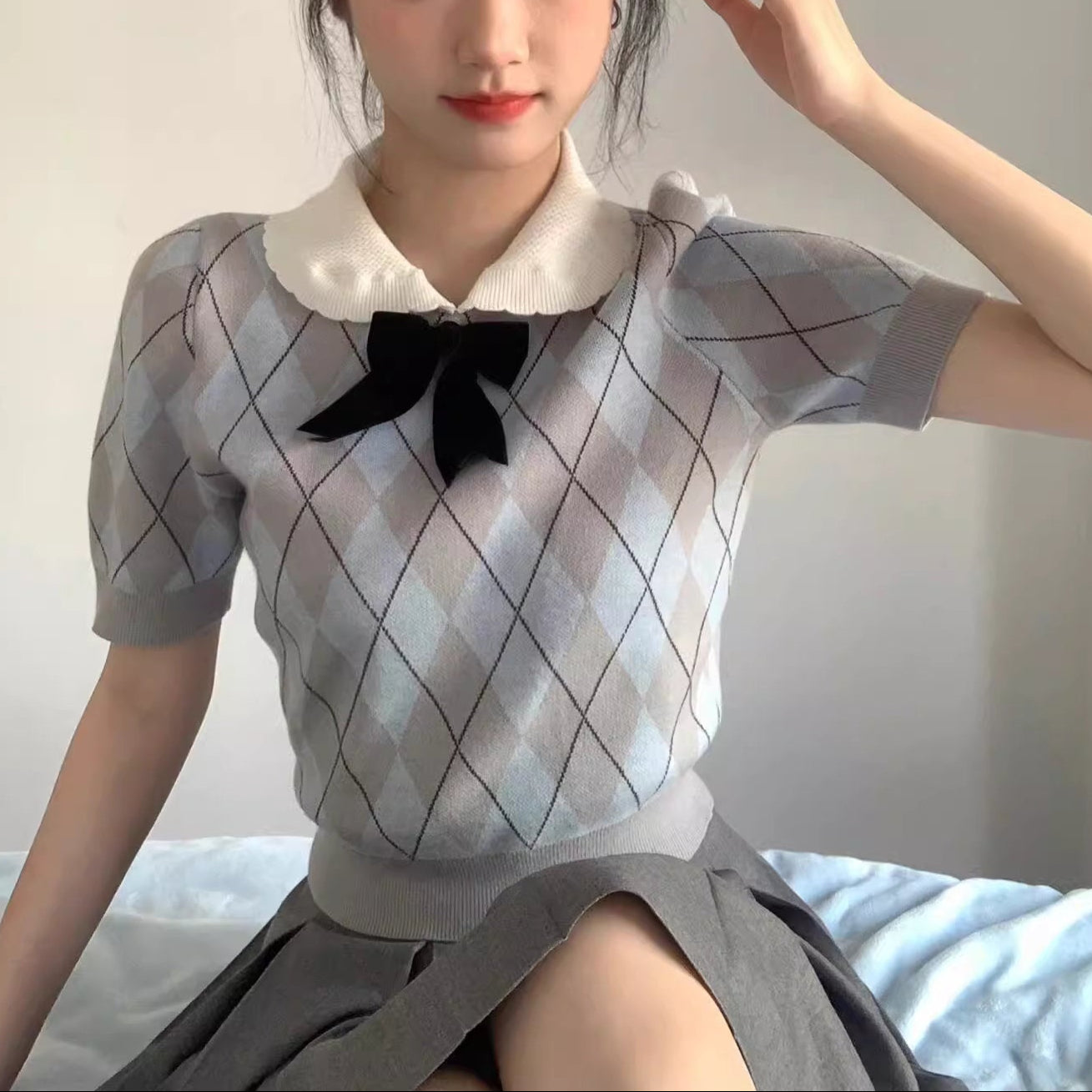 放課後にティータイムへいくアーガイルリボントップス_R0107