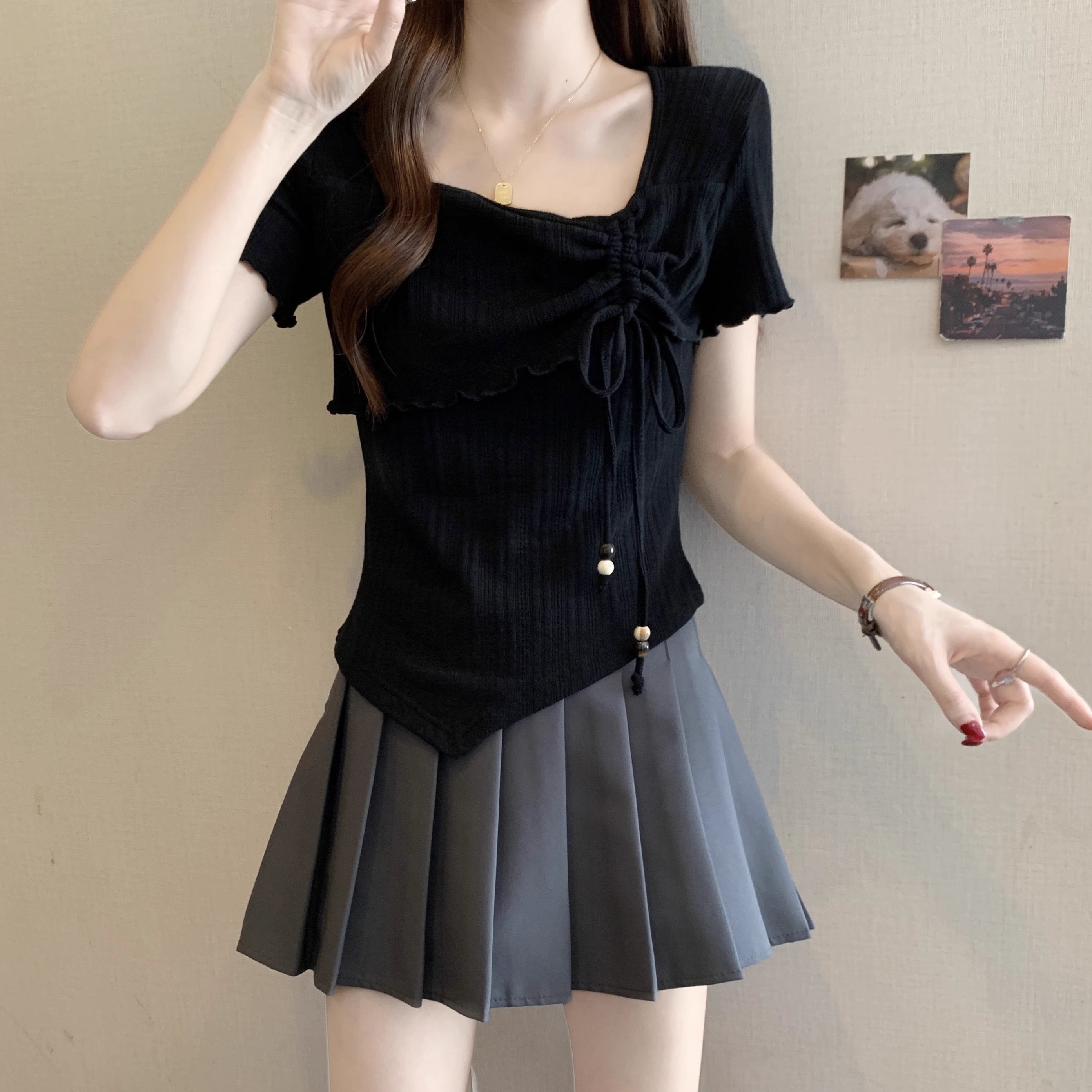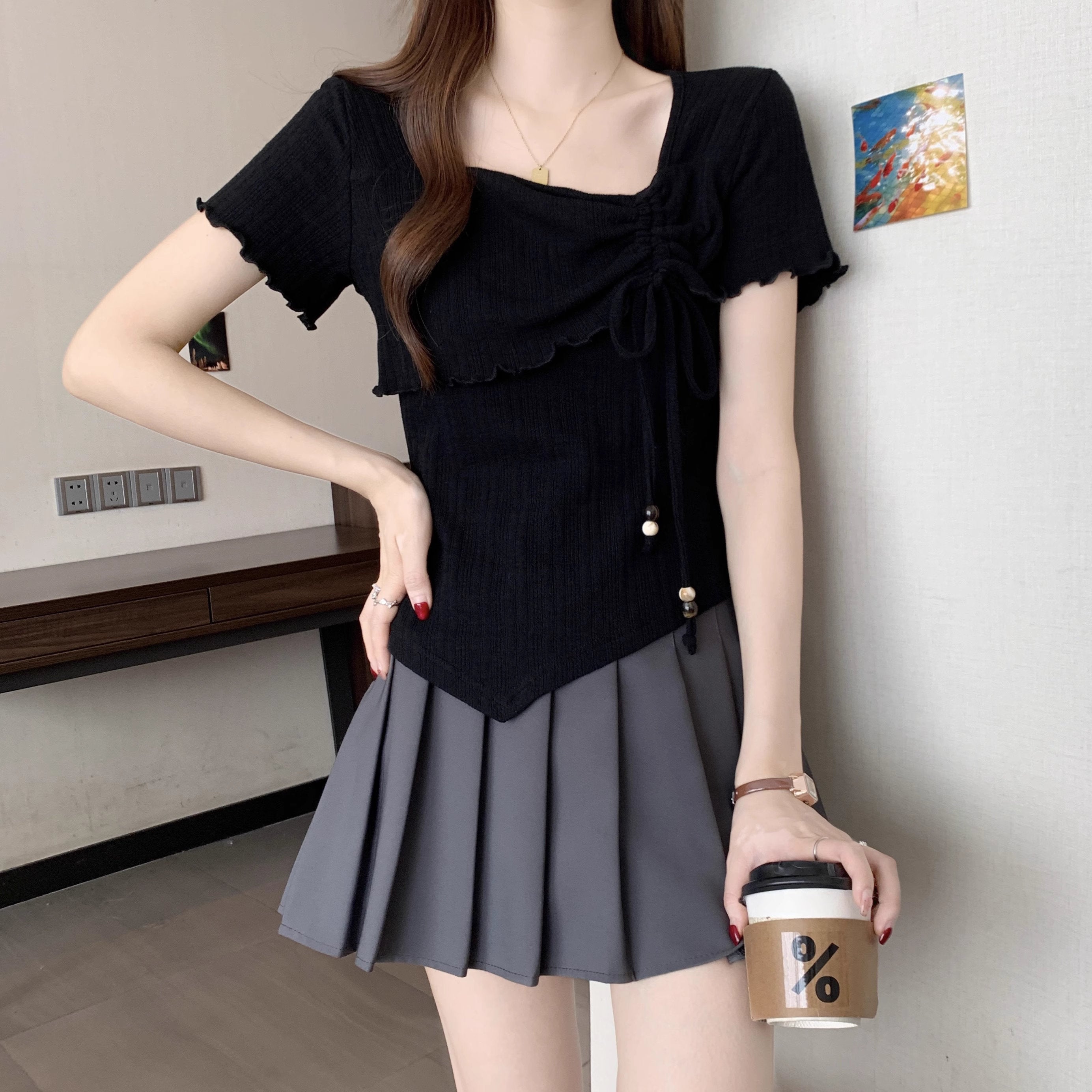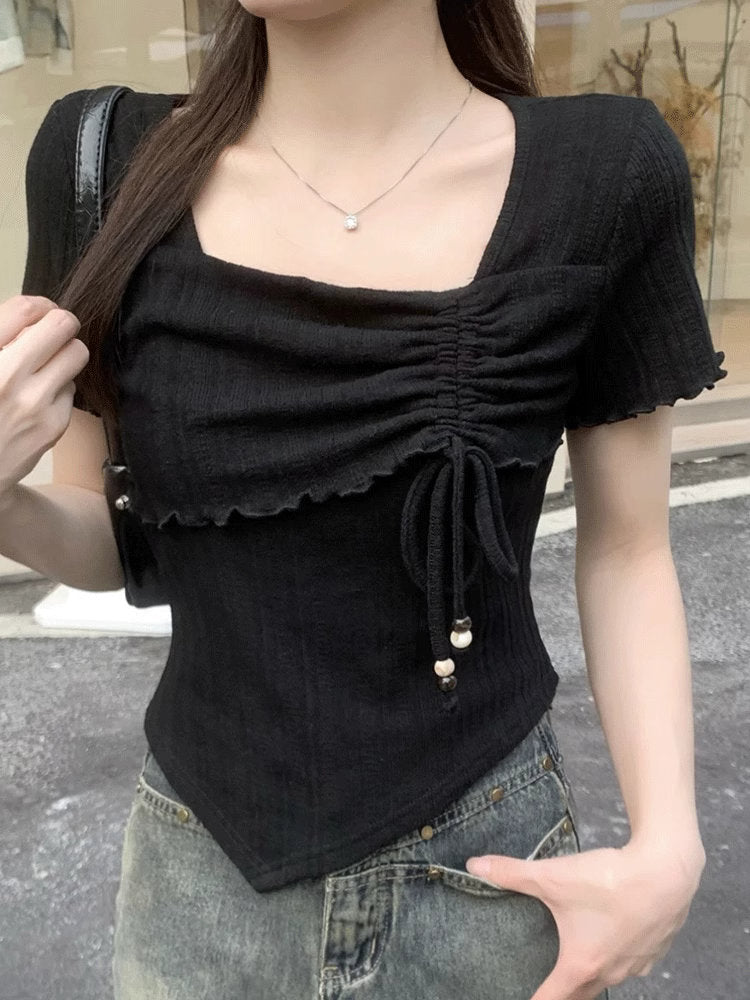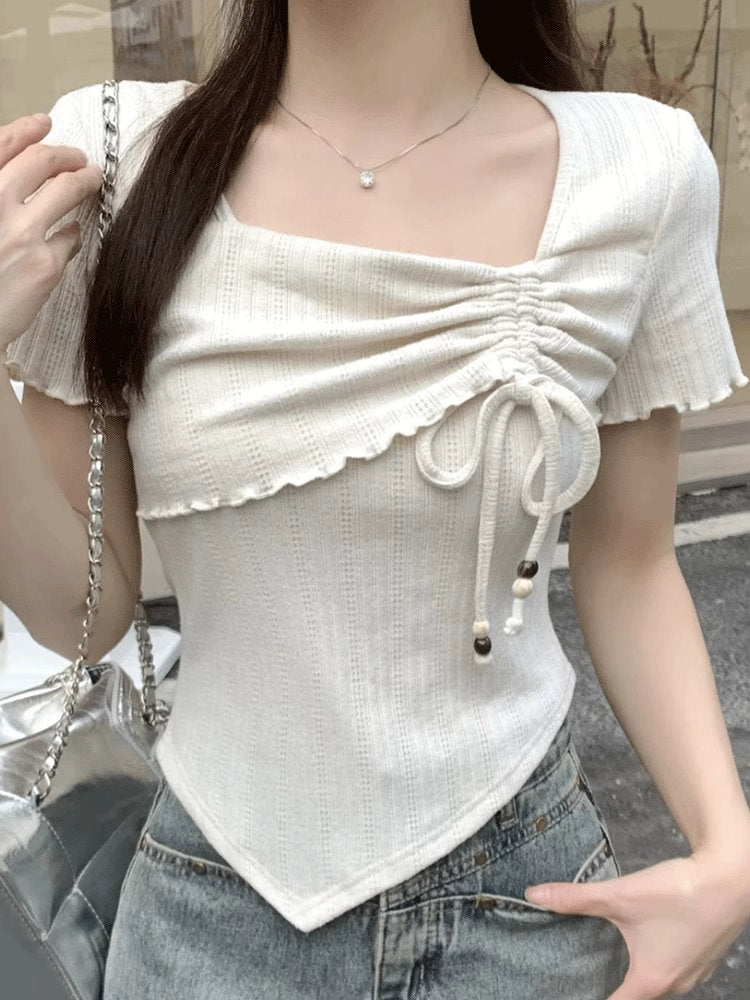 胸元に寄せたギャザーが女性らしさを引き立てるトップス♡