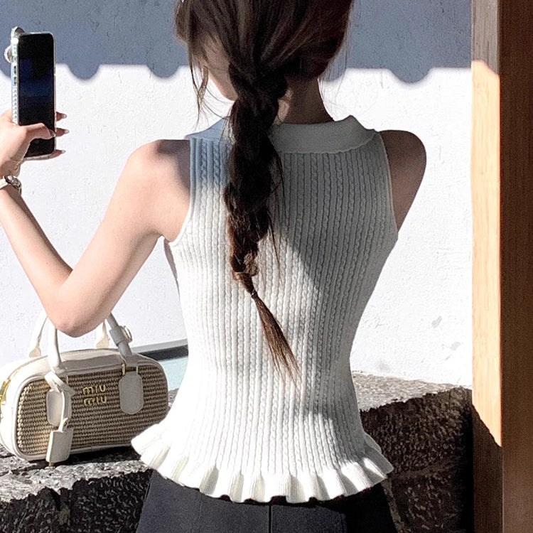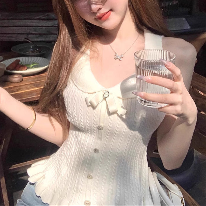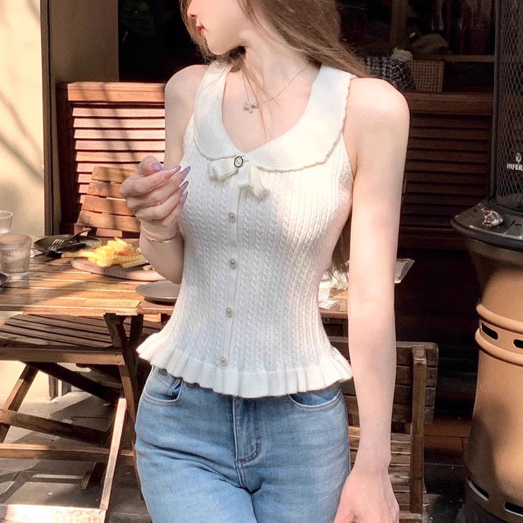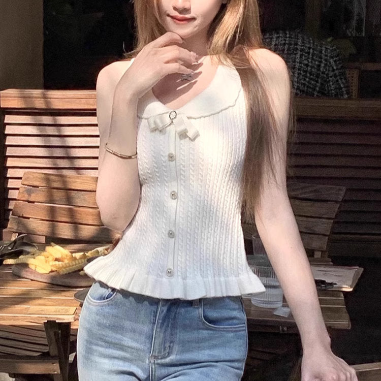 一枚で主役級の可愛らしさを演出する、フリル襟とリボンが魅力のニットトップス♡