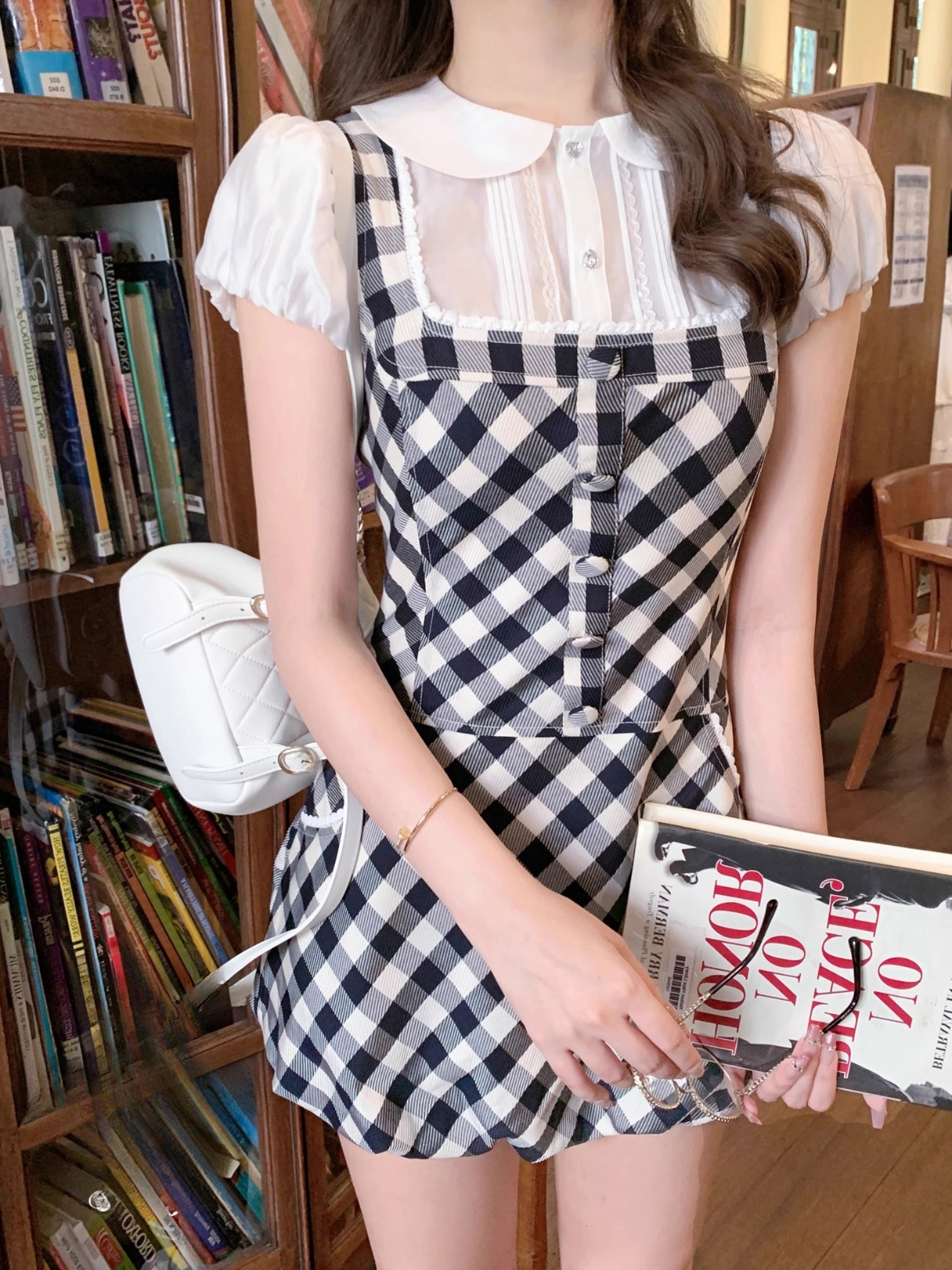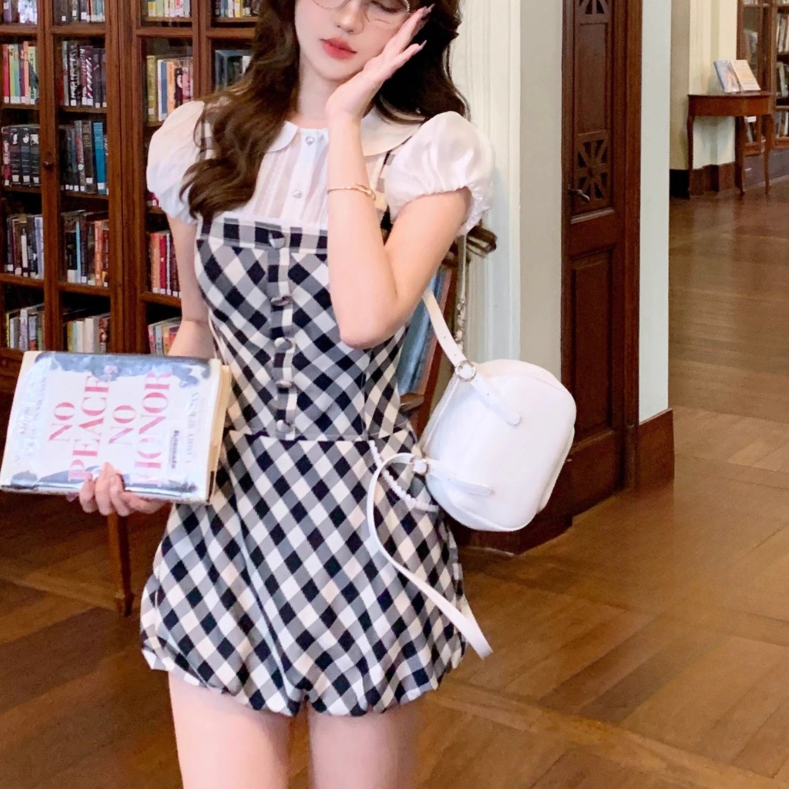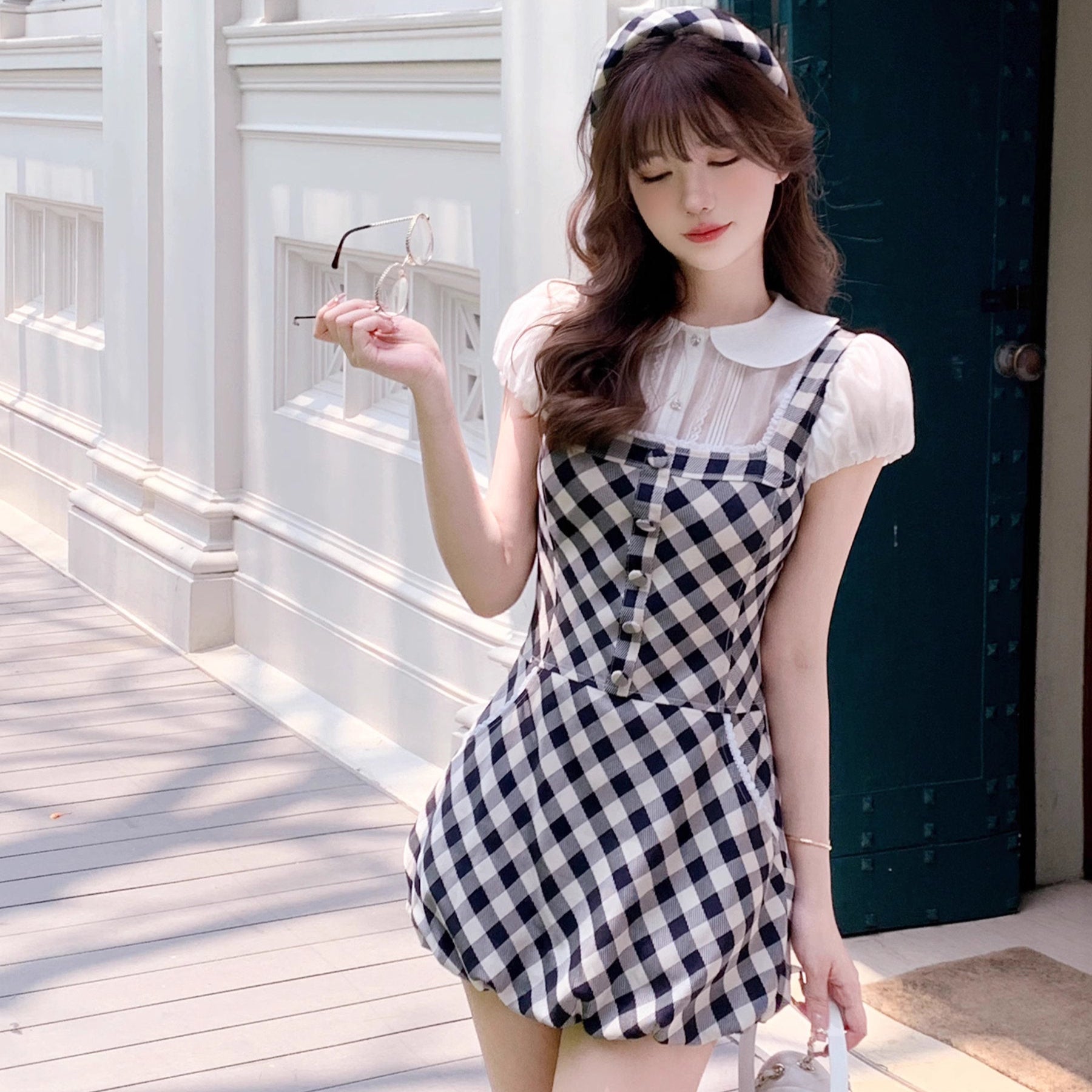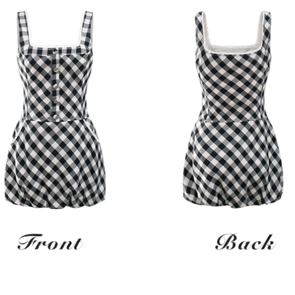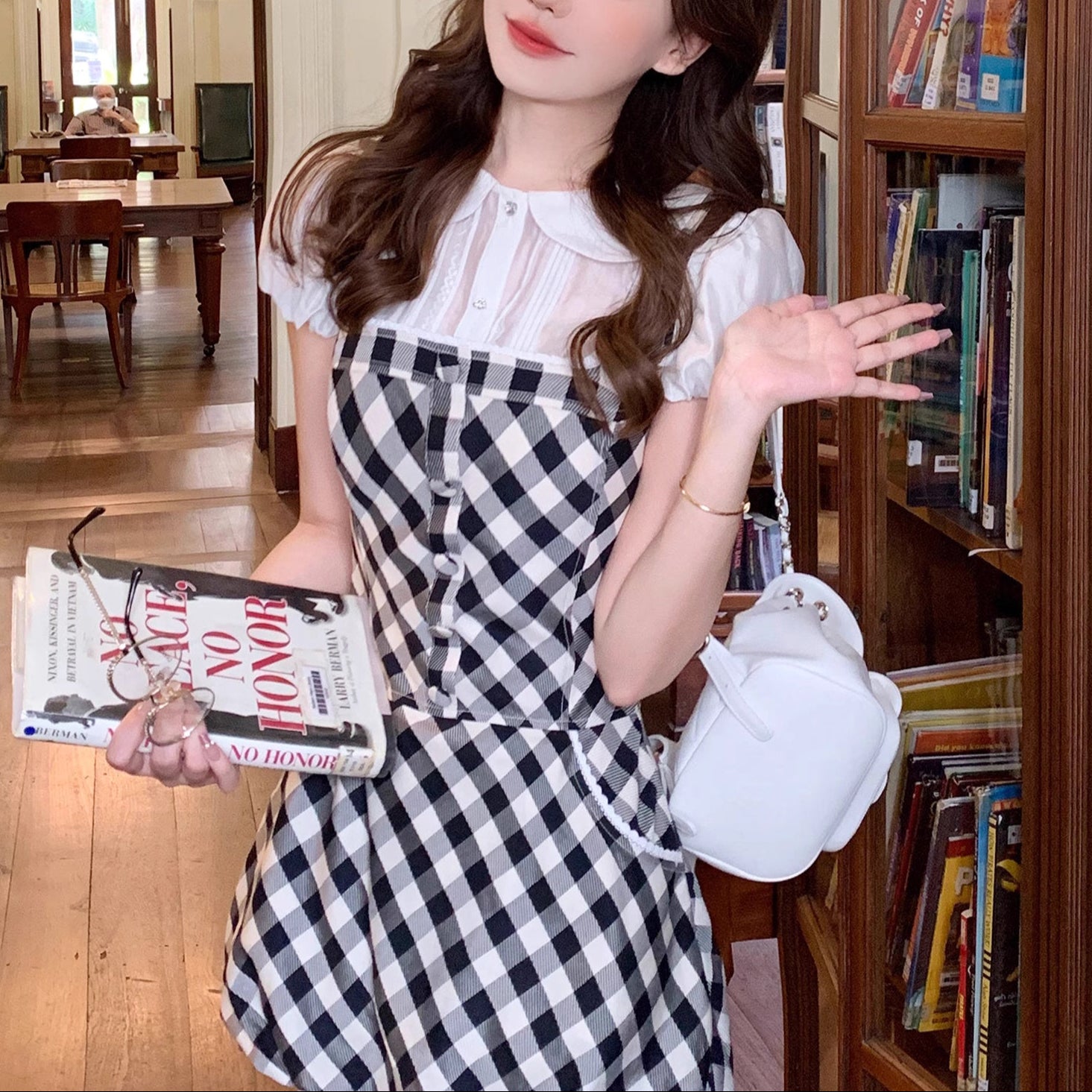 ドーリー襟付きギンガムチェックワンピース_R0132